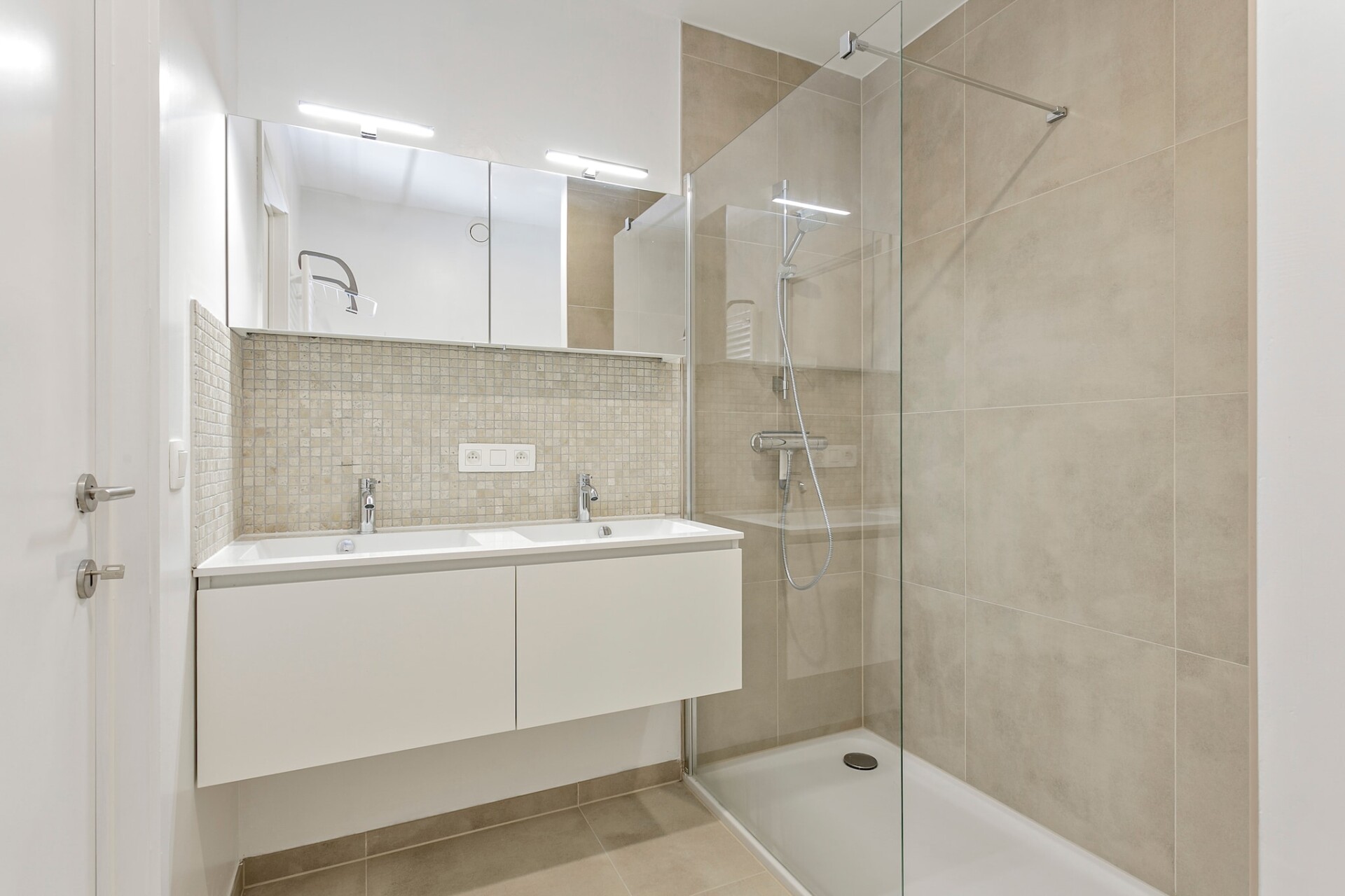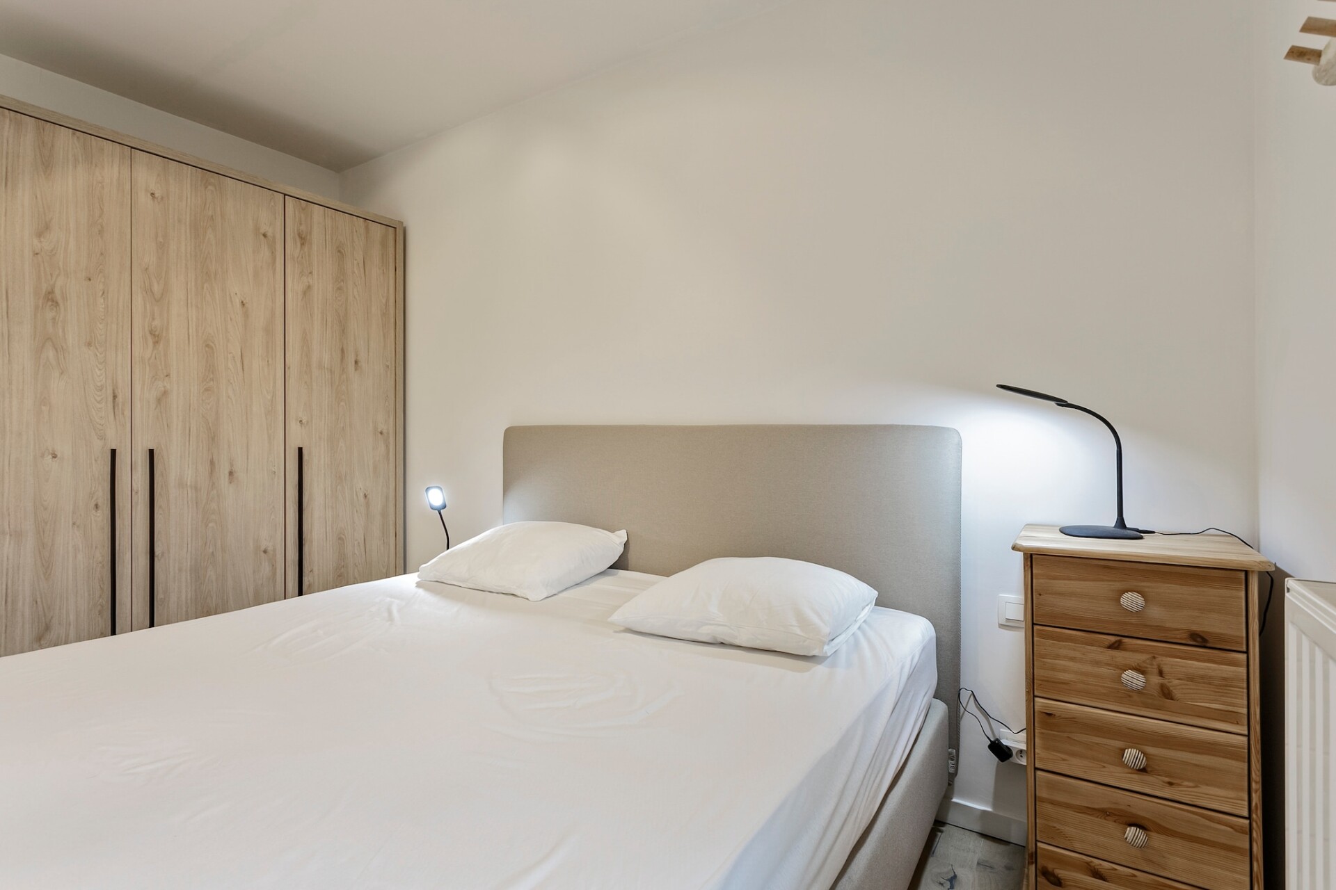 Binnen vindt u twee grote slaapkamers, die voldoende ruimte bieden om te ontspannen. De badkamer is uitgerust met een inloopdouche en een dubbele wastafel voor extra gemak. Een apart toilet is ook beschikbaar voor extra privacy. Het appartement beschikt over een garagebox in het gebouw, waardoor parkeren tijdens uw verblijf probleemloos is.