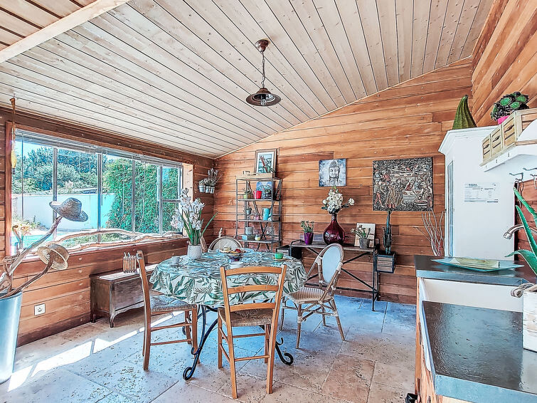 Villa 6-kamers 250 m2. Ruim, comfortabel en modern ingericht: woon-/eetkamer met TV (Flatscreen TV). Uitgang naar de tuin, naar het terras, naar het zwembad. 1 kamer met Kleedkamer met 1 2-pers bed (1 x 160 cm, lengte 200 cm). Uitgang naar het terras. 1 kamer met 1 2-pers bed (1 x 140 cm, lengte 190 cm). Uitgang naar het terras. Groot, open keuken (oven, afwasmachine, 4 keramische glas kookplaten, broodrooster, waterkoker, magnetron, elektrische koffiemachine, kookeiland). Bad/douche, aparte WC. Elektrische verwarming. Bovenverdieping: (buitentrap) woon-/slaapkamer met 1 2-pers bed (1 x 120 cm, lengte 190 cm). 1 kamer met afgeschuinde daken met 1 bed (90 cm, lengte 190 cm), 1 2-pers bed (1 x 140 cm, lengte 190 cm), douche/WC. Elektrische verwarming. Groot terras. Terrasmeubelen, barbecue, ligstoelen (6), serre. Ter beschikking: wasmachine, strijkijzer, kinderbed, haardroger. Internet (WiFi, gratis). Garage, hoogte 190 cm. Rookvrij huis. Maximaal 1 huisdier/hond toegestaan. Rookmelders. Aanbod door een particulier volgens art. 155, IV van CGI. FR3PU5QN