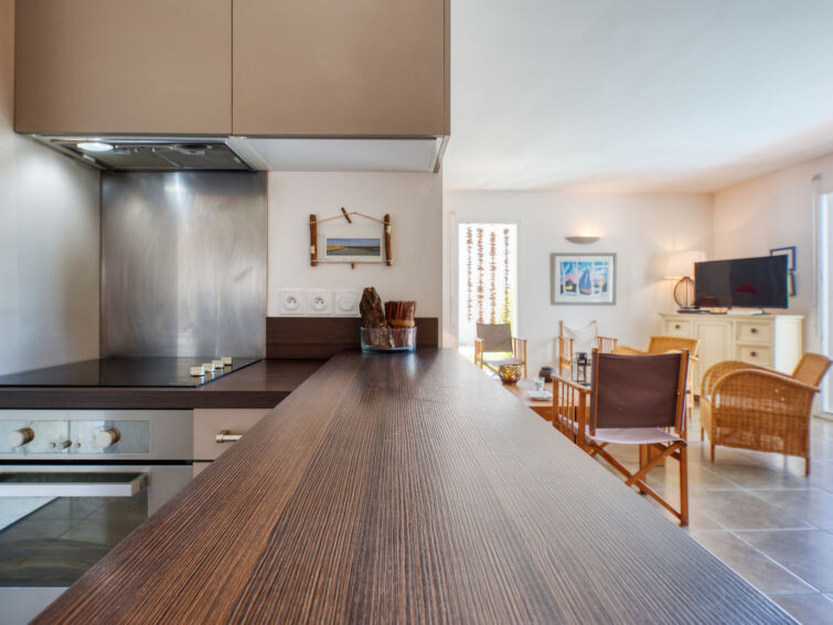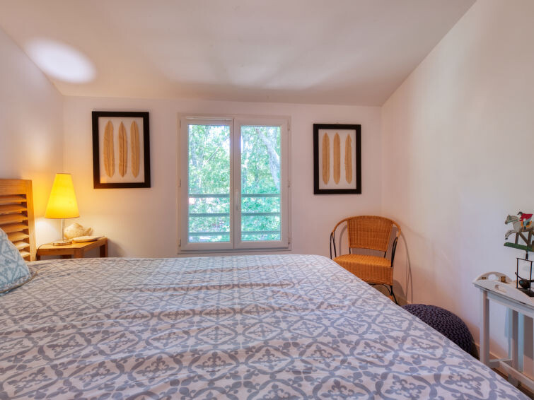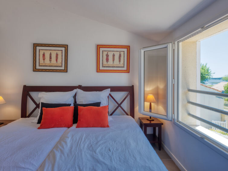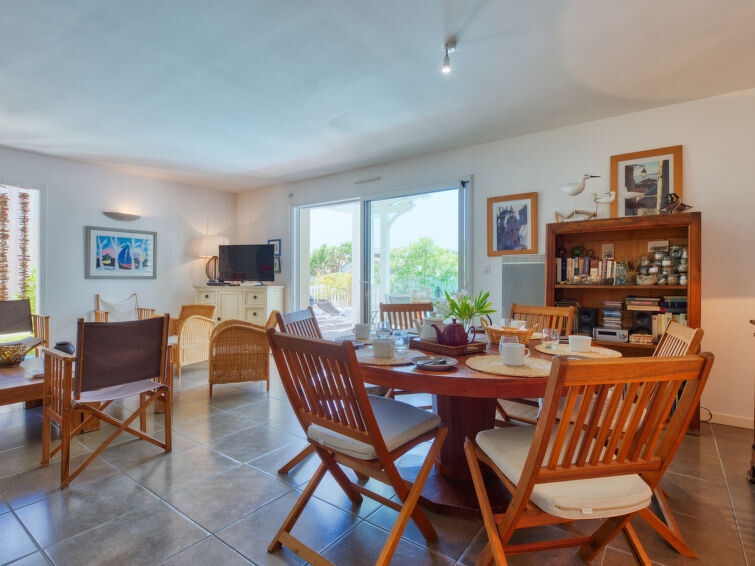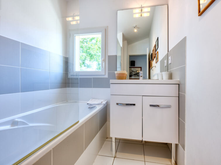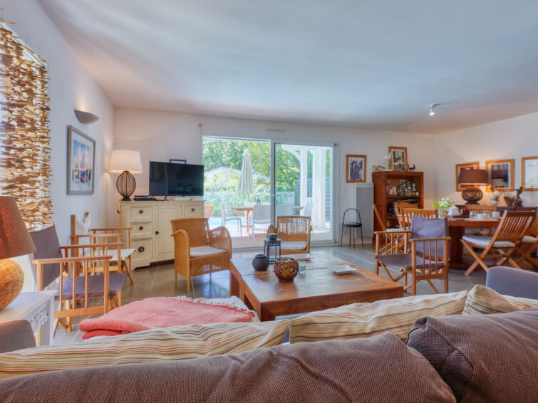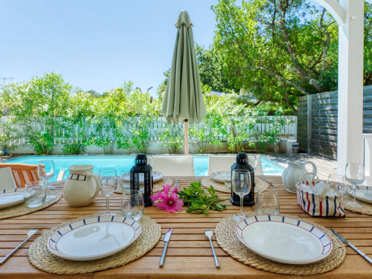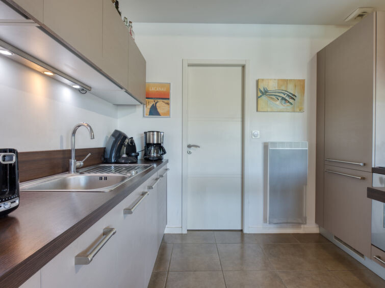 Villa "du Lac", bouwjaar 2014. In het gehucht Les Bainasses, 5 km van het centrum van Lacanau-Ville, 7 km van het centrum van Lacanau-Océan, 52 km van het centrum van Bordeaux, 100 m van het meer, 7 km van het strand, aan een doodlopende weg. Voor alleengebruik: verzorgde tuin 300 m2 (omheind) met planten, openluchtzwembad (7 x 3 m, seizoensgebonden beschikbaarheid: 26.Apr. - 27.Sep.) met alarminstallatie. Buitendouche, terras, parkeerplaats (voor 2 auto's) bij het huis op het terrein. Winkel 5 km, bushalte "Le huga" 4 km, zandstrand "Lacanau-Océan" 7 km, meer (zwemmen) "Etang de Lacanau" 400 m. Golfterrein (18 holes) 4 km.