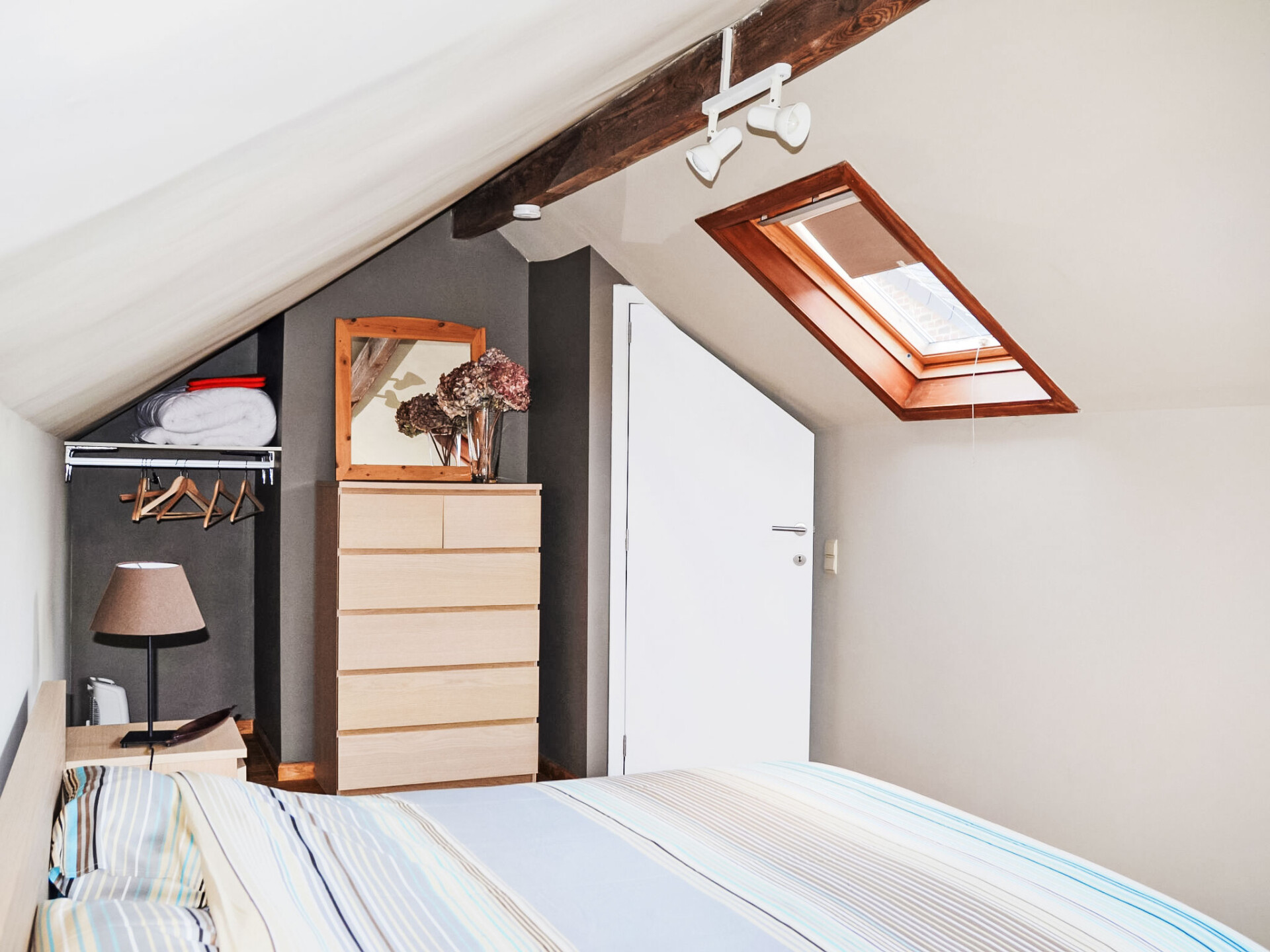 "Le Ti' Bauduin", maisonette 2-kamers 40 m2. Afgeschuinde daken, doelmatig ingericht: woon-/eetkamer met open haard, eethoek, Digitale TV, internationale TV-zenders, Flatscreen TV en stereo-installatie. Keuken (4 keramische glas kookplaten, broodrooster, waterkoker, elektrische koffiemachine, combimagnetron). Douche, aparte WC. Houtverwarming. Bovenverdieping: 1 open groot kamer met afgeschuinde daken met 1 2-pers bed (1 x 160 cm, lengte 200 cm). Uitgang naar het terras. Terras. Terrasmeubelen, barbecue. Ter beschikking: haardroger. Internet (Internet (WiFi), extra). Rookmelders.