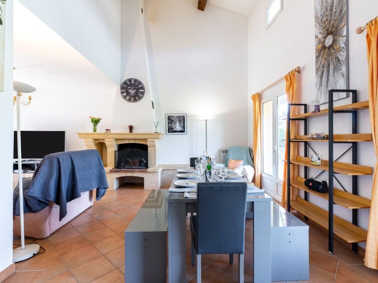 Villa 5-kamers 110 m2 op 2 verdiepingen. Ruim, mooi ingericht: woon-/eetkamer met open haard (alleen decoratie), TV (Flatscreen TV), air-conditioning. Uitgang naar de tuin, naar het terras, naar het zwembad. 1 kamer met 1 2-pers bed (1 x 160 cm, lengte 200 cm), bad/WC. Uitgang naar het terras, naar het zwembad. 1 kamer met 1 2-pers bed (1 x 160 cm, lengte 200 cm). 1 kamer met 2 bedden (80 cm, lengte 200 cm). Keuken (4-pits kookplaat, mini-oven, afwasmachine, broodrooster, waterkoker, magnetron, diepvriezer, elektrische koffiemachine). Douche, aparte WC. Gas-verwarming, air-conditioning. Bovenverdieping: 1 kamer met 1 2-pers bed (1 x 140 cm, lengte 190 cm). Uitzicht op het landschap. Ter beschikking: wasmachine, strijkijzer. Internet (WiFi, gratis). Rookvrij huis. Maximaal 1 klein huisdier/hond toegestaan. Rookmelders. 83115004020AK