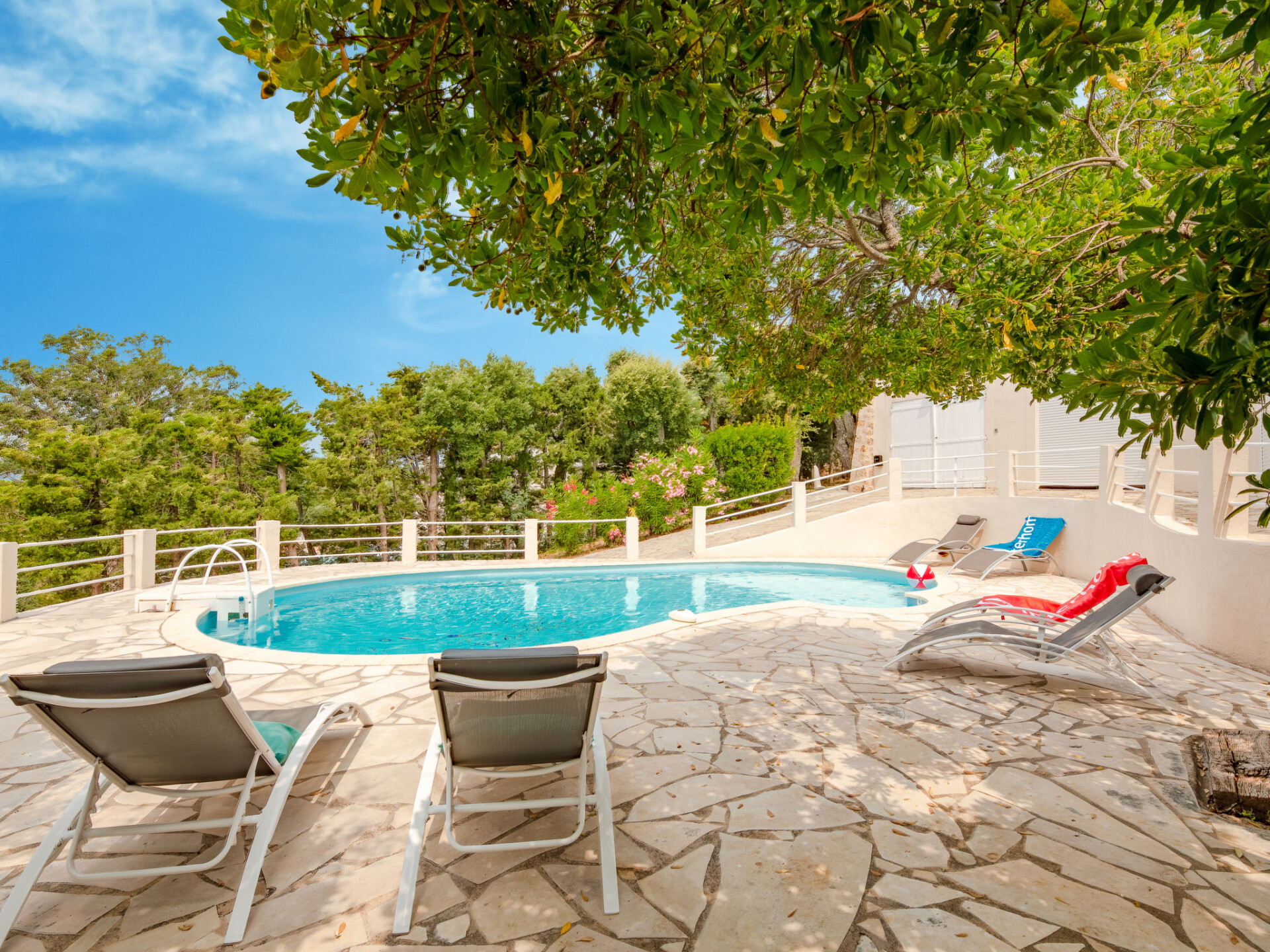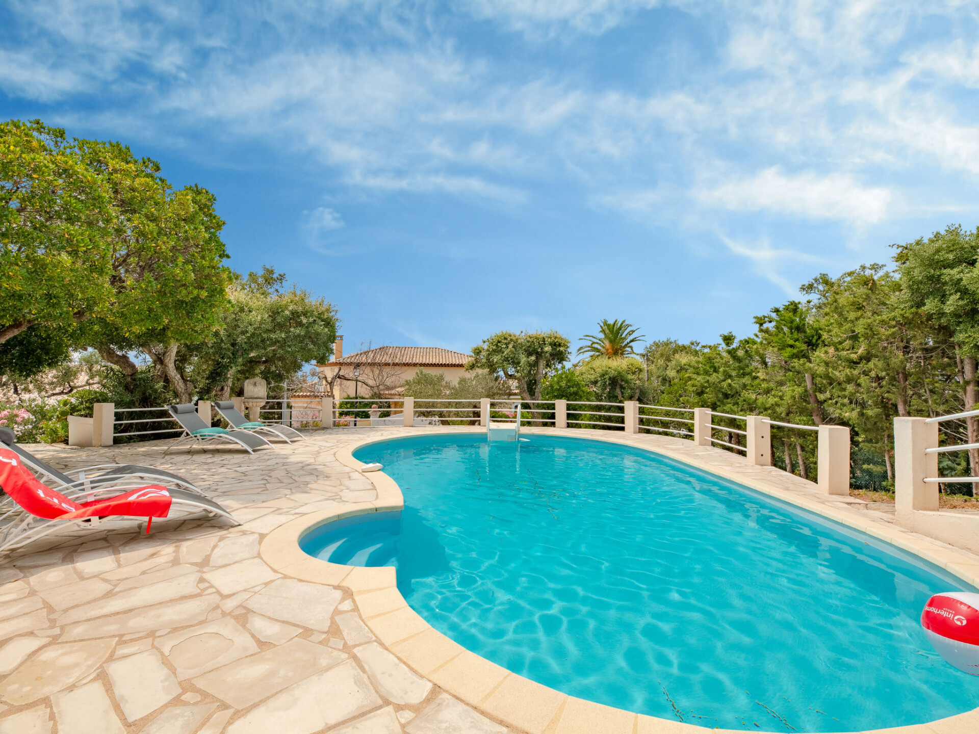 Villa "Les Gaulois", van 2 verdiepingen. In de wijk Issambres, rustige ligging in een woonwijk, 2.2 km van zee, 2.2 km van het strand. Voor alleengebruik: terrein 1.050 m2 (omheind), wilde tuin (omheind), openluchtzwembad niervormig (10 x 3 m, 110 - 180 cm diepte, seizoensgebonden beschikbaarheid: 01.Apr. - 31.Okt.) met trap. Jeu de boules, parkeerplaats. Levensmiddelenwinkel 2.5 km, winkelcentrum 15 km, restaurant 2 km, bakkerij 3.7 km, bushalte "Village Provencal" 2.2 km, zandstrand "La Pinède" 2.8 km kiezelstrand "Calanque de Tardieu" 2.4 km, park "Areca" 8 km, duikschool 3 km, thermaalbad "Thalasso des Issambres" 3 km. Jachthaven 3.8 km, golfterrein (18 holes) 17 km, zeilschool 4 km, tennis 3 km, manege 7 km, sportcentrum 7 km, wandelroutes 2 km vanaf het huis. Attracties in de buurt: Aqualand, Lunapark 15 km, Frejus 16 km, Saint-Raphael 19 km, Ste Maxime 10 km, Saint-Tropez 25 km, Cannes 50 km. Bekende skigebieden kunnen gemakkelijk worden bereikt: Auron, Isola 2000 155 km. Bekende meren kunnen gemakkelijk worden bereikt: Lac de St Cassien 50 km, Lac du Du Verdon 95 km. Wandelgebied Petites Maures 2 km, Estérel 25 km, Sentier du Litoral 1 km. Auto noodzakelijk. Groepen jongeren uitsluitend op aanvraag. Een deel van het huis is afgesloten en niet bezet. De sleuteloverdracht vindt plaats bij het agentschap Interhome in Saint-Aygulf, 7 km.