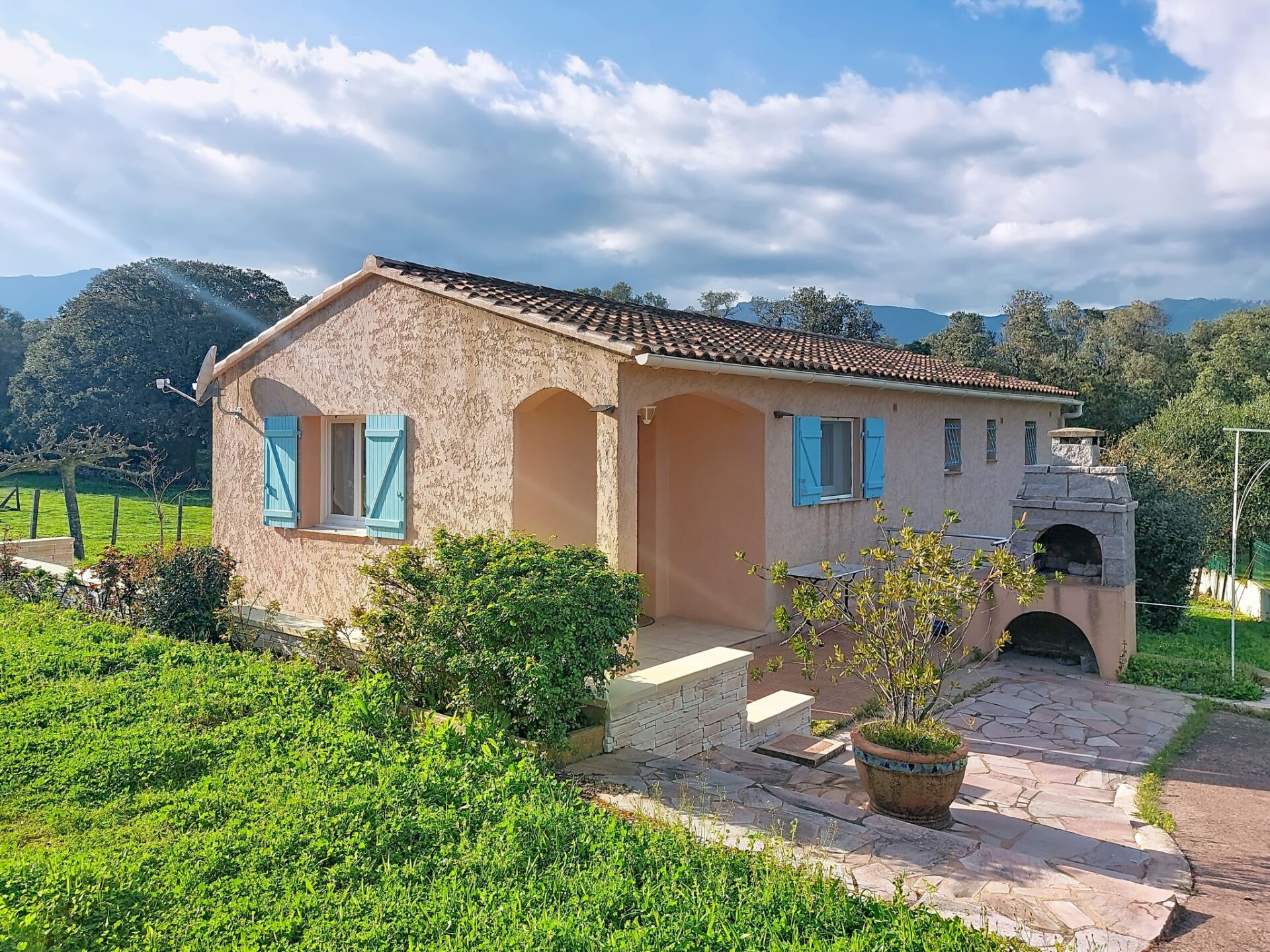 Villa "Les Rosiers", omgeven door weiden. In het gehucht Bala, aan de rand van de plaats, 3 km van het centrum van Muratello, buiten de plaats, 7 km van het centrum van Porto-Vecchio, rustige ligging, 5 km van zee, 6 km van het strand, aan een doodlopende weg. Voor alleengebruik: terrein 1.000 m2 (omheind), groot tuin (omheind) met gazon. In het huis: met TV. Parkeerplaats op het terrein. Winkelcentrum 6 km, restaurant 3 km, bakkerij 3 km, bushalte 6 km. Jachthaven 6 km. Attracties in de buurt: Centre ville Porto-Vecchio 6 km, Plage de Palombaggia 15 km, Plage de Santa Giulia 12 km, Bonifacio 30 km. Bekende meren kunnen gemakkelijk worden bereikt: lac de l'Ospedale 16 km. Wandelgebied Cascade Piscia di ghjaddu 28 km. Auto noodzakelijk.