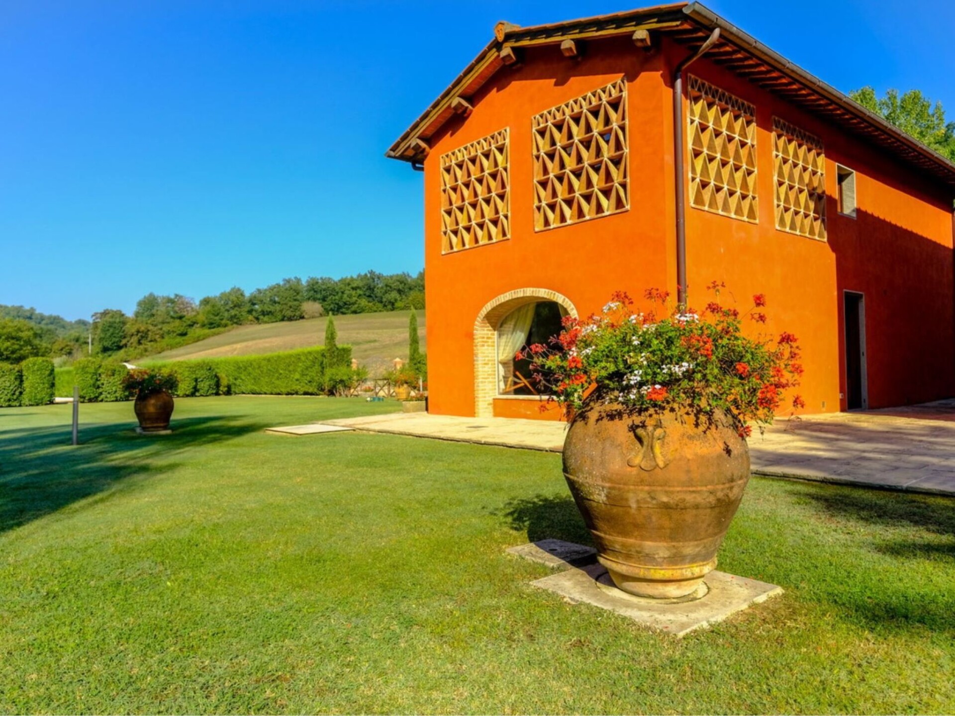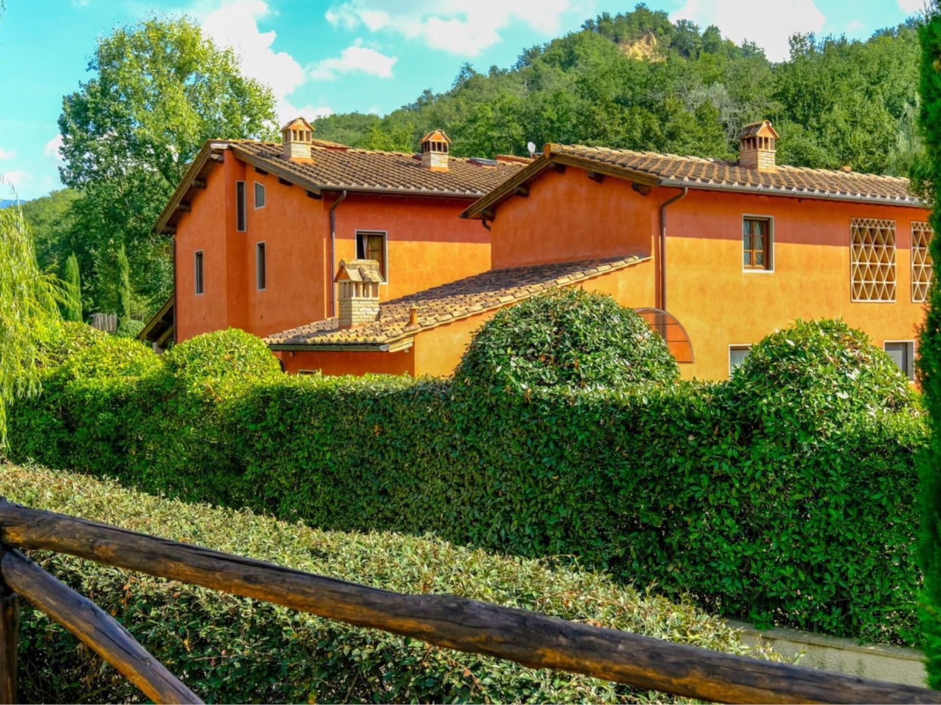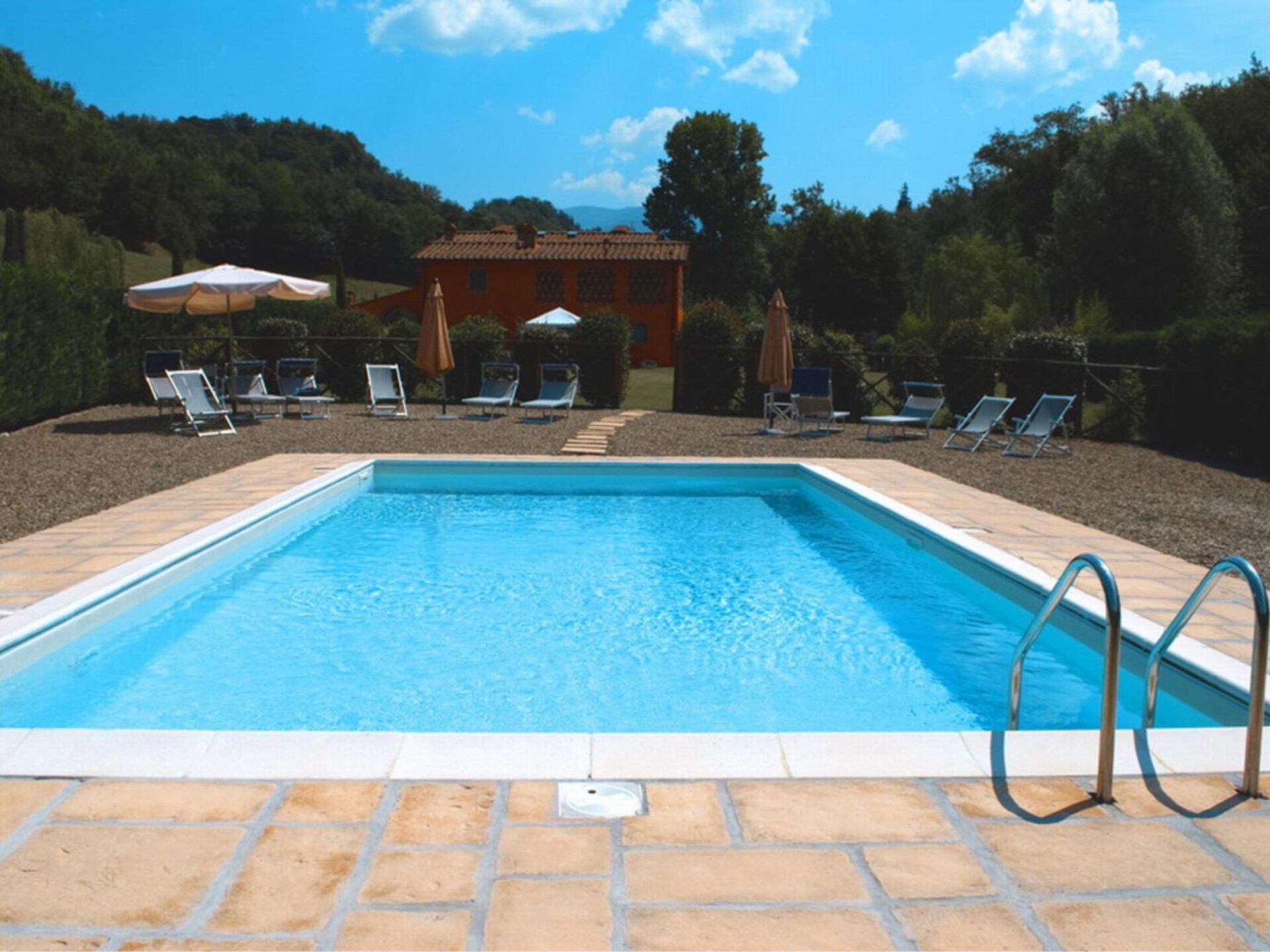 Villa Elena is situated in the heart of Tuscany at southeast of Florence (reachable in a half a hour driving and 25 minutes by train) among the most beautiful areas like Chianti Classico, Val d’Ambra, Casentino National Park, Chianti Rufina and Valdarno. Siena and Arezzo too are within easy reach either by the scenic country route or the Autostrada del Sole. The villa has been extremely well renovated and provides the most fabulous, spacious site for a perfect holiday. It is an expansive house providing high standard of accommodation. Tasteful furnishing blend beautifully with the Tuscan arches and typical ceiling with exposed beams. Outside a wonderful garden with a 10 X 5 swimming pool and a patio for “dining al fresco” during the summer. Villa Elena is ideal for an extended family or group of friends who want to enjoy each other’s company in perfect privacy. Pool available from April 18th to October 31st.For stays of more than one week there is an additional cost for changing linen and weekly cleaning Electric gates- Private swimming pool (10 x 5) with external shower - Outside eating area with patio and barbecueGround floorLiving/Dining room with Fireplace, TV SAT and WifiFully equipped Kitchen with 4 Stoves, fridge, oven, dishwasher, espresso machine and kettleToiletFirst floor4 Double bedded rooms with ensuite shower rooms1 Double bedded room, loft with double bed and ensuite shower roomAnnexGround floorWellness area with sauna, reaction pool and showerLaundry room with washing machine and ironing facilitiesLiving/dining room with fireplace, TV SAT and WifiSmall kitchen with 3 Stoves, oven, fridge and kettleFirst floor 1 Double bedded room with en-suite shower room1 Twin bedded room with en-suite shower roomLeccio (Shops and Restaurants) 3 KmReggello 7,5 KmFirenze 25 KmThe Mall (Luxury brands Outlet) 4 KmPrada Luxury Outlet in Montevarchi 15 KmGreve in Chianti (Chianti Classico) 22 KmLoro Ciuffenna (Valdarno and Casentino) 18 KmBucine (Val d’Ambra) 25 KmPontassieve (Chianti Rufina) 22 KmArezzo 45 KmSiena 55 KmSan Gimignano 75 Km. IT048035B4GDKFKOIU