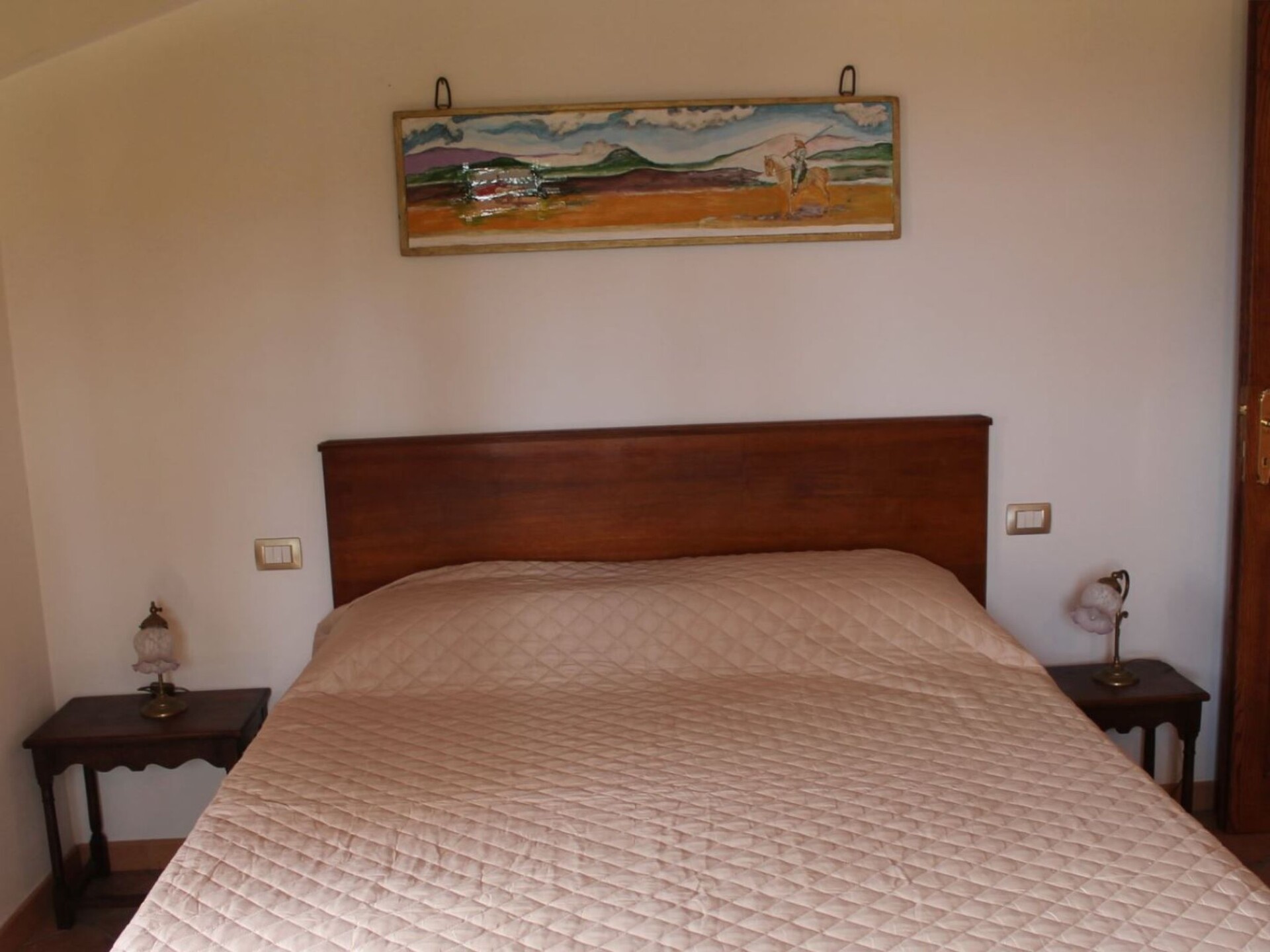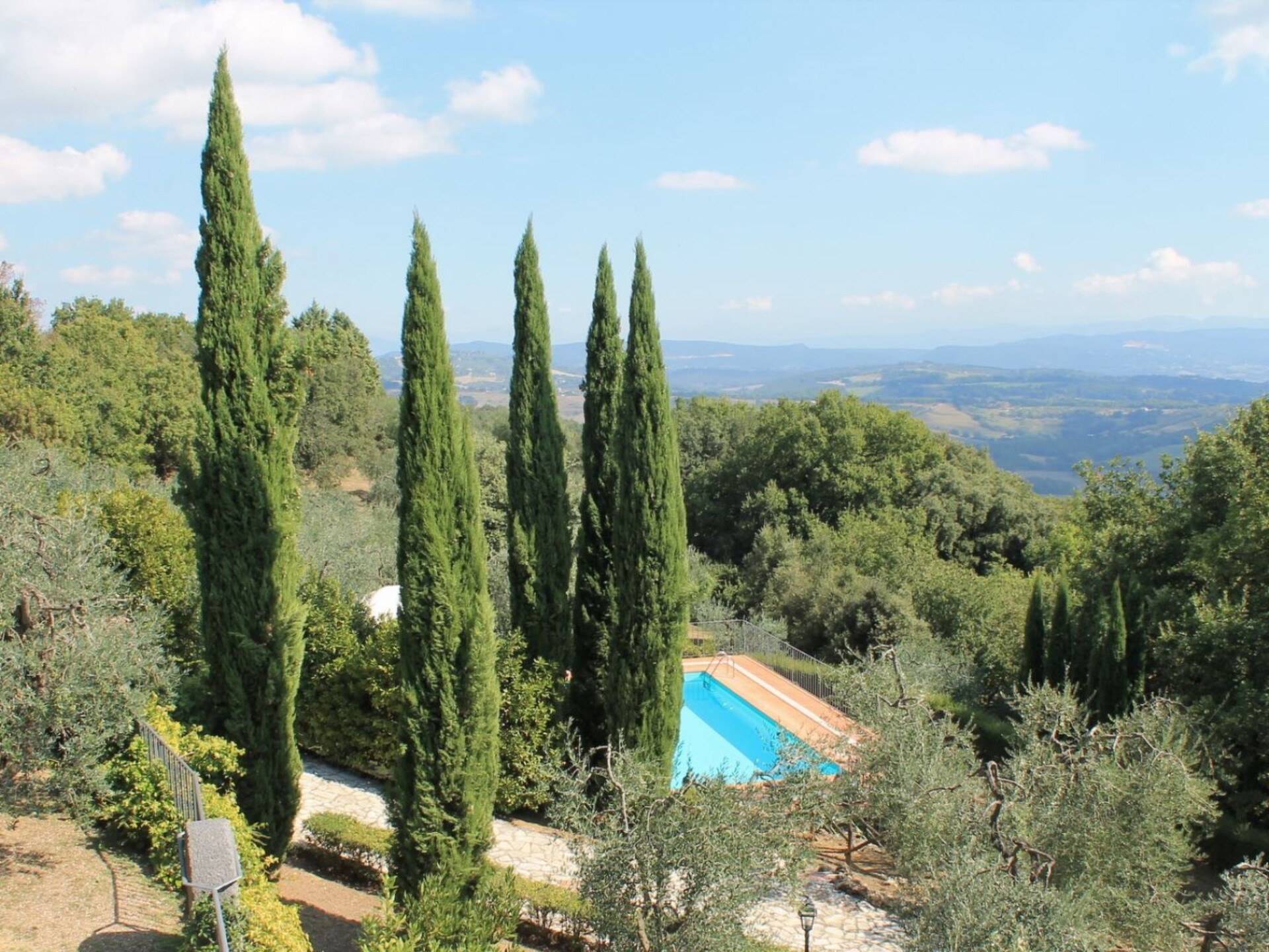 Villa Le Querce is a private villa on two floors, nestled into a hillside of olive groves, cypresses and oaks with glorious view onto the romantic hills of Umbria. Indeed, privacy and peace, set amongst spectacular landscape, are the plus point of this property. The villa is located in the south of Umbria close to the border with Lazio. Spoleto, Viterbo, Todi, Orvieto, Bolsena Lake, Montefiascone, Civita di Bagnoregio and Narni are less than one hour driving and Roma is easily reachable in 45 minutes by train from Orte which is only 10 km. The village of Penna in Teverina is only 700 metres and it is a great strength. Infact the guests can easily walk into the centre for shops, bars and restaurants without having to get the car out. The villa has been lovingly restored and retain it authentic charm. The furnishing of the spacious rooms are a harmonious blend of antiques and modern classics. This property is ideal for a large party of friends or two families holidayng together. Either way the sheer quality of this house will delight all guests who holiday here. At guests' disposal an exclusive and panoramic pool of 10 x 5 meters (depth 1,4 m) open from 01/06 to 30/09. Electric gates - Private pool (10 x 5) with gazebo and shower - Outside eating area with verandah, gazebo, wood oven and barbecue - Laundry room with washing machine and ironing facilitiesGround floorLiving/dining room with fireplace, sofa bed, air conditioning, wifi and TVKitchen with dishwasher, 5 stoves, oven, fridge and toaster2 Double bedded rooms (one with a single bed)1 Twin bedded room1 BathroomToiletFirst floorLiving/dining room with fireplace, air conditioning, wifi and TVKitchen with dishwasher, 5 stoves, oven, fridge and kettle1 Double bedded room1 Double bedded room with balcony1 Bunk bedded room1 Bathroom with washing machine1 ToiletPenna in Teverina (Shops and Restaurant) 700 mtOrte (Train Station to Rome) 10 KmViterbo 38 KmNarni 27 KmCivita di Bagnoregio 27 KmTodi 49 KmMontefiascone 48 KmBolsena 63 KmOrvieto 43 KmRoma 86 Km. IT055026C2LIN9FP2F