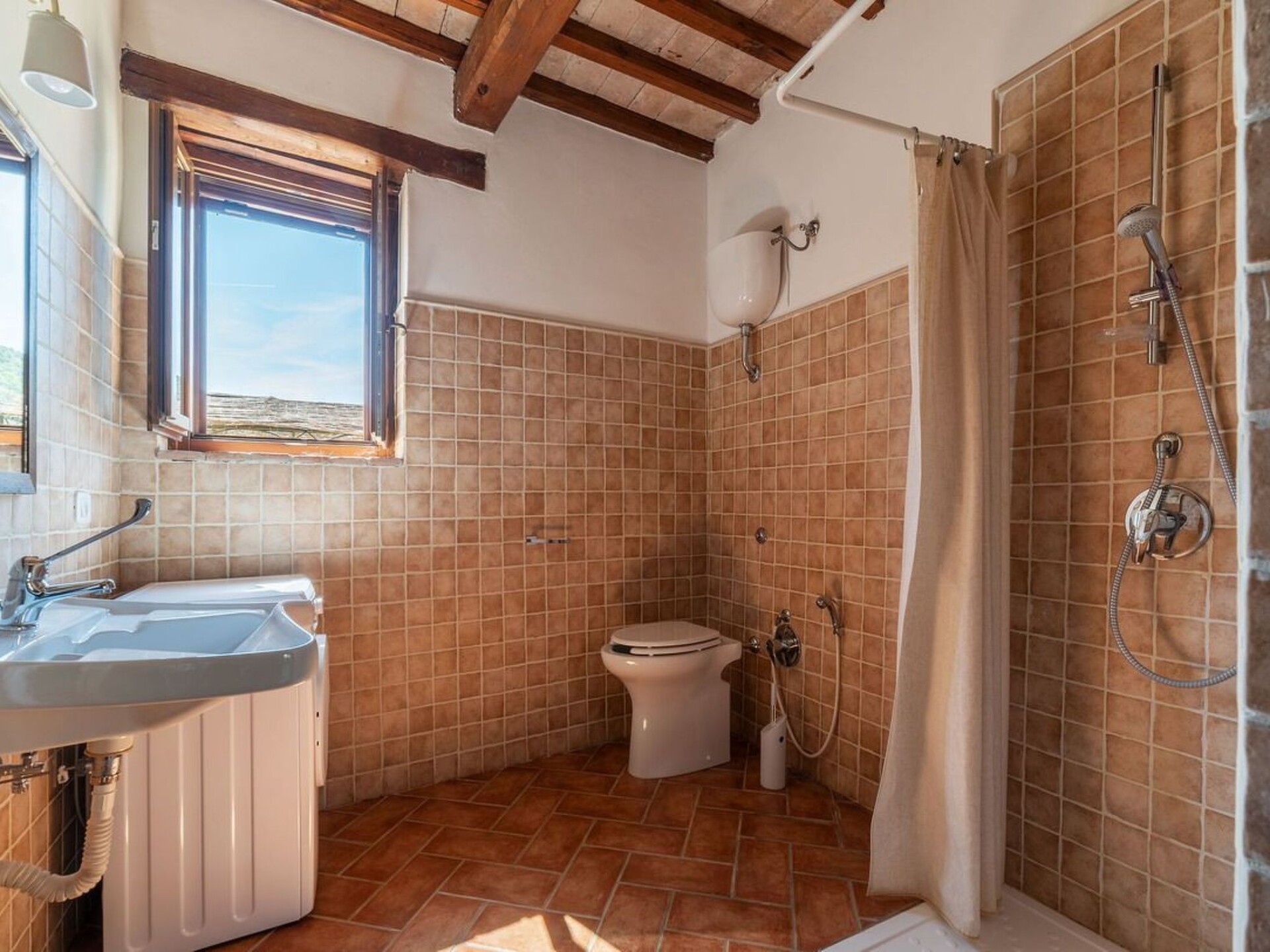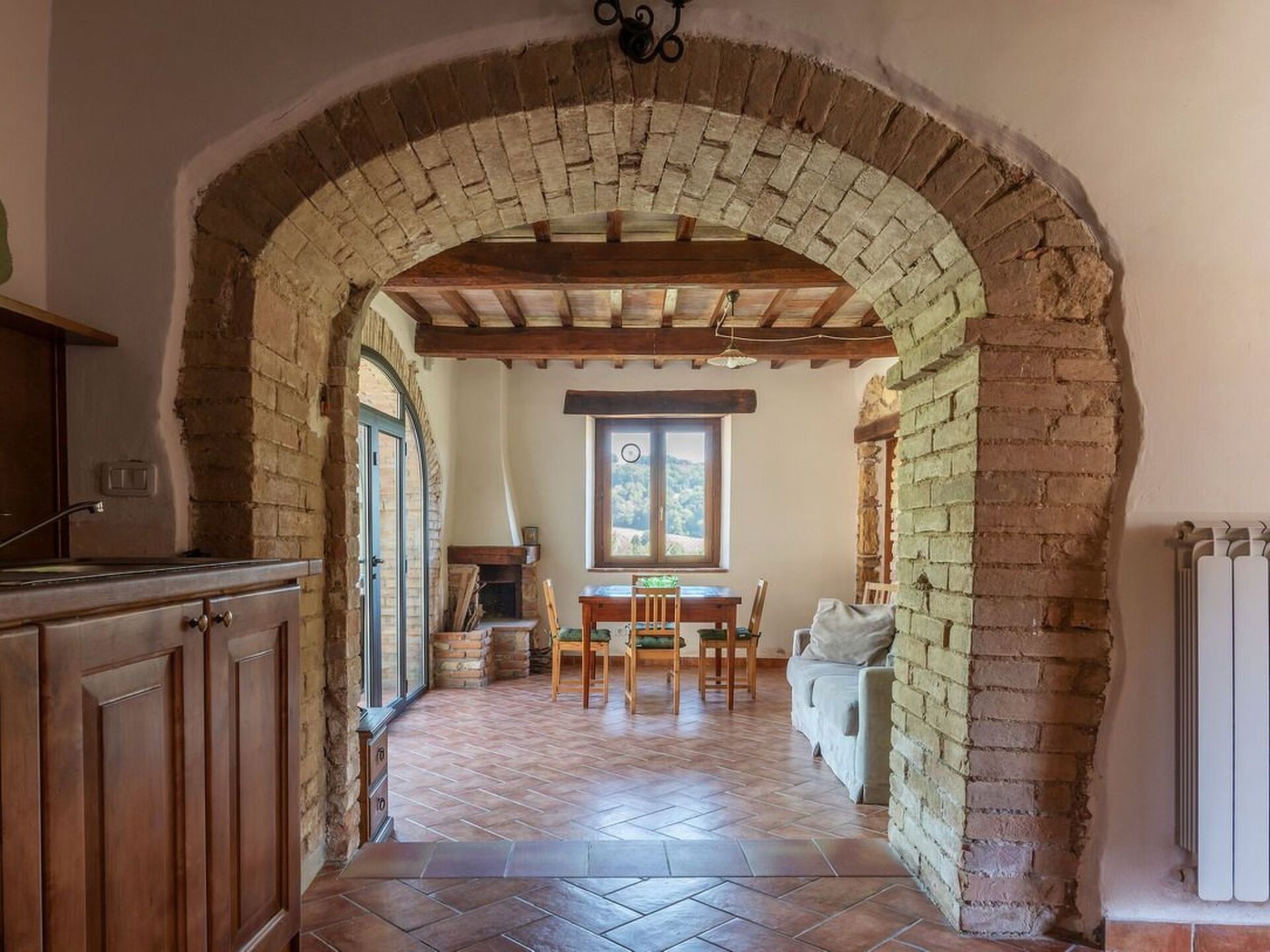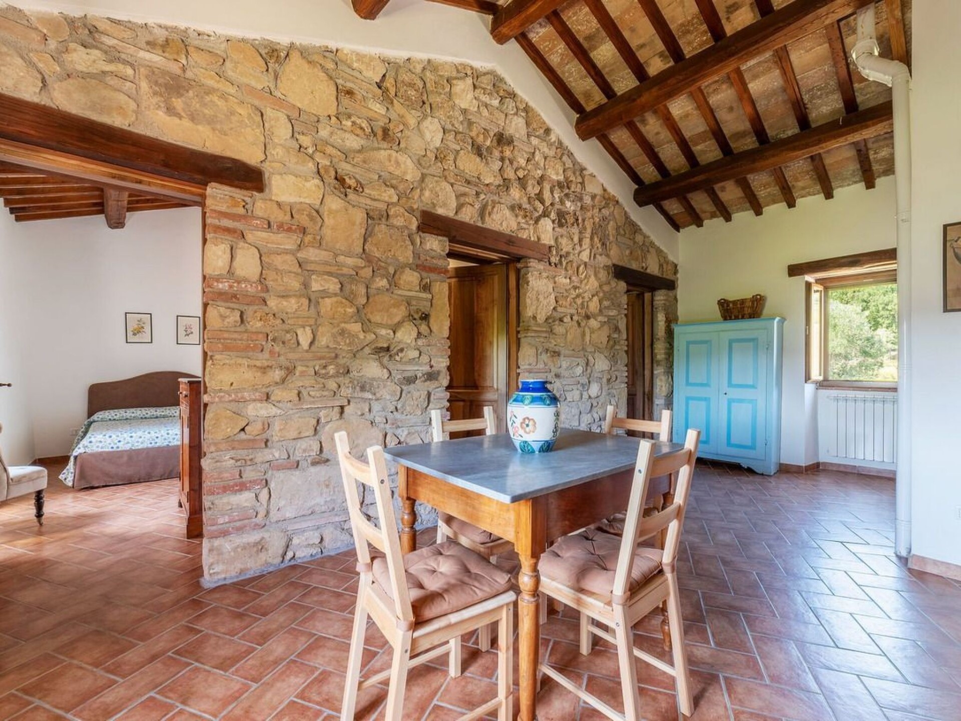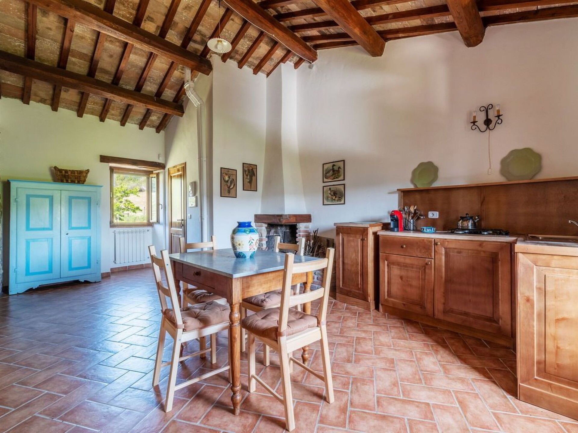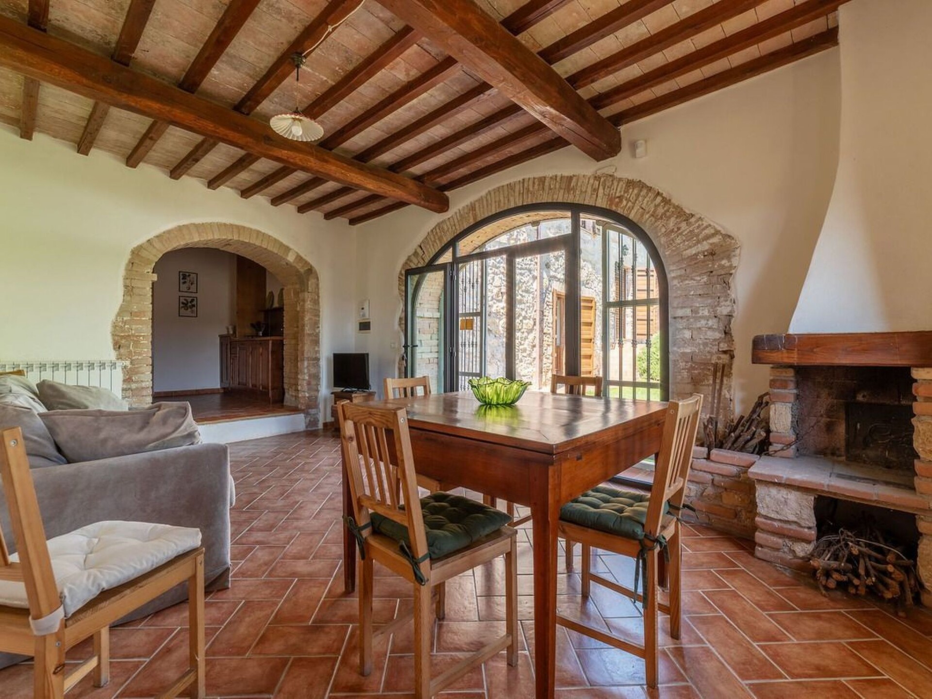 This truly unique, house has been converted to a comfortable villa. Surrounded by olive trees, lavender flowers, rosmary and jasmine it has expensive and stunning views around over countryside to hills backdrop. The swimming pool has been placed so that guest relaxing may enjoy these from their sunbeds. and the pergola in wrought iron is ideal for “dining al fresco.” Villa Ginevra is a charming and comfortable villa and it has been completely refurbished while retaining the original style with typical stone walls, cotta ceiling and wooden beams. The house is composed of 4 apartments (4+4+4+4+ 2 sofa beds) with independent entrances but it is rented as private villa for 4 families and couples or group of friends. Villa Ginevra villa offers guests a chance to escape and relax in a really secluded environment. But if guests can bear to leave their lost valley Viterbo, Todi, Narni,Orvietoare all no more than 50 kilometres away for some inspiring day trips. The center of Roma is easily reachable in 45 minutes by train from Orte which is only 15 km. Around the property there are several naturalistic trails among the forest where it is possible to make trekking, jogging and mountain biking On request the owner organizes cooking class. Pool is open from 17 of May till 20 of September.Private swimming pool (10 x 5) with showerOutside eating area with pergola and barbecueGround floor1 Big dining room/Kitchen with 4 stoves, oven, dishwasher and fridge1 Toilet1 Living/Kitchen with fireplace, sofa bed for two people wifi, 4 stoves, dishwasher, oven, fridge and kettle1 Living/Kitchen with fireplace, wifi, 4 stoves, dishwasher, oven, fridge and kettle4 Double bedded rooms (two for each apartment) 1 Shower room for disable and washing machine2 Shower rooms (one of them with washing machine)First floor1 Living/Kitchens with fireplace, sofa bed for two people wifi, 4 stoves, oven, fridge and kettle1 Living/Kitchens with fireplace, wifi, 4 stoves, oven, fridge and kettle4 Double bedded rooms (two for each apartment)2 Shower rooms with washing machineAmelia (supermarket and restaurants) 3 KmMontenero (restaurant) 2 KmOrte (train to Rom) 15 KmNarni 14 KMTodi 36 KmViterbo 44 KmOrvieto 47 KmTerni (Le Marmore waterfalls) 25 KmSpoleto 53 KmTarquinia (beaches) 84 KmBolsena (Lake) 70 KmRoma 93 KmPerugia (95 Km). IT055004B501014428