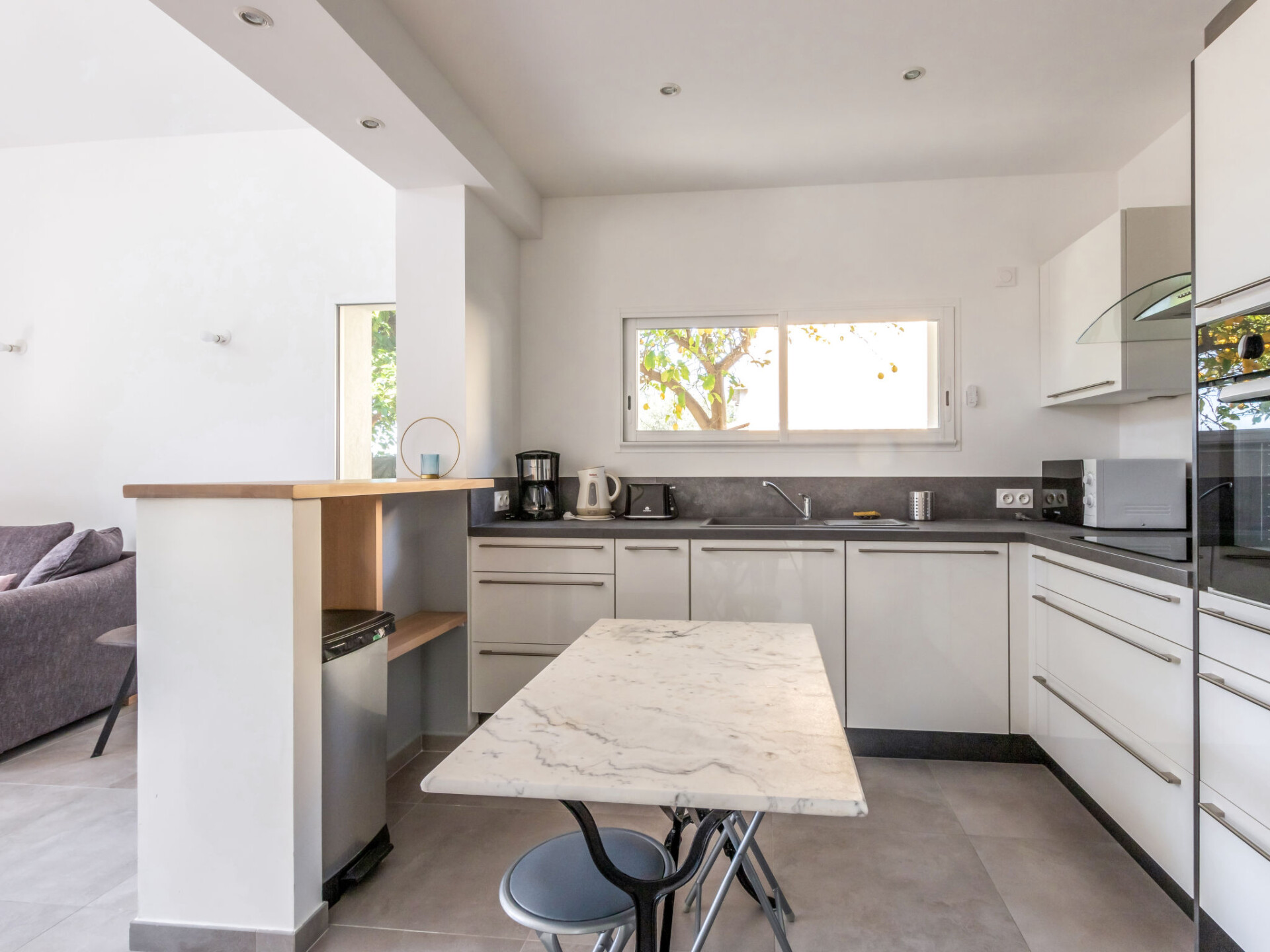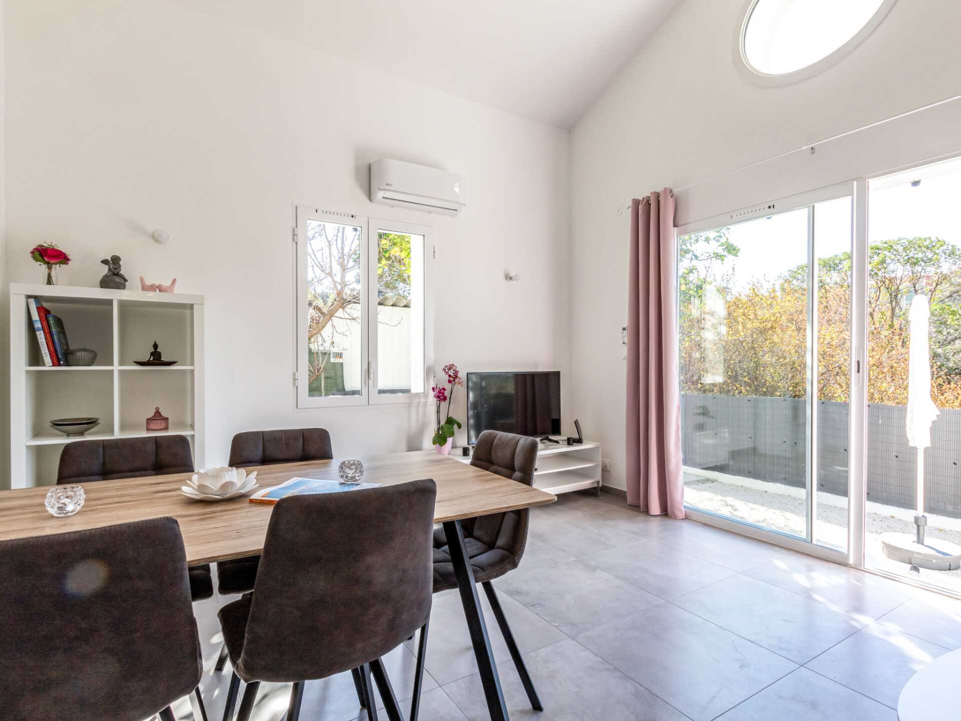 Villa 3-kamers 61 m2. Licht, mooi en modern ingericht: woon-/eetkamer met TV (Flatscreen TV). Uitgang naar het terras. 2 kamers, elke kamer heeft 1 2-pers bed (140 cm, lengte 190 cm). Kookhoek (oven, afwasmachine, 3 inductiekookplaten, magnetron, diepvriezer, elektrische koffiemachine). Douche, aparte WC, dubbele wastafels. Elektrische verwarming, air-conditioning. Groot terras. Terrasmeubelen, elektrische barbecue, ligstoelen (2). Ter beschikking: wasmachine, kluis, strijkijzer. Internet (WiFi, gratis). Rookvrij huis. TV alleen FR. Rookmelders. FR8370.117.1