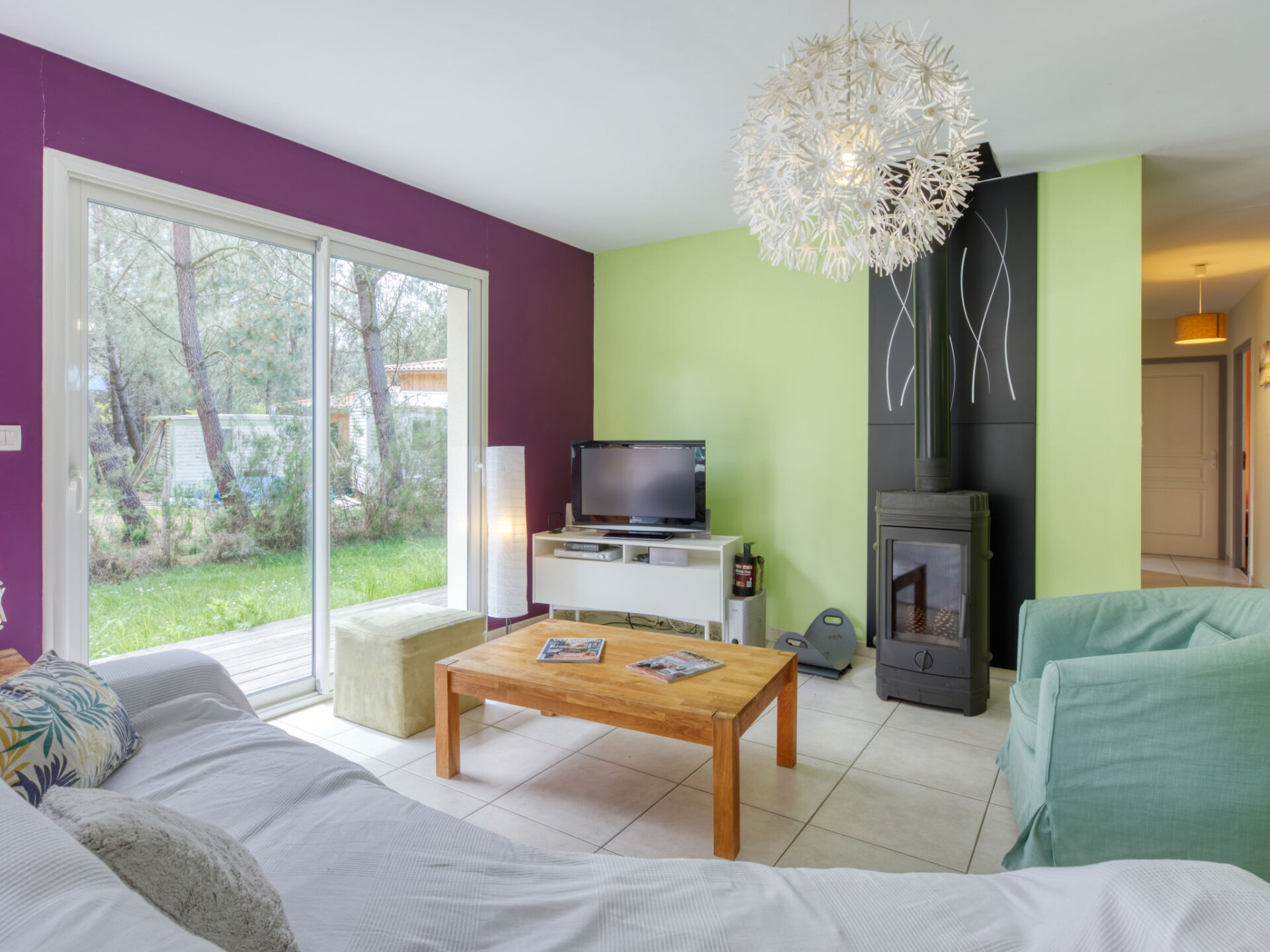 "Nico", huis 4-kamers 115 m2. Licht, mooi en gezellig ingericht: woon-/eetkamer met panoramavenster met eettafel, Sat-TV en internationale TV-zenders (Flatscreen TV), radio, CD-speler, DVD en houtkachel. Uitgang naar het terras. 2 kamers, elke kamer heeft 1 2-pers bed (160 cm, lengte 200 cm). 1 kamer met 2 bedden (90 cm, lengte 200 cm). Open keuken (mini-oven, afwasmachine, 4 kookpitten (vlammen), broodrooster, waterkoker, magnetron, diepvriezer, elektrische koffiemachine) met kleine eettafel. Bad/douche, aparte WC, dubbele wastafels. Elektrische verwarming. Groot terras. Terrasmeubelen, elektrische barbecue, ligstoelen. Mooi uitzicht op het bos. Ter beschikking: wasmachine, strijkijzer, kinderstoel, kinderbed. Internet (Internet (WiFi), gratis). Geschikt voor families. Rookvrij huis. Rookmelders. 2