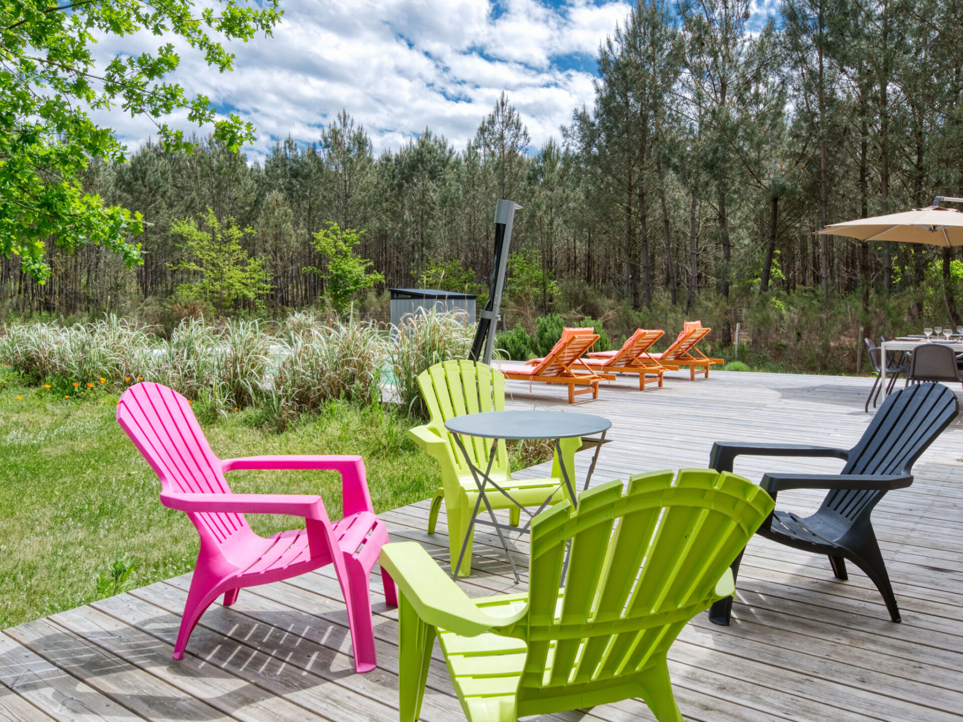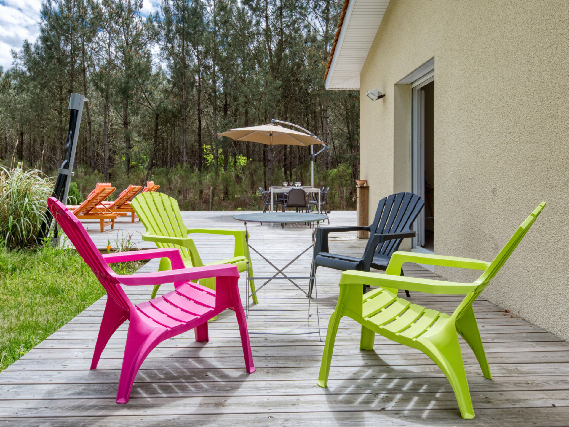 Gezellige villa "Nico". In de wijk Le Garthieu, 6 km van het centrum van Hourtin, 24 km van het centrum van Lesparre-Médoc, 52 km van het centrum van Soulac-sur-Mer, 17 km van zee, 8 km van het meer, aan een doodlopende weg. Voor alleengebruik: wild terrein 2.600 m2 (omheind) met bloemen en bomen, openluchtzwembad (8 x 4 m, 160 cm diepte, seizoensgebonden beschikbaarheid: 01.Jun. - 30.Sep.) met oprolbaar afdekscherm en zout-elektrolyse. Buitendouche, parkeerplaats bij het huis op het terrein. Winkel 6 km, bushalte "Les ourmes" 8 km, zandstrand "Hourtin-Plage" 17 km, meer Lac d'Hourtin 8 km. Dieren in de buurt.