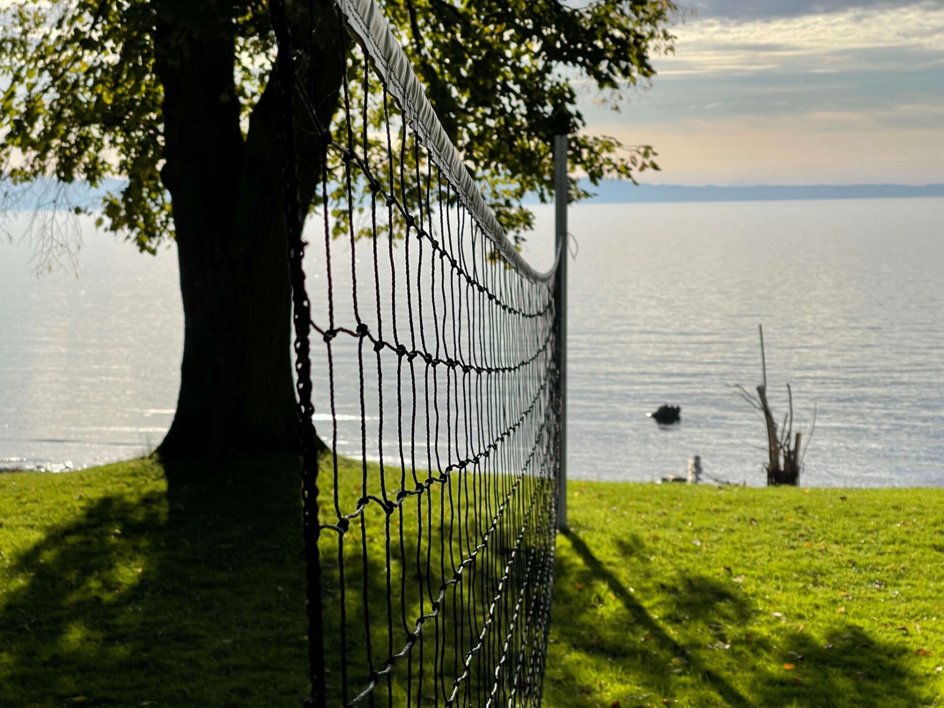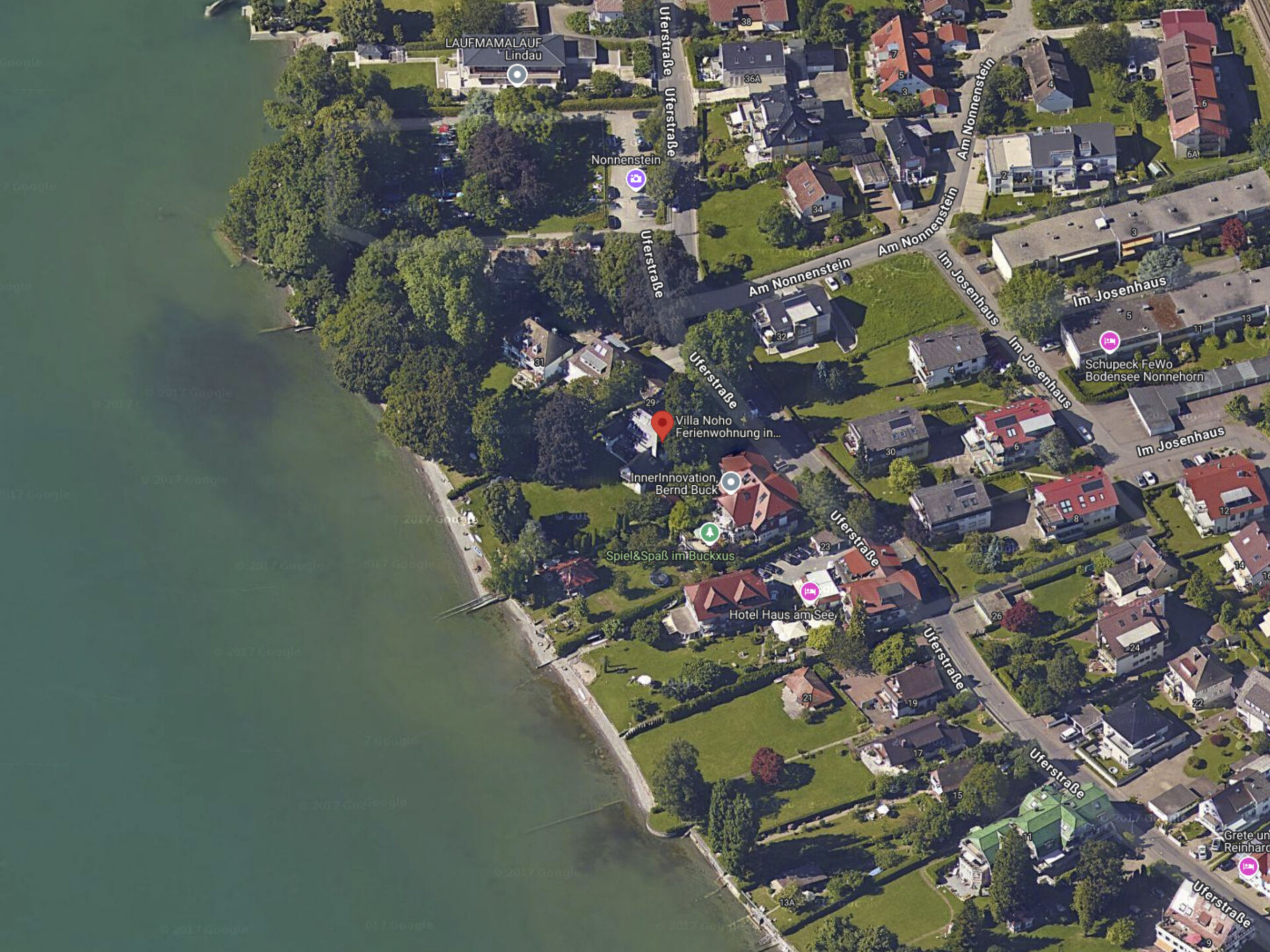Villa Noho is the ideal place for a relaxing and adventurous holiday on Lake Constance and in the four-country region (Germany, Austria, Switzerland, Liechtenstein).The flat is extremely comfortable and offers numerous leisure activities for the whole family.It is mainly on the ground floor, where the living and sleeping areas are located. In the basement there is a fitness room and a laundry room equipped with washing machine, tumble dryer, ironing board and a bathroom with shower.Villa Noho has four elegant bedrooms. The master bedroom and another double bedroom have access to a shared bathroom with bathtub, shampoo and shower gel dispenser, mirror with weather forecast display, hairdryer and scales. The third double bedroom has a small private bathroom with shower. The fourth double bedroom has a large window overlooking the garden and the lake.The kitchen is fully equipped: dishwasher, egg cooker, kettle, microwave, toaster, oven, fridge and freezer. There is also a coffee machine for coffee and cappuccino, a blender and a crepe maker. Everything you need for cooking (oils, vinegar, spices) as well as Nespresso capsules, various teas, sugar, salt and pepper are available.For our oriental guests we offer chopsticks, a wok pan and soya sauce.Products for the dishwasher and for cleaning are also available as well as a soda stream (make your own carbonated water).The living area invites you to relax with a large dining table and a fireplace.The spacious living room offers a spectacular view of the garden through the panoramic window. The sofa is very large and modular, it can be moved to transform the living room into a home cinema thanks to the 4K home cinema system with large Bluetooth speaker. Guests also have an antique grand piano at their disposal - playing the piano with a view of Lake Constance is a rare experience! From the living room, you have direct access to the spacious garden and the covered terrace, which is equipped with a table for eight people.The garden offers various sports facilities, such as a net for beach tennis, badminton or volleyball, a trampoline and a double gymnastic bar. On the beach you will find SUP boards (life jackets are available), horizontal and vertical fire pits and a barbecue plate with a diameter of one metre. Deckchairs (comfort) are also available.Close to the beach is our barrel sauna, just a few steps from the lake, which can accommodate up to four seated people.Villa Noho is an excellent starting point for day trips, e.g. to Munich, Zurich, the Principality of Liechtenstein, Constance and the Rhine Falls in Schaffhausen.Here, both children and parents will find ideal conditions for relaxation and fun.The private car park offers space for up to three cars, and you can conveniently charge your e-bikes in the bicycle garage with power connection.Villa Noho promises unforgettable holiday experiences in a dreamlike setting! It is nestled in a garden with centuries-old trees and offers a particularly high quality of life. The solid concrete walls of the house ensure a pleasant indoor climate, while the excellent air quality in Nonnenhorn and the fresh breeze from Lake Constance further enrich the atmosphere.Guests who have already stayed at Villa Noho have particularly appreciated the high quality of sleep. The spacious and comfortable bedrooms, which face the side garden, offer the option of keeping the shutters and windows closed or open as desired. Apart from the chirping of the birds and the sound of the waves during a storm, no other sounds or noise can be heard.Nonnenhorn is a completely safe village with a wide range of events for tourists all year round.