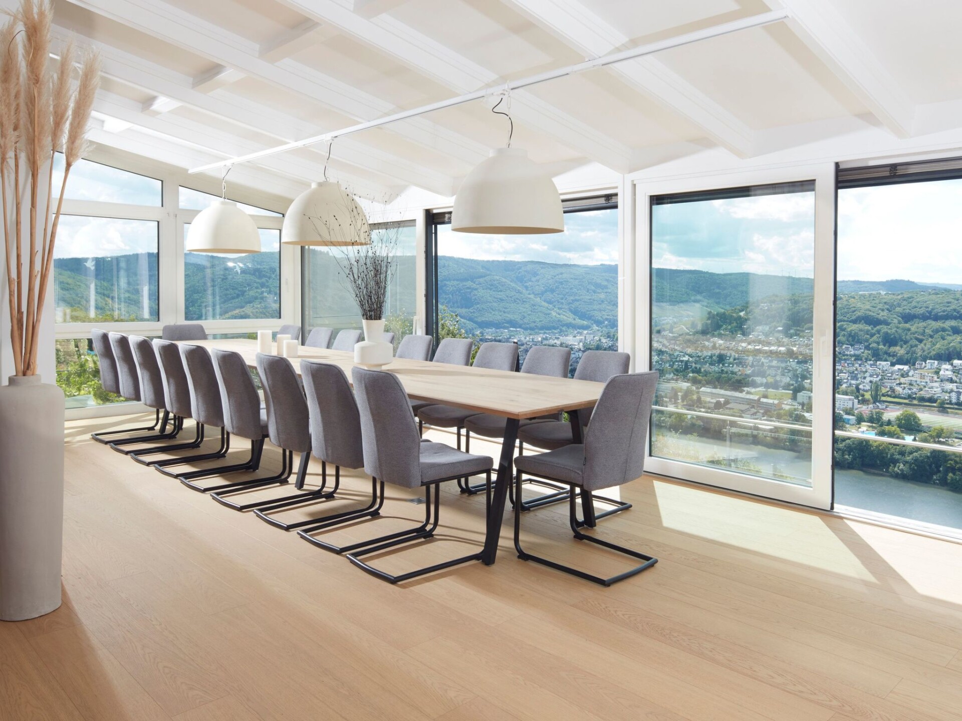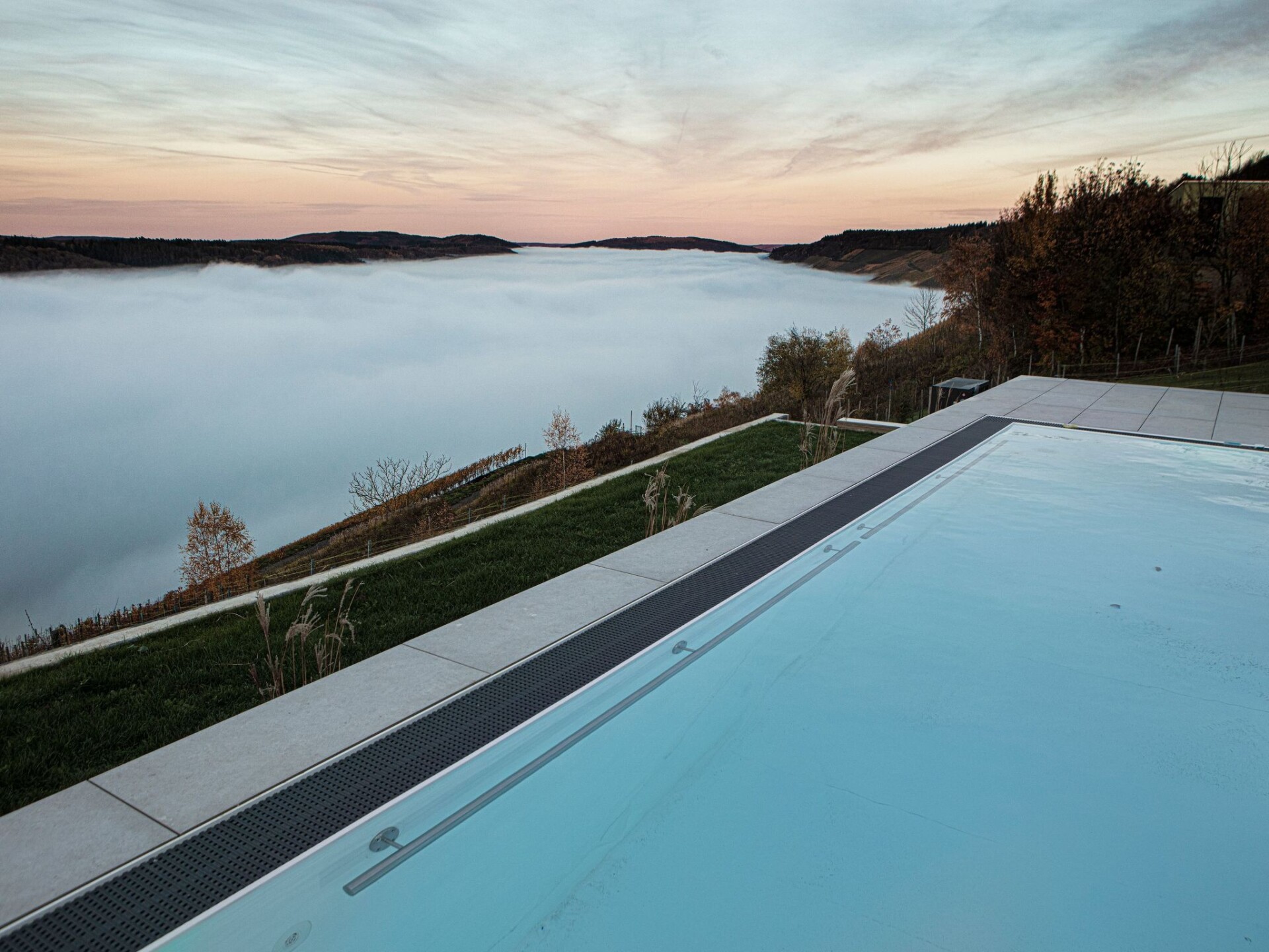 We are still renovating for you. More photos of the outdoor wellness area and the other bedrooms will be published soon.S L O W S U N D A Y - on Sundays check out is until 5 pmDiscover the luxurious getaway for large groups, families and colleagues with a view of the Moselle and Bernkastel Kues. Our spacious holiday home offers space for up to 22 people in 11 stylish bedrooms with box-spring beds. With 10 modern bathrooms, 8 of which are en-suite, the accommodation is ideally designed to give group holidays a sense of privacy and comfort. We also welcome up to 2 dogs.The outdoor area of the villa is a wellness oasis with an infinity pool with views for miles, a panoramic sauna and a covered hotspring whirlpool. A spacious terrace and lounge area provide the perfect backdrop for cosy hours outdoors. The garden is for your exclusive use and is dog-proof fenced so that your four-legged friends can run around freely without you having to worry. For bike lovers, there is a covered parking space, making the house an ideal base for exploring on two wheels. There is also an accessible goat enclosure and a children's playground just a few minutes' walk away.Inside, the house offers a variety of amenities that will make your stay unforgettable. Enjoy cosy evenings in front of the fireplace or make use of the extensive facilities for entertainment and comfort. These include a Smart TV for relaxed film evenings, a pool table for shared games evenings and a well-equipped open-plan kitchen.The surroundings of Villa Orange Tree offer an idyllic combination of vineyards, the Moselle and the picturesque valley, which together provide a breathtaking natural backdrop. Here you will find the perfect mix of relaxation and adventure. Whether you're hiking through the vineyards, cycling along the river or taking a covered wagon ride with wine tasting, this is the perfect place for an unforgettable holiday.Finally, our holiday villa in Graach Schäferei offers the ideal retreat for groups who value comfort, privacy and nature. With its extensive facilities, spacious outdoor areas and attractive location, it is the perfect place to spend time together and explore the beauty of the region. Don't miss this opportunity to enjoy an incomparable holiday in one of Germany's most charming landscapes.
