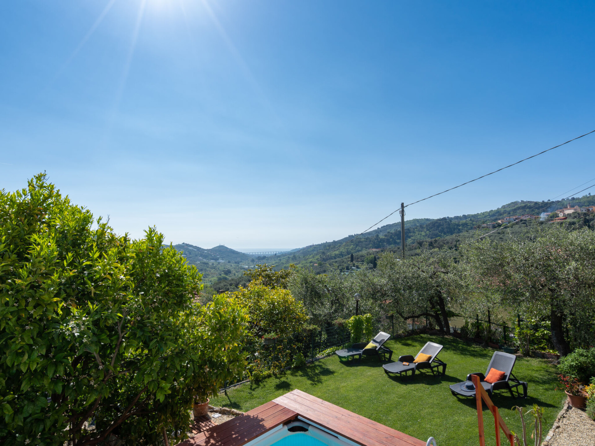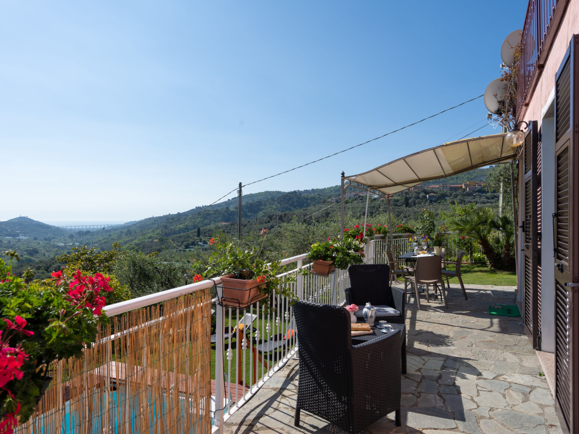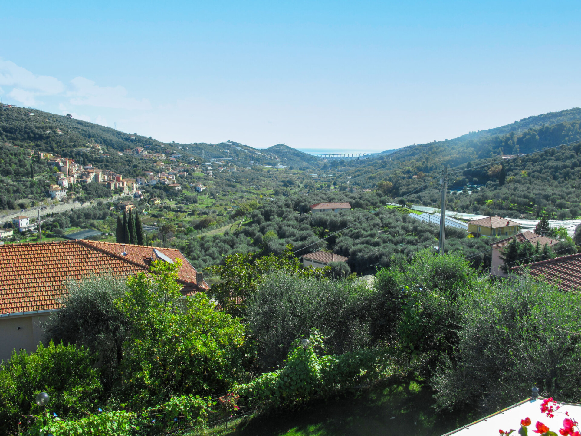 Mooi Huis met 2 woningen "Villa Paradiso", van 2 verdiepingen, omgeven door bomen. 2 appartementen in de woning. In de wijk San Paolo, 2 km van het centrum van Dolcedo, 10 km van het centrum van Imperia, 35 km van het centrum van San Remo, zonnige, verhoogde ligging tegen een helling, in een woonwijk, 9 km van zee. Voor medegebruik: mooie tuin ter ontspanning, openluchtzwembad (verhoogd) hoekig omheind (6 x 4 m, 120 cm diepte, seizoensgebonden beschikbaarheid: 15.Apr. - 15.Okt.). 150 m lange smalle toegangsweg. Winkel 2 km, supermarkt 10 km, restaurant 2 km, bar 2 km, bakkerij 2 km, café 2 km, bushalte 200 m, zandstrand 14 km kiezelstrand 10 km, openluchtzwembad 15 km, overdekt zwembad 15 km, meer (zwemmen) "Lecchiore" 4 km. Manege 6 km, fietspad 9 km.