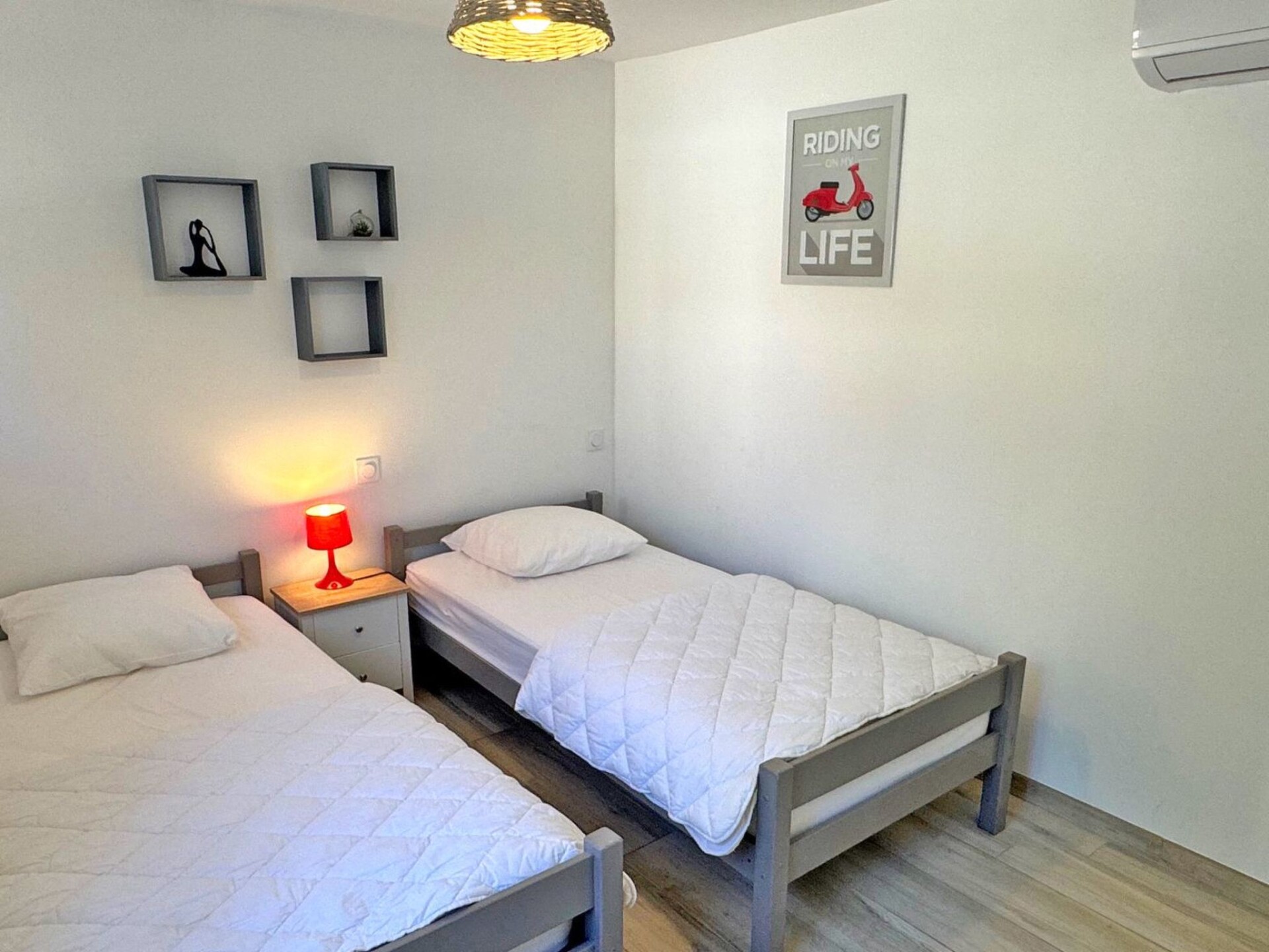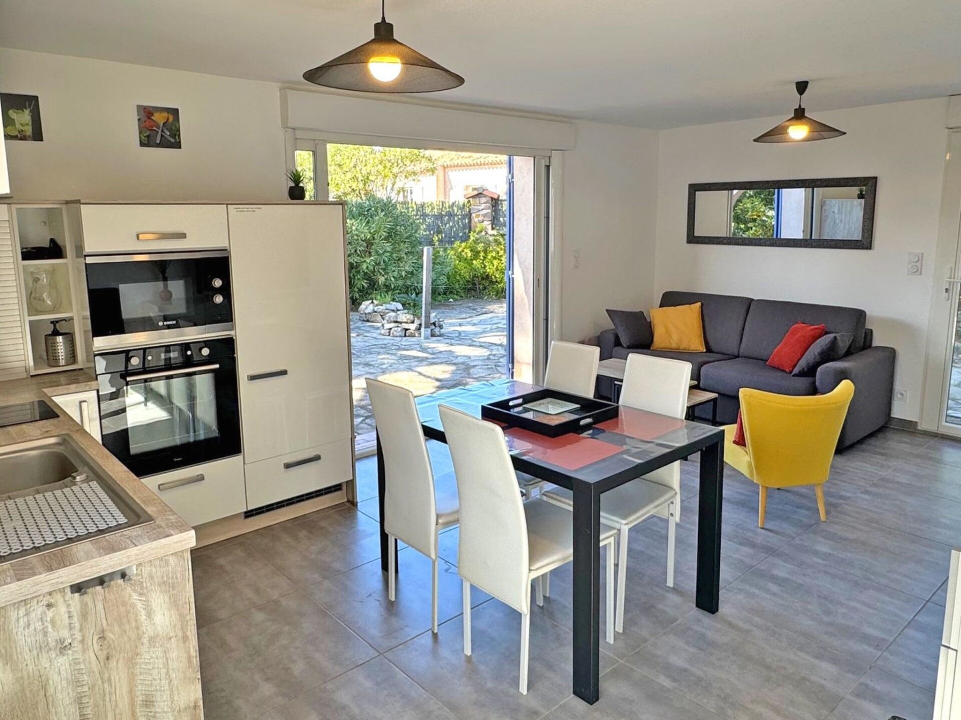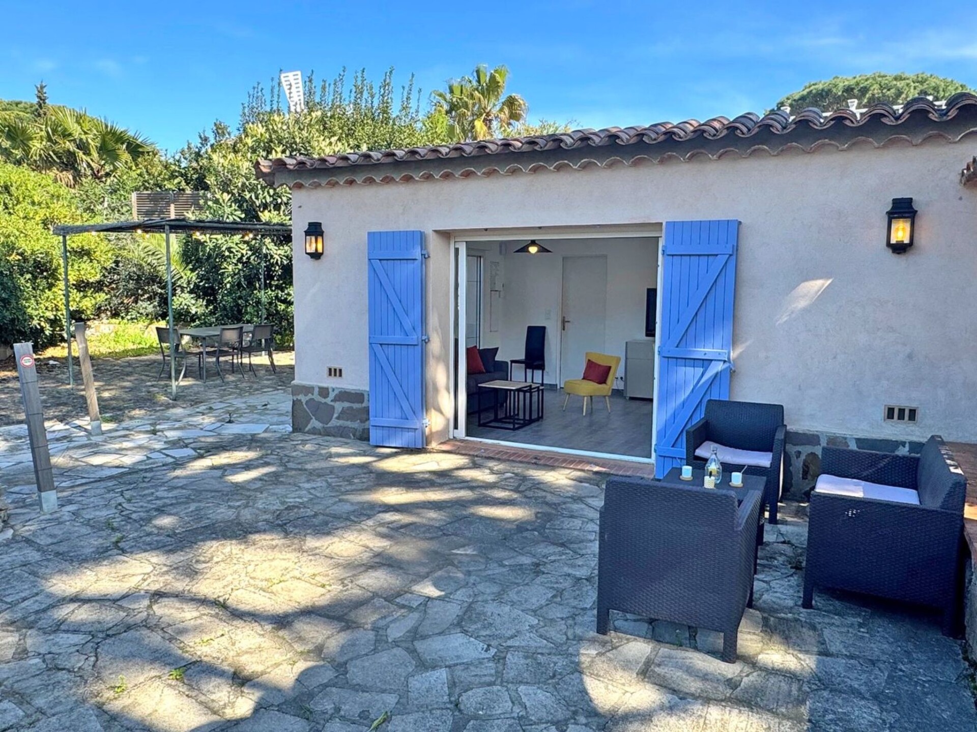 This beautifully renovated 2-bedroom holiday home can accommodate up to 6 people. You'll love its simple, modern decor and ideal location on the Sémaphore hill, close to the town centre and just a short drive from the beaches.55 m² house with 480 m² garden - Quartier du Sémaphore Ground floor - sleeps up to 4/6 people- Air-conditioned living room with rapido sofa bed (140 cm), table and chairs, TV unit with flat-screen TV, fully-equipped open-plan kitchen (fridge, freezer, 2-ring induction hob, dishwasher, oven, microwave, crockery and cutlery),- Bedroom 1 air-conditioned: double bed (140 cm) with wardrobes, winter garden- Air-conditioned bedroom 2: 2 single beds (90cm) with wardrobes- Shower room with shower cubicle, vanity unit, WC and washing machine- Terrace with dining and relaxation furniture- 480 m² Mediterranean garden planted with trees- WiFi access- Air conditioning in all rooms- Parking for 3 vehicles in the gated driveway- Pets allowed (1 only and on request)Reception and key collection times:-> July - August :Monday to Friday between 3pm and 6pm maximum.Saturdays between 16:00 and 18:30 maximum.Sundays and public holidays (excluding Saturdays) between 10.00am and 12.30pm maximum.-> The rest of the year:Monday to Saturday between 3pm and 6pm maximum.Sundays and public holidays: independent arrival (key box, details given after booking).If you wish to arrive outside these times, please enquire before booking.Services included:- End-of-stay cleaning- Disposable mattress and pillow protectors- Kitchen towels (not provided during the COVID period)- Bathroom mats (not supplied during the COVID period)House rules :- No parties or festive events- No smoking inside- Town centre: 1500m- Beach: 1500m- Shops: 1000m. 83115001376HT