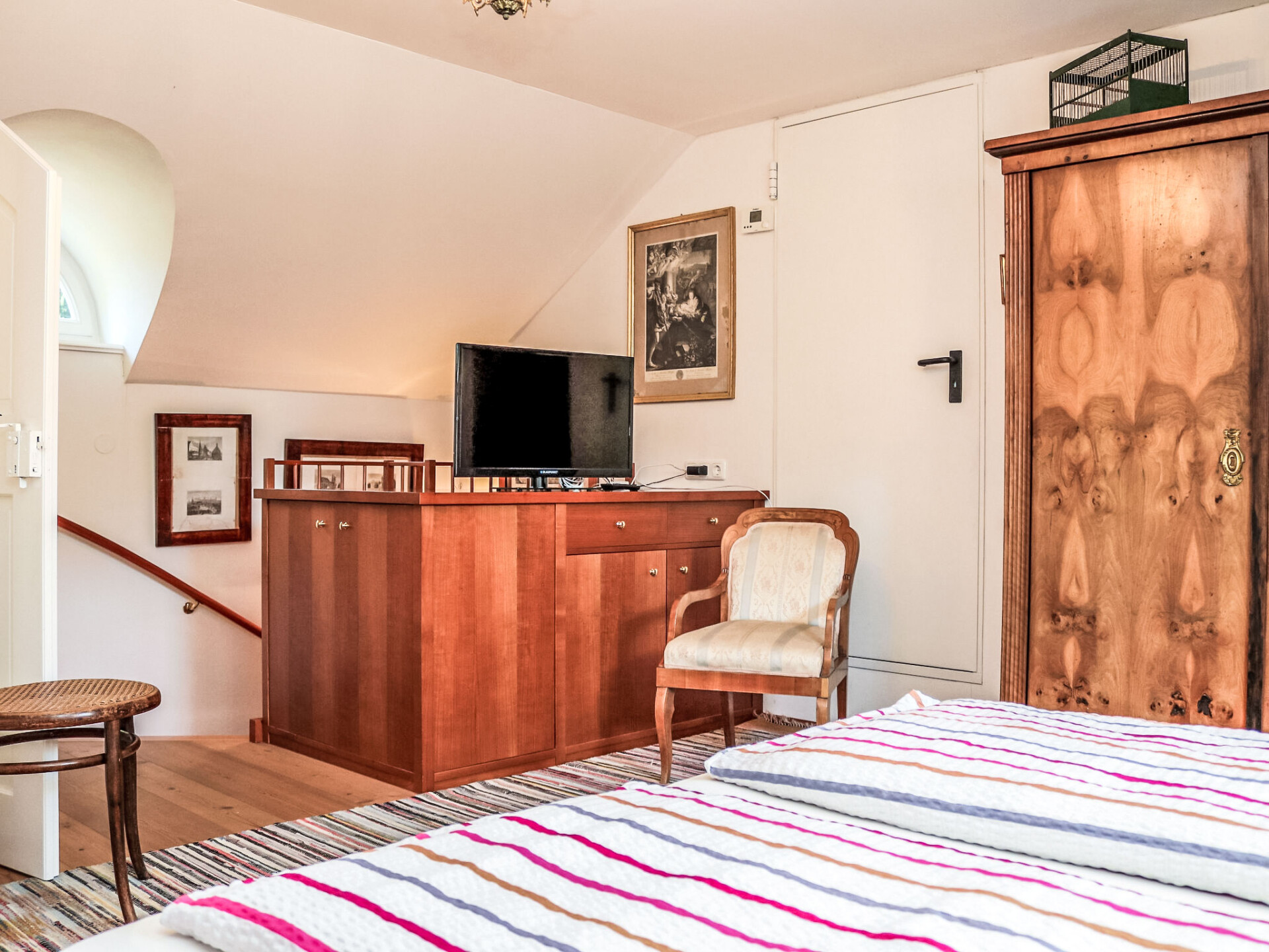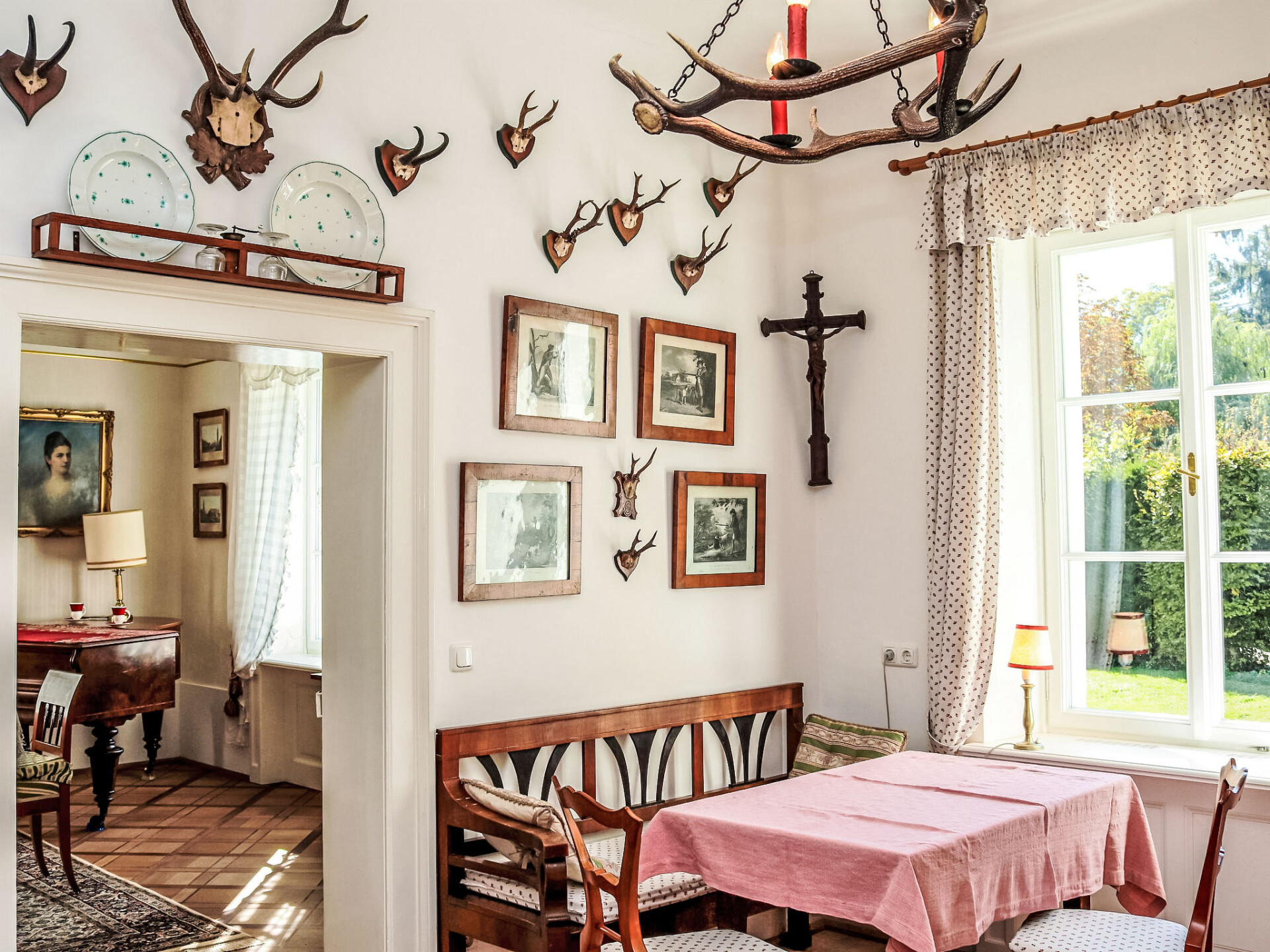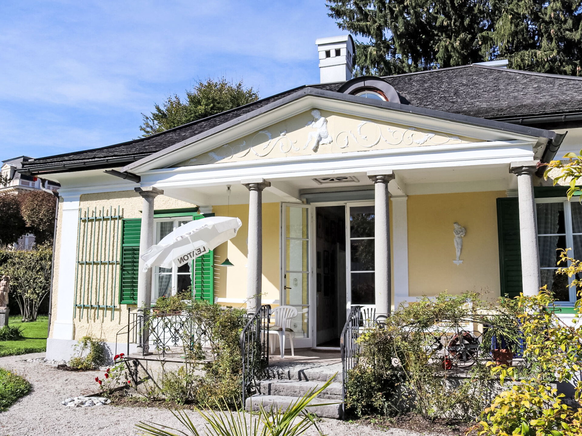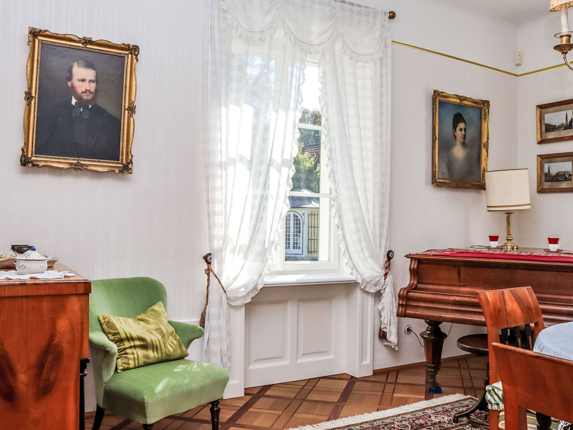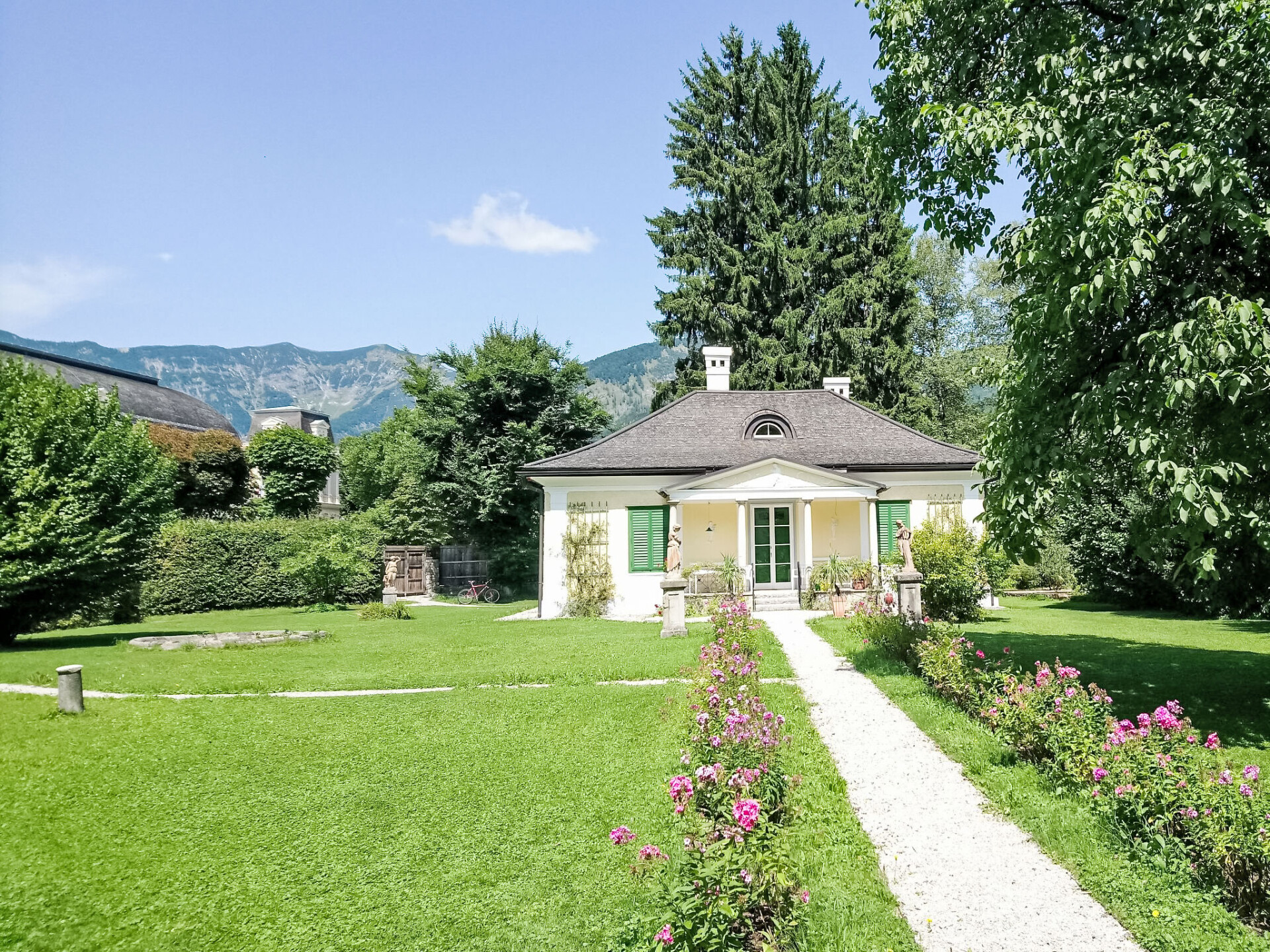 In het kuurpark gelegen historische villa "Rosenvilla", uit de 19e eeuw, gerenoveerd. Centrale, zonnige ligging. Voor alleengebruik: park 1.700 m2 met mooie tuin ter ontspanning. Supermarkt 200 m, restaurant 100 m, voetgangersgebied 200 m, bushalte "541,546" 130 m, treinstation "Bad Ischl" 1 km, thermaalbad "Eurothermenressort Bad Ischl" 800 m. Golfterrein (18 holes) 6 km, tennis 3 km, kabelbaan 5 km, skilift 21 km. Attracties in de buurt: Stadtmuseum Bad Ischl 30 m, Kongress- und Theaterhaus Ischl 50 m, Franz Lehar Filmtheater 500 m, Kaiservilla 900 m, UNESCO Welterbeort Hallstatt 21 km. Bekende skigebieden kunnen gemakkelijk worden bereikt: Feuerkogel Ebensee 20 km. Bekende meren kunnen gemakkelijk worden bereikt: Wolfgangsee 13 km, Attersee und Traunsee 19 km. Wandelgebied Nussensee, Katrinalm, Postalm. Niet geschikt voor kinderen onder 10 jaar. De sleuteloverdracht vindt plaats bij het agentschap SKGT Touristik in Götzstr. 12, 1 km. De omgeving is gevoelig voor geluidsoverlast. Gelieve geen lawaai te maken en de rust te bewaren. Het muziekkasteel is compleet gerestaureerd en ingericht met originele meubelen. In de grote biedermeiertuin met fonteinen staat een paviljoen. Hier verblijft u in het hart van een uniek landschap en beschikt tegelijkertijd over het bonte recreatieaanbod van een betoverend stadje.