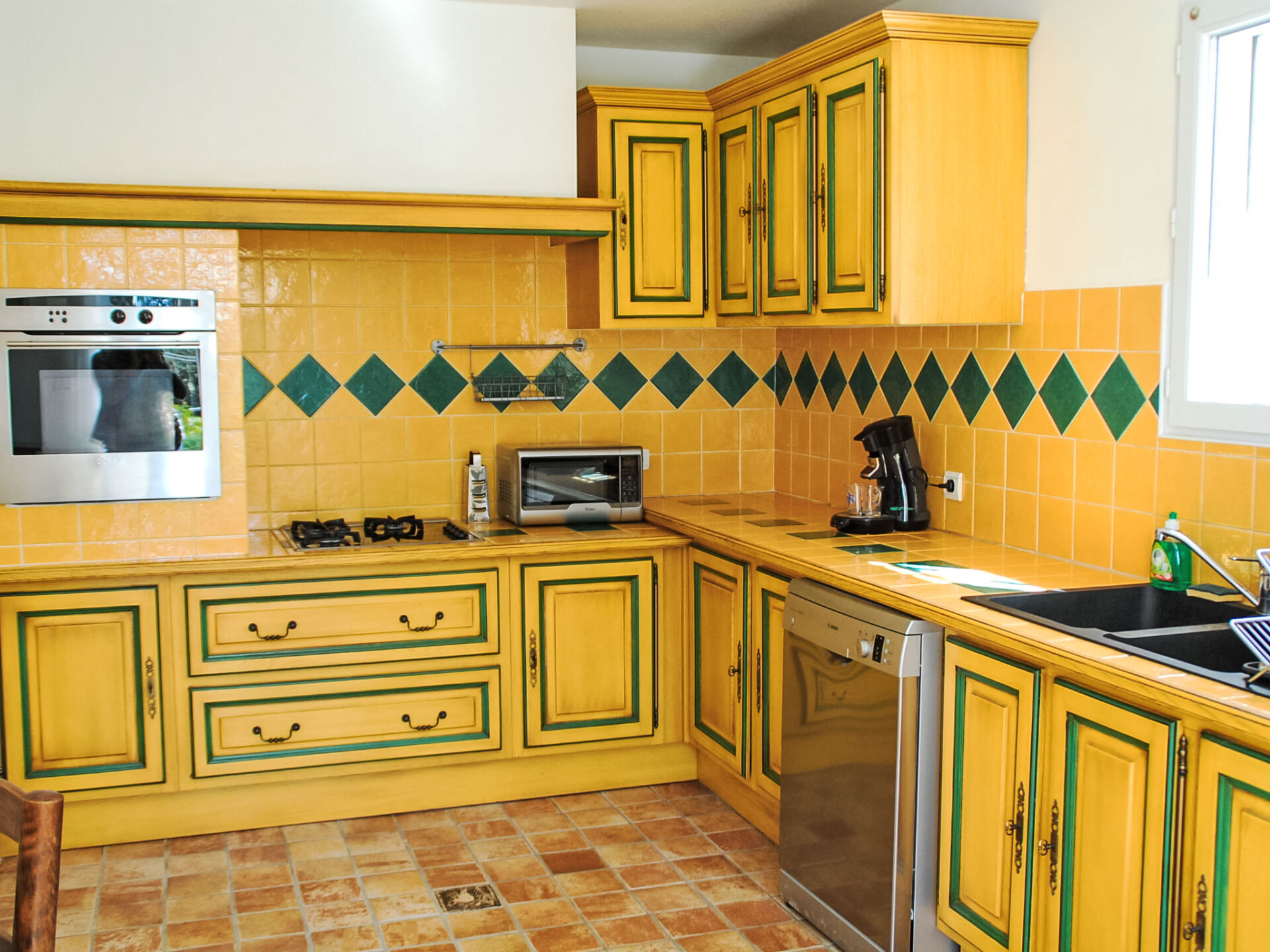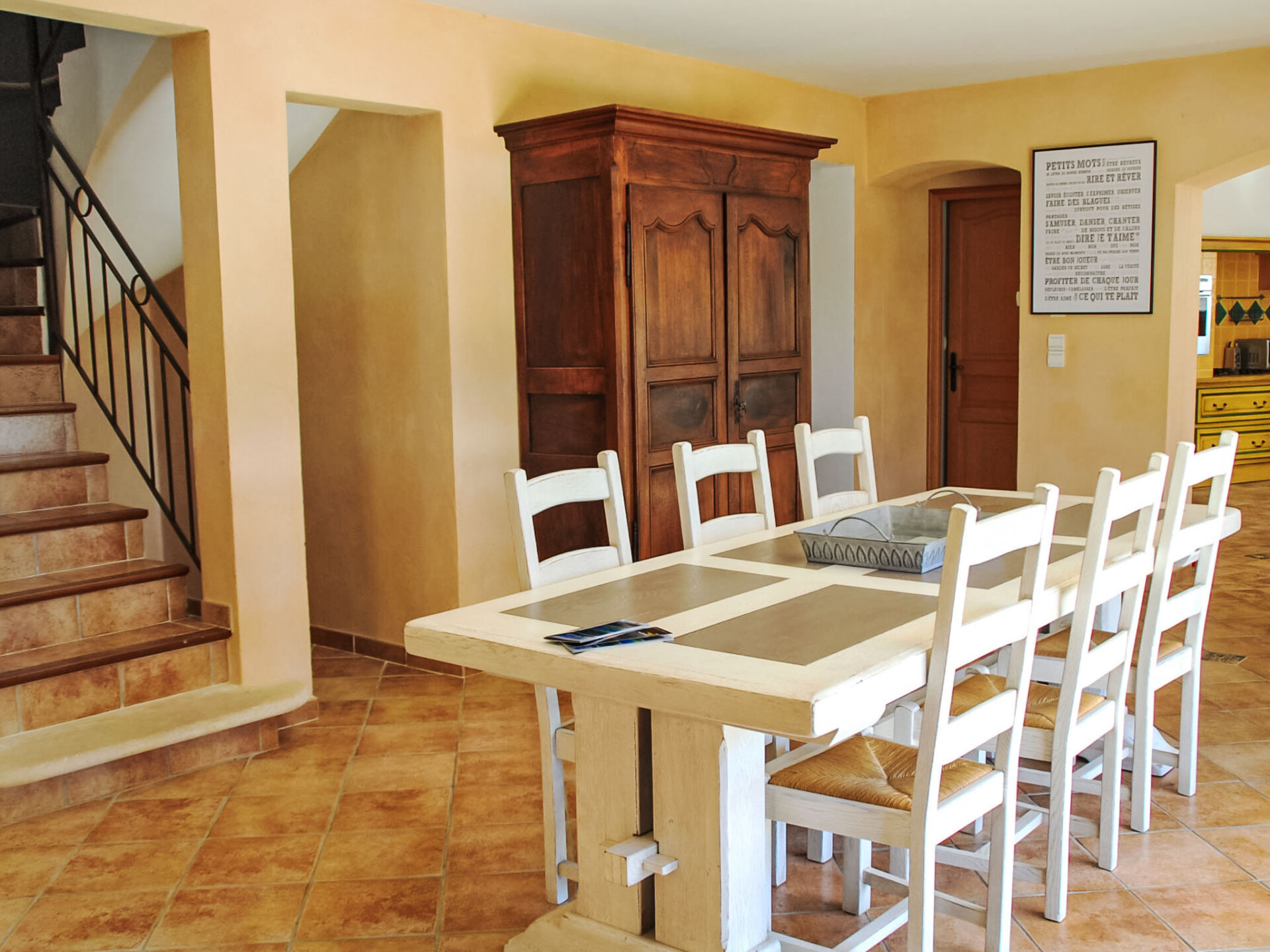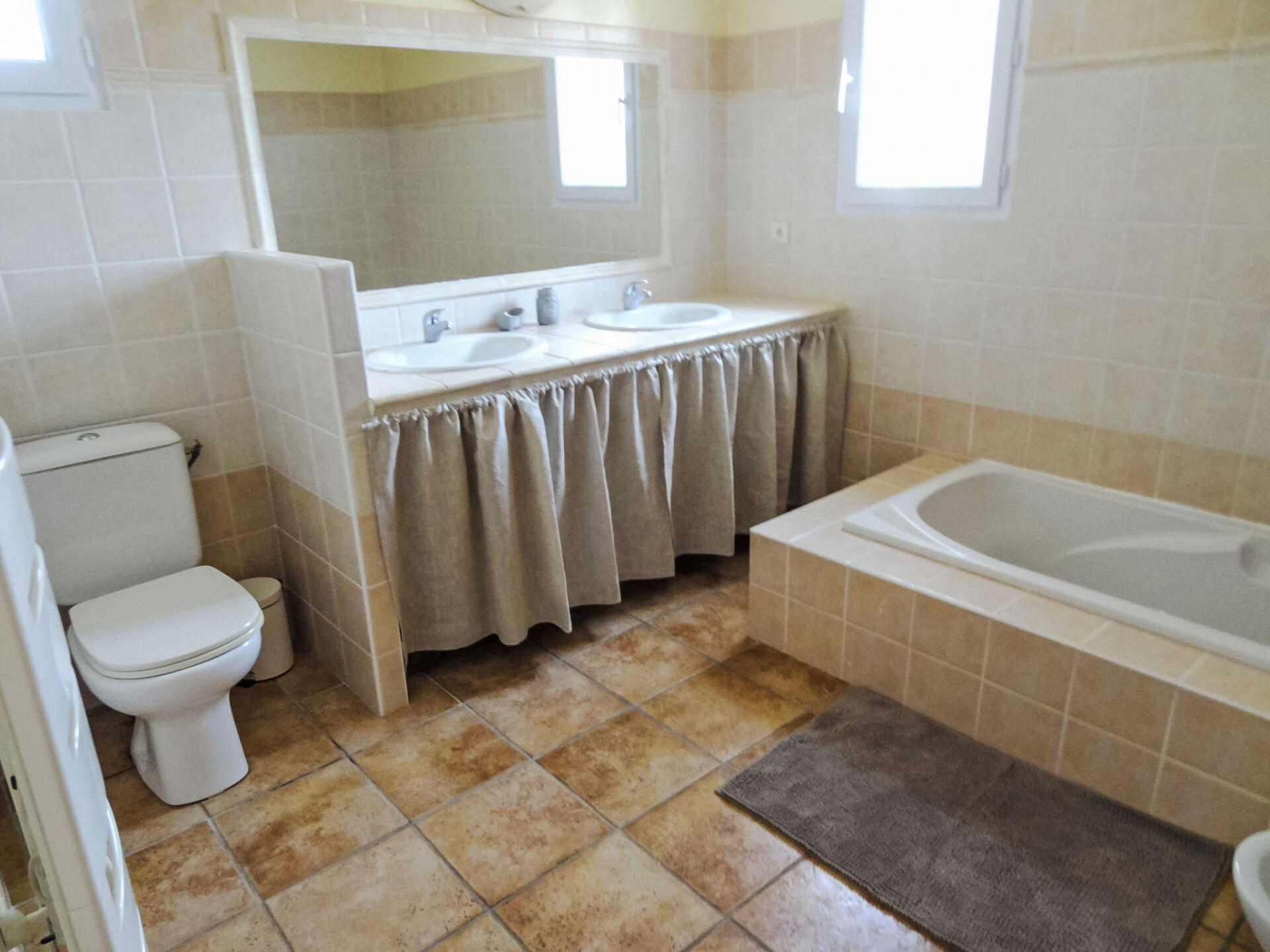 Huis 6-kamers 170 m2 op 2 verdiepingen. Mooi ingericht: hal. Woon-/eetkamer 50 m2 met TV (Flatscreen TV). Uitgang naar het terras. Bureau. 2 kamers, elke kamer heeft 1 2-pers bed (1 x 160 cm, lengte 200 cm), air-conditioning. Keuken 25 m2 (oven, afwasmachine, 4 inductiekookplaten, magnetron, diepvriezer). Uitgang naar het terras. Douche, aparte WC. Bovenverdieping: 1 kamer met 1 2-pers bed (1 x 140 cm, lengte 190 cm), air-conditioning. 1 kamer met 2 bedden (90 cm, lengte 200 cm). Bad/WC. Vloerverwarming. Terras 60 m2 gedeeltelijk overdekt. Terrasmeubelen, elektrische barbecue, ligstoelen (8). Ter beschikking: wasmachine, klamboe, kinderstoel, kinderbed tot 2 jaar. Internet (Internet (WiFi), gratis). Rookvrij huis. Maximaal 3 huisdieren/honden toegestaan. Rookmelders. Het zwembad genoemd in de beschrijving is voor privé gebruik.