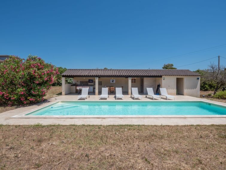 Pianatolli-Caldarello 7 km van Figari: Mooi villa "Villa I Tre Fratelli". Aan de rand van de plaats, 700 m van zee, 700 m van het strand, te midden van groen. Voor alleengebruik: terrein 5.500 m2, openluchtzwembad verwarmd (12 x 4 m, 160 cm diepte, seizoensgebonden beschikbaarheid: 01.Jun. - 30.Sep.). Douche/WC bij het zwembad, privé-strand. Hamam. Toegangsweg (onverharde weg, bergweg). Parkeerplaats op het terrein. Winkel 3 km, levensmiddelenwinkel 1 km, supermarkt 3 km, restaurant 3 km, bushalte "Pianottoli-Caldarello" 4.4 km, zandstrand "Plage de la Tour" 700 m. Attracties in de buurt: Bonifacio 19 km, Porto-Vecchio 28 km, Sartène 33 km, Iles Lavezzi. Auto noodzakelijk.