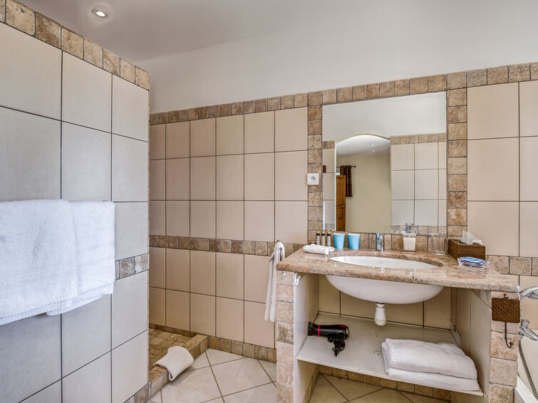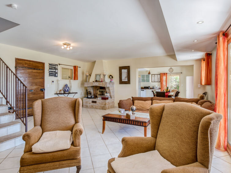 Villa 6-kamers 250 m2 op 2 verdiepingen. Mooi en gezellig ingericht: groot woon-/eetkamer met TV (Flatscreen TV). Uitgang naar het terras. 2 kamers, elke kamer heeft 1 2-pers bed (160 cm, lengte 200 cm), douche/WC. Uitgang naar het terras. 1 kamer met 2 bedden (90 cm, lengte 190 cm), douche/WC. Uitgang naar het terras. 1 kamer met 2 bedden (90 cm, lengte 190 cm), douche/WC. Groot, open keuken (4-pits kookplaat, oven, afwasmachine, magnetron, diepvriezer, elektrische koffiemachine). Bovenverdieping: 1 kamer met 1 2-pers bed (160 cm, lengte 200 cm). Uitgang naar het balkon. Badkamer, aparte WC. Air-conditioning, heteluchtverwarming. Groot terras 50 m2. Terrasmeubelen, ligstoelen (10). Uitzicht op de tuin. Ter beschikking: wasmachine, strijkijzer, kinderstoel, kinderbed tot 3 jaar, haardroger. Internet (Internet (WiFi), gratis).