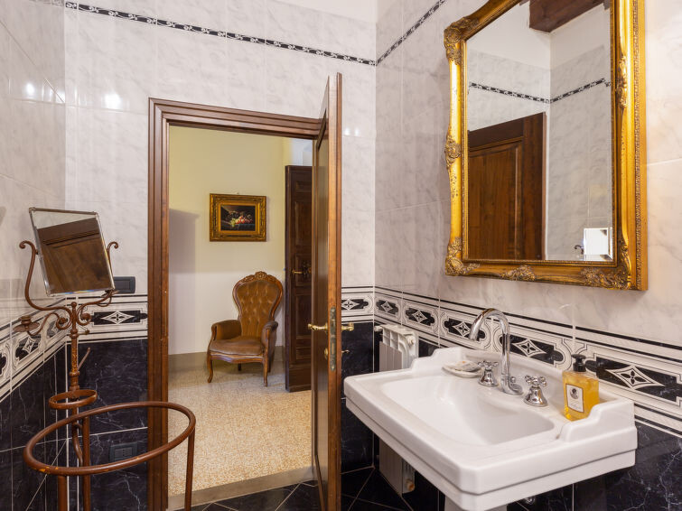 "Villa Isabella", huis 19-kamers 560 m2 op 3 verdiepingen, op verhoogde begane grond. Comfortabel en antiek ingericht: 1 kamer met 2 bedden en douche/bidet/WC. 1 kamer met 2 bedden en douche/bidet/WC. 1 kamer met 2 bedden en douche/bidet/WC. 1 kamer met 2 bedden en douche/bidet/WC. Doorgangskamer met 1 2-pers divanbed. Souterrain: salon met open haard (alleen decoratie). Speelkamer. Douche/bidet/WC. Bovenverdieping: hal. Salon met open haard (alleen decoratie). Salon met Sat-TV. Eetkamer. 1 2-pers. kamer met douche/bidet/WC. 1 2-pers. kamer met douche/bidet/WC. 1 2-pers. kamer met douche/bidet/WC. 1 2-pers. kamer met douche/bidet/WC. 1 2-pers. kamer met bad/bidet/WC. Keuken (oven, afwasmachine, 8 inductiekookplaten, magnetron, diepvriezer). Uitgang naar de loggia. 2 douche/bidet/WC's. Terrasmeubelen, barbecue. Panoramazicht op het landschap. Ter beschikking: wasmachine, strijkijzer, haardroger. Internet (WiFi, gratis). Geschikt voor families. IT048049B48IG3S8LF