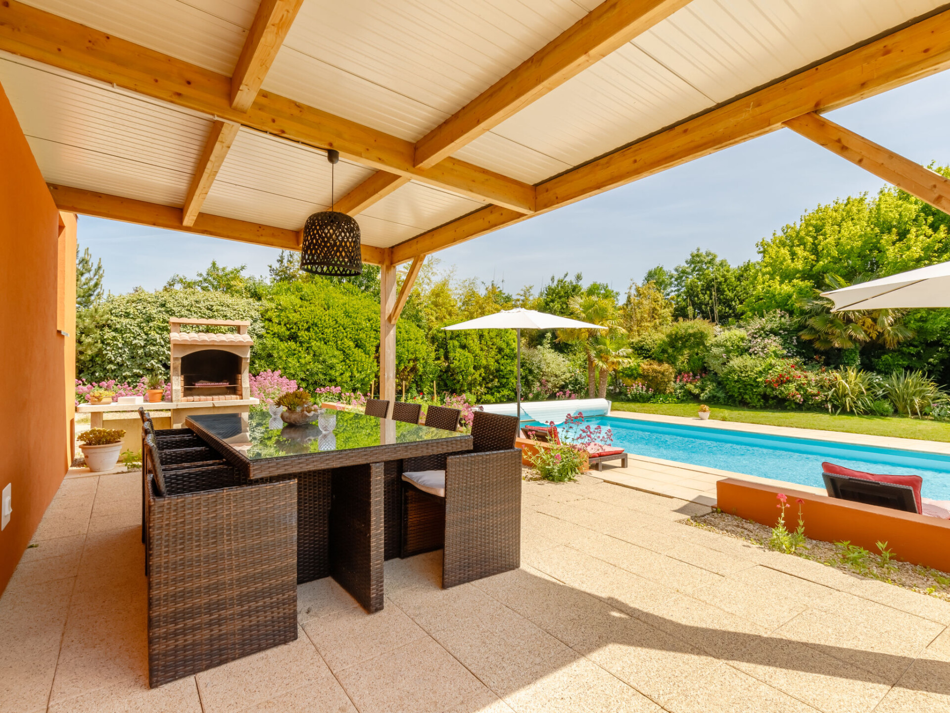 Villa 4-kamers 100 m2. Mooi ingericht: groot woon-/eetkamer met TV (Flatscreen TV), stereo-installatie en DVD. Uitgang naar het terras, naar het zwembad. 1 kamer met 1 2-pers bed (160 cm, lengte 200 cm). 1 groot kinderkamer met 2 bedden (90 cm, lengte 190 cm), 1 2-pers bed (140 cm, lengte 200 cm). 1 kamer met 1 2-pers bed (140 cm, lengte 200 cm). Keuken (oven, afwasmachine, 4 kookpitten (vlammen), broodrooster, waterkoker, magnetron, elektrische koffiemachine, pads voor de koffiemachine (Dolce Gusto) extra) met kleine eettafel. Douche, aparte WC. Elektrische verwarming. Terras 25 m2, overdekt terras 10 m2, overdekt. Terrasmeubelen, barbecue, ligstoelen (6). Ter beschikking: wasmachine, droger, strijkijzer, kinderstoel, kinderbed. Internet (WiFi, gratis). Parkeerplaats. Geschikt voor families. Rookvrij huis. Maximaal 1 huisdier/hond toegestaan. Rookmelders. 8516600010970