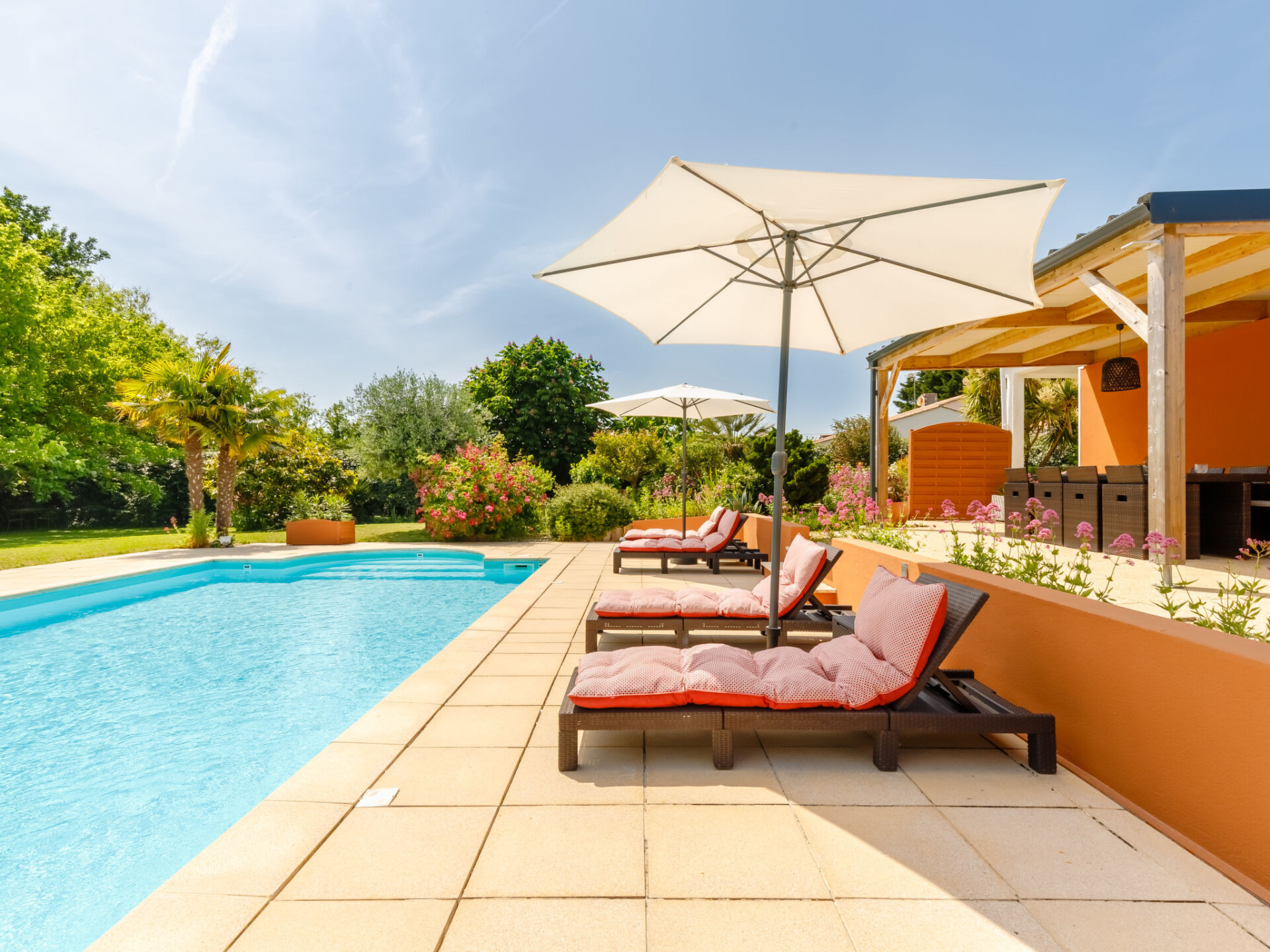 Olonne sur Mer 3 km van Les Sables d'Olonne: Mooi, comfortabele villa "Villa Les Cygnes", bouwjaar 1990, omgeven door bomen. Aan de rand van de plaats, 3 km van het centrum van Olonne sur Mer, rustige ligging in een woonwijk, 2.5 km van zee, 2.5 km van het strand. Voor alleengebruik: groot, mooie, verzorgde tuin 2.000 m2 (omheind) met gazon en bloemen, openluchtzwembad verwarmd (10 x 5 m, 50 - 200 cm diepte, seizoensgebonden beschikbaarheid: 03.Mei. - 30.Sep.) met oprolbaar afdekscherm. Tafeltennis, terras, tuinmeubelen. Berging beschikbaar. Parkeerplaats (voor 4 auto's) op het terrein. Winkel 1 km, supermarkt 1 km, restaurant 1 km, bushalte 500 m, zandstrand 2.5 km. Tennis 3 km.