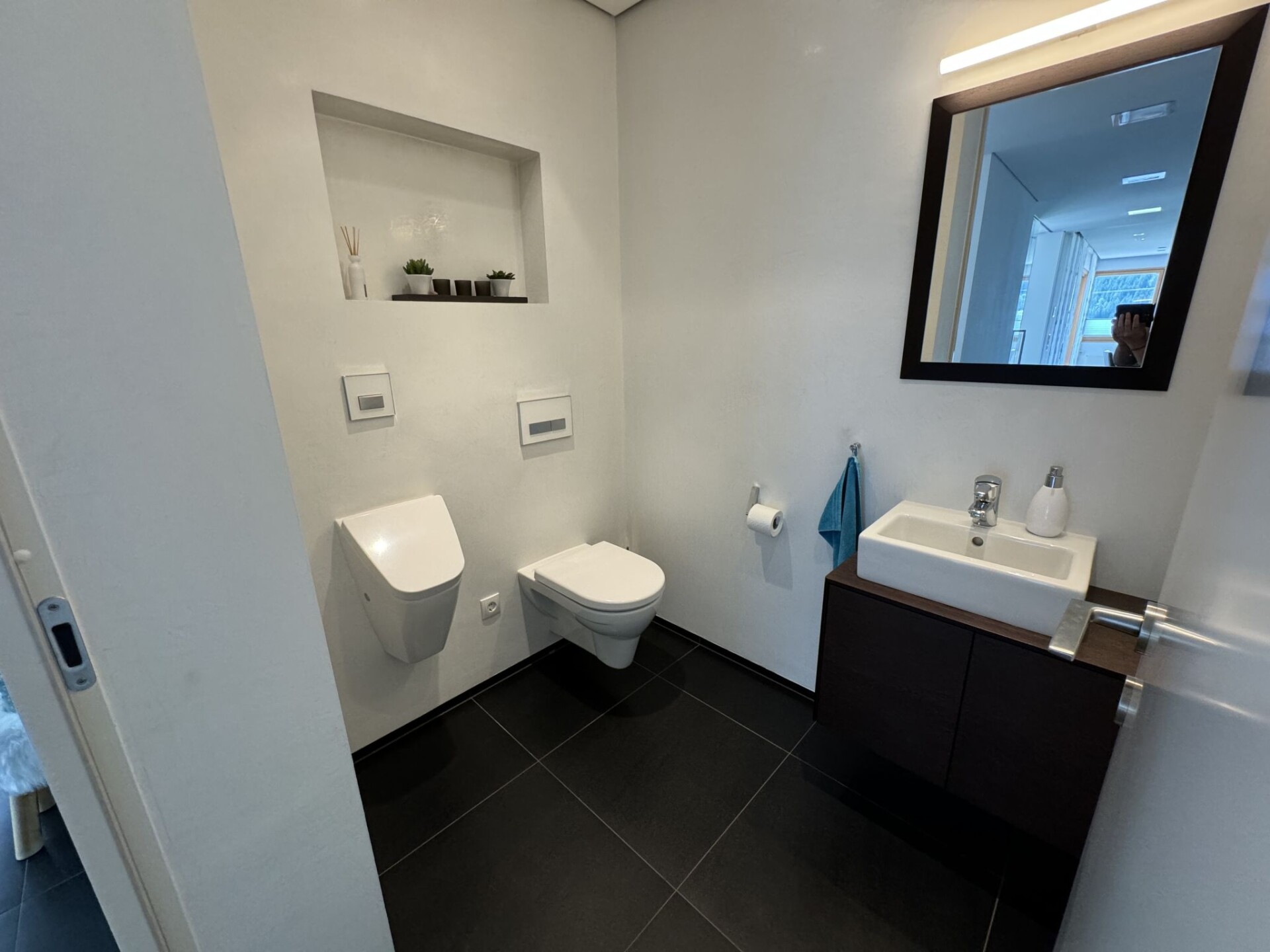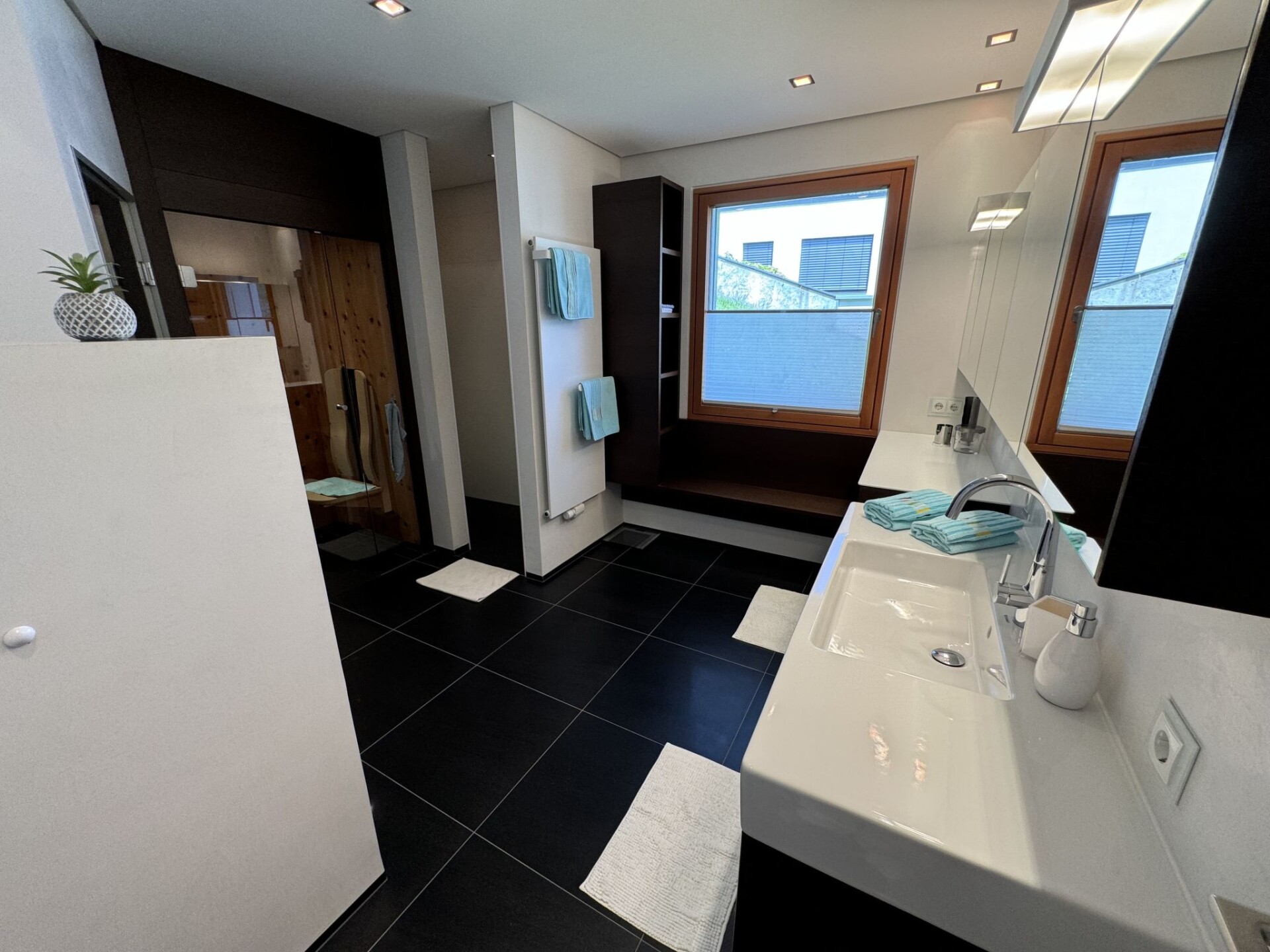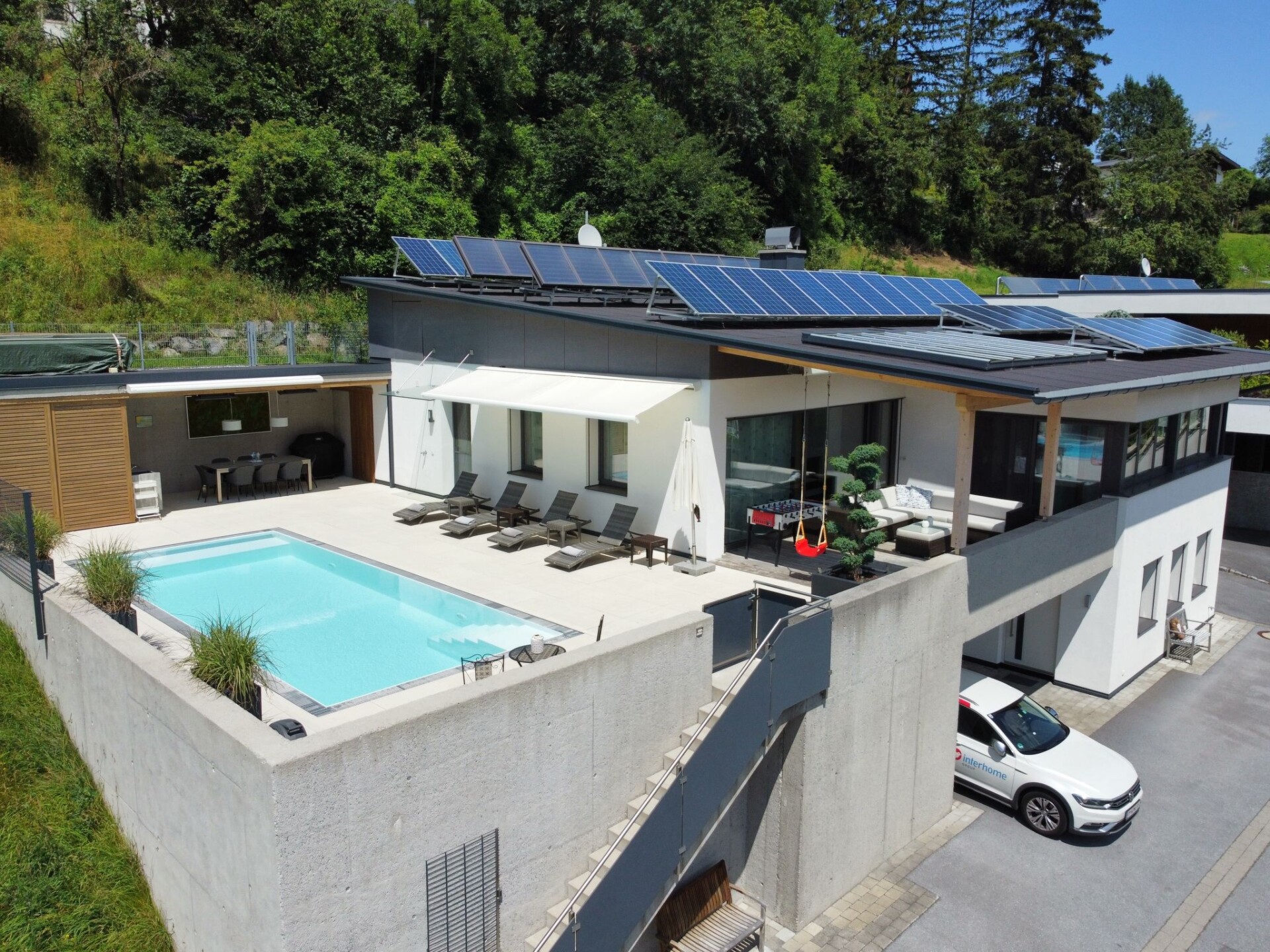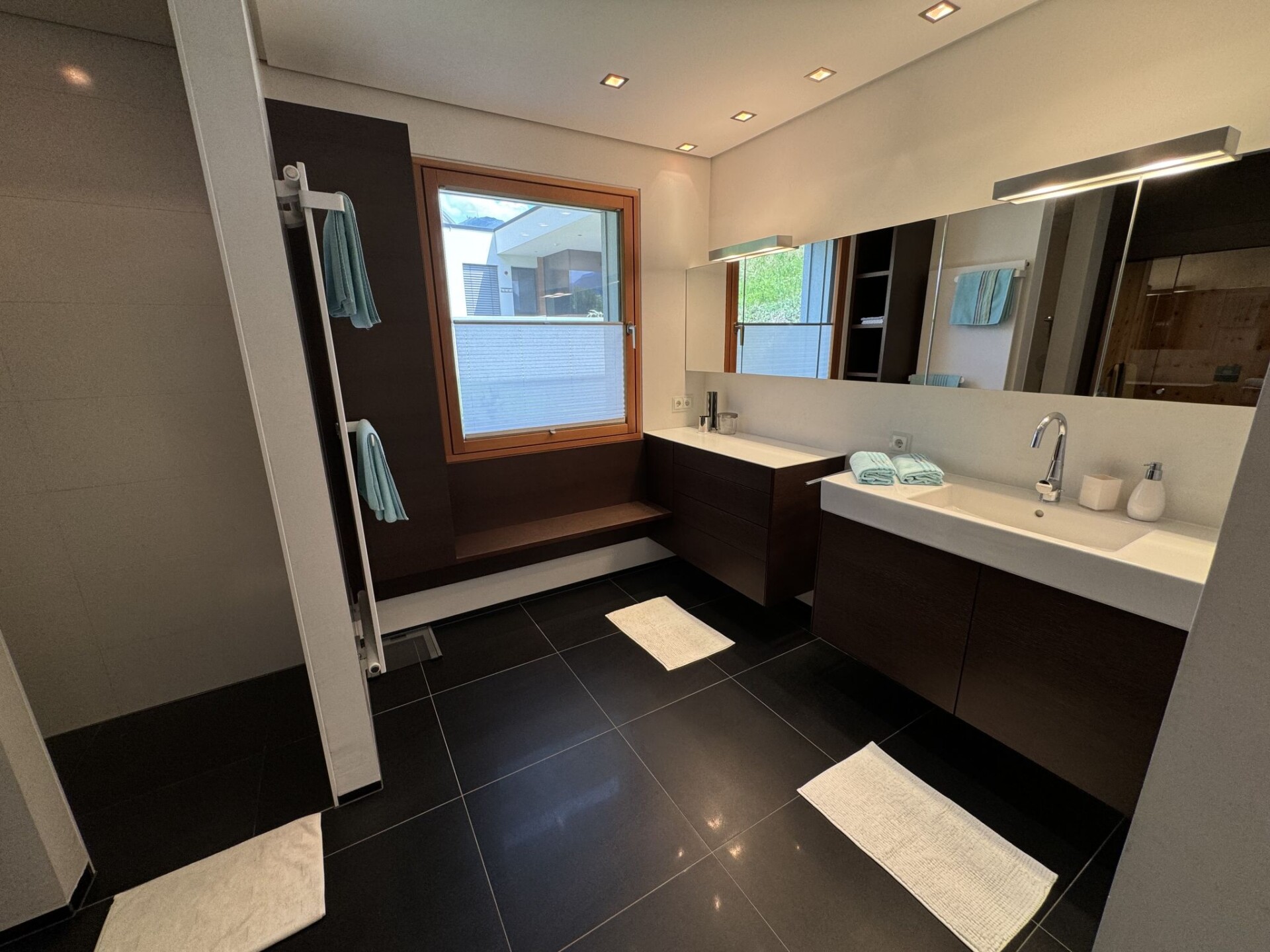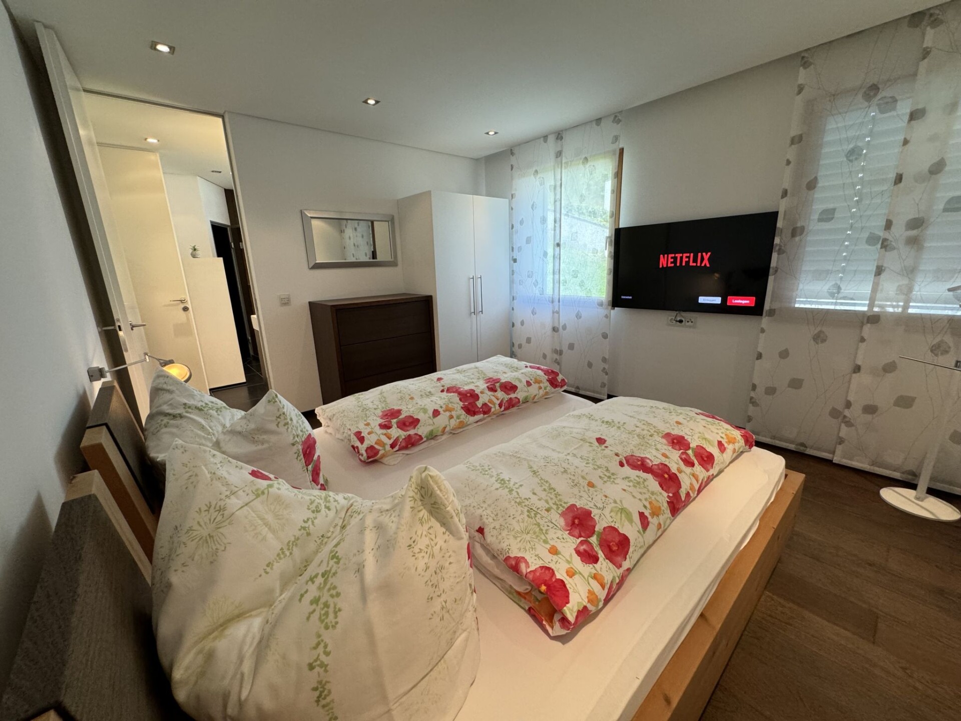 "Villa Renate", villa 4-kamers 130 m2 op 2 verdiepingen. Het objekt is geschikt voor 6 volwassenen. Ruim en licht, luxueus en smaakvol ingericht: souterrain: 1 kamer met 1 2-pers divanbed, 1 2-pers bed, bad/douche/WC en Sat-TV. Bovenverdieping: woon-/eetkamer met Sat-TV (Flatscreen TV). 1 2-pers. kamer met Sat-TV. Groot, open keuken (oven, afwasmachine, 4 keramische glas kookplaten, broodrooster, waterkoker, magnetron, diepvriezer). Douche/WC. Zeer mooi panoramazicht op de bergen en het landschap. Ter beschikking: kinderstoel. Internet (Internet (WiFi), gratis). Geschikt voor families.