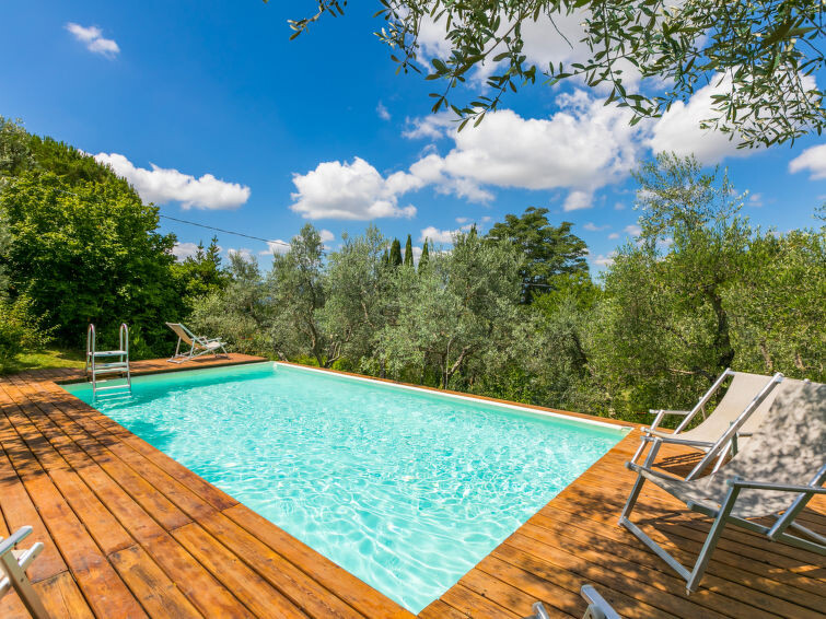 Villa "Vittoria", vrijstaand, gerenoveerd in 2000, omgeven door bomen en weiden. 9 km van het centrum van Reggello, 45 km van het centrum van Firenze, 50 km van het centrum van Arezzo, geïsoleerde, rustige, zonnige ligging, te midden van groen. Voor alleengebruik: tuin 1 ha (omheind), openluchtzwembad (verhoogd) (8 x 4 m, 120 cm diepte, seizoensgebonden beschikbaarheid: 03.Mei. - 04.Okt.). Poolhouse met koelkast en douche, tuinmeubelen, barbecue, parkeerplaats op het terrein. Winkel 1 km, levensmiddelenwinkel 1 km, supermarkt 1 km, bushalte 1.5 km. Golfterrein (18 holes) 28 km, manege 5 km. Attracties in de buurt: Castelfranco di Sopra 7 km, Vallombrosa 22 km, Greve in Chianti 28 km, Outlet The Mall 18 km. Geschikt voor families.