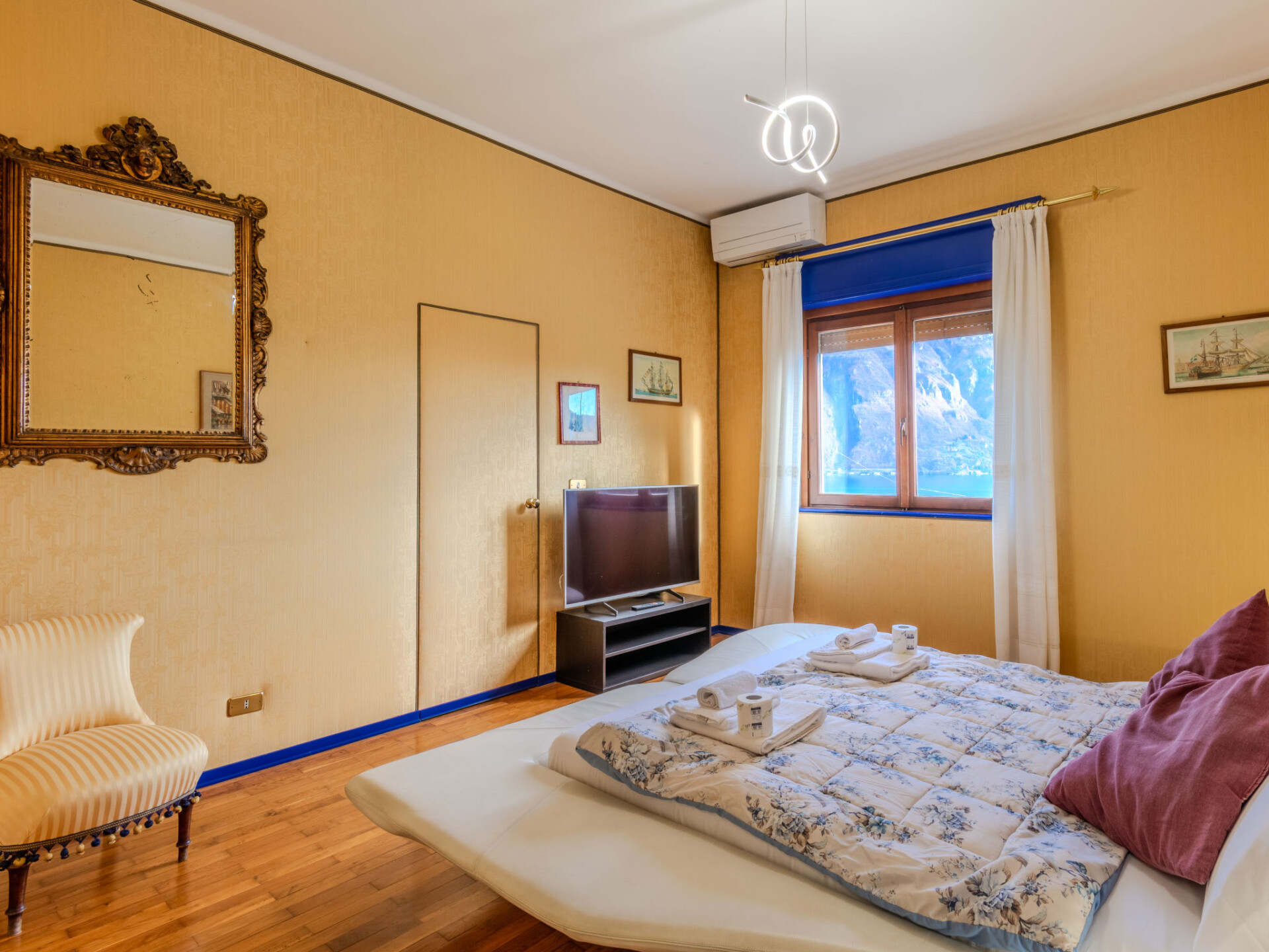 Villa 5-kamers 210 m2 op 3 verdiepingen. Ruim, comfortabel en mooi ingericht: woon-/eetkamer met open haard (alleen decoratie), eettafel en Sat-TV. Uitgang naar het balkon. 1 kamer met Kleedkamer met 1 2-pers bed (160 cm, lengte 190 cm), Sat-TV. Keuken (oven, afwasmachine, 4 kookpitten (vlammen), broodrooster, magnetron, diepvriezer, elektrische koffiemachine) met kleine eettafel. Uitgang naar de tuin. Douche/WC. Souterrain: aparte WC. Bovenverdieping: 1 kamer met 2 bedden. 1 kamer met 1 2-pers bed (160 cm, lengte 190 cm), Sat-TV. 1 kamer met 1 bed. Bad/WC. Gas-verwarming (extra), air-conditioning (extra). Parketvloeren, natuurstenen vloeren. Balkon, terras, zithoek in de tuin. Terrasmeubelen, balkonmeubilair, ligstoelen (5). Mooi uitzicht op het meer. Ter beschikking: wasmachine, strijkijzer, kinderstoel, kinderbed tot 2 jaar. Internet (WiFi, gratis). Parkeerplaats. Niet rokers woning. Maximaal 1 huisdier/hond toegestaan. Privé ingang, rookmelders, brandblusser. IT013250C2JHAW3DNG