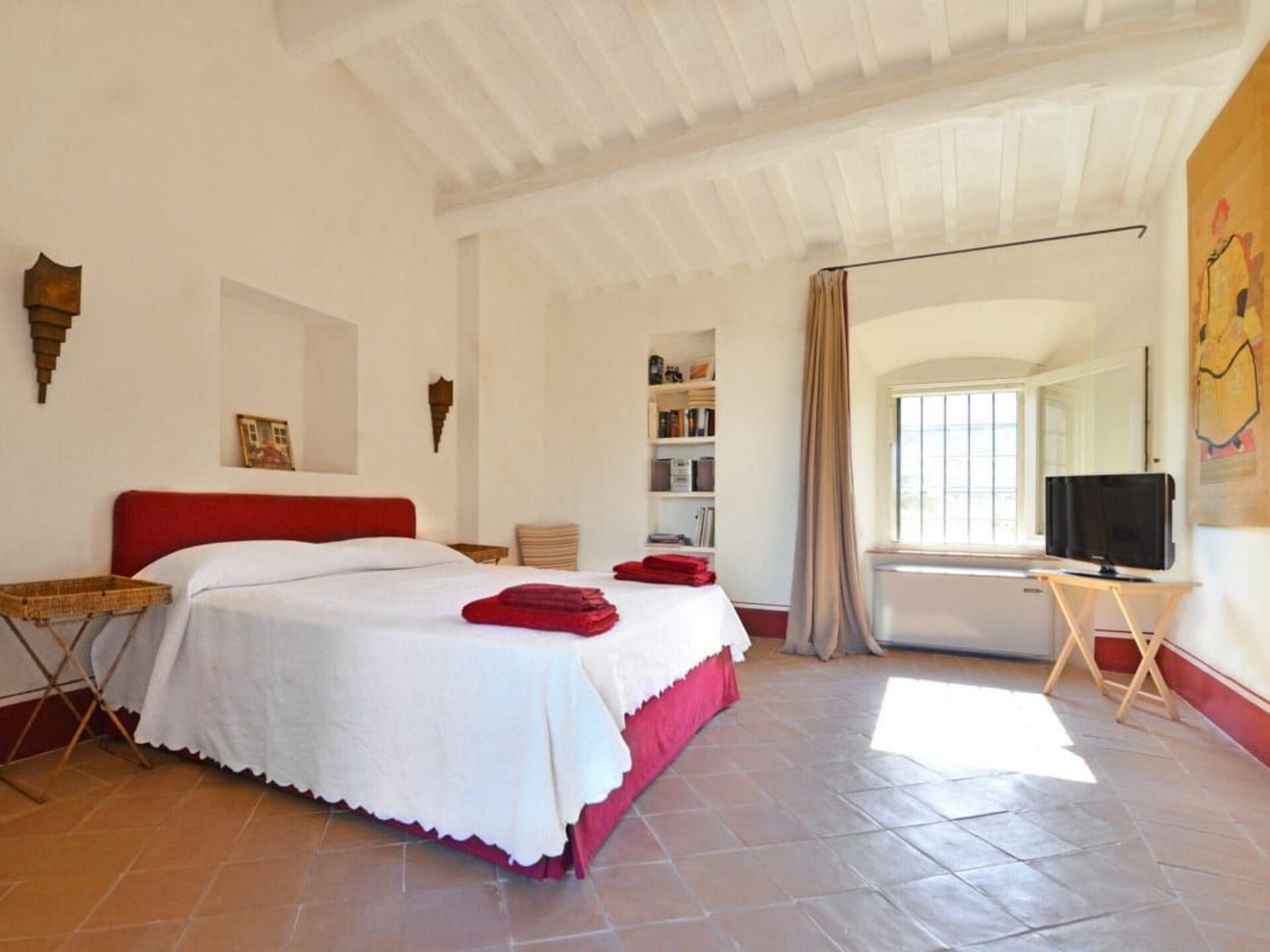The Highlights at a glance- Walking distance to the village and the beach- Park like garden with century-old olive trees- Pool area with pergola lounge- Huge windows for lots of natural light- Chinese Art work throughout the villa gives the interior e special touch The authentic Tuscan villa with protected, original stone walls is located in a short distance to the port “Cala Galera” and the center of Porto Ercole.With its 4 bedrooms and 5 bathrooms it can accommodate up to 8 guests. Step into the elegant and sophisticated interiors of this luxury villa in Porto Ercole, spanning three beautifully designed levels. The ground floor features a spacious double living room and an exquisite dining room, complemented by a well-equipped kitchen perfect for culinary enthusiasts. Adjacent to the kitchen is a cozy single bedroom with an en-suite bathroom, ideal for guests seeking added privacy. A graceful staircase leads you to the first floor, where you’ll find a charming double bedroom complete with an en-suite bathroom. This level also includes another large bedroom that can be configured with either three single beds or one double bed, featuring an en-suite bathroom with a luxurious bathtub. The top floor houses the master suite, boasting an en-suite bathroom and a private terrace that offers stunning panoramic views. All bedrooms are equipped with air conditioning for your comfort.The gardenThe villa's outdoor space is nothing short of exceptional. With a beautifully manicured garden, it invites guests to unwind and bask in the sunshine. Enjoy al fresco dining under the shade of a charming pergola, or relax in one of the several outdoor lounge areas surrounded by a picturesque olive grove. A lovely courtyard and a romantic driveway adorned with creeping vines enhance the villa's allure. The swimming pool area features an elegant wooden deck, providing unforgettable views of the nearby Renaissance fortress.SurroundingsThis luxury villa in Porto Ercole is ideally situated within walking distance of the charming fishing village on the shores of Monte Argentario in Tuscany. An exclusive property with unique character, it offers a perfect balance of seclusion and accessibility — just 5 minutes from the town, yet nestled amidst nature. Enjoy easy access to a variety of restaurants, bars, markets, and the vibrant nightlife of Porto Ercole, all while being enveloped in a tranquil atmosphere with blooming olive trees and shaded pergolas set against the stunning Mediterranean landscape. The only visible structure is the magnificent Renaissance fortress, Forte Filippo. Additionally, the sandy beach of La Feniglia is just a short drive away.Important information- check in after 16.00, check out up to 10.00 - daily cleaning (2 hours from Monday to Friday included)- consumptions are included- bedlinen and towels for the rooms as well as for the pool are provided- pool cleaning is on Monday and Saturday. IT052027B4LOMDH5XE