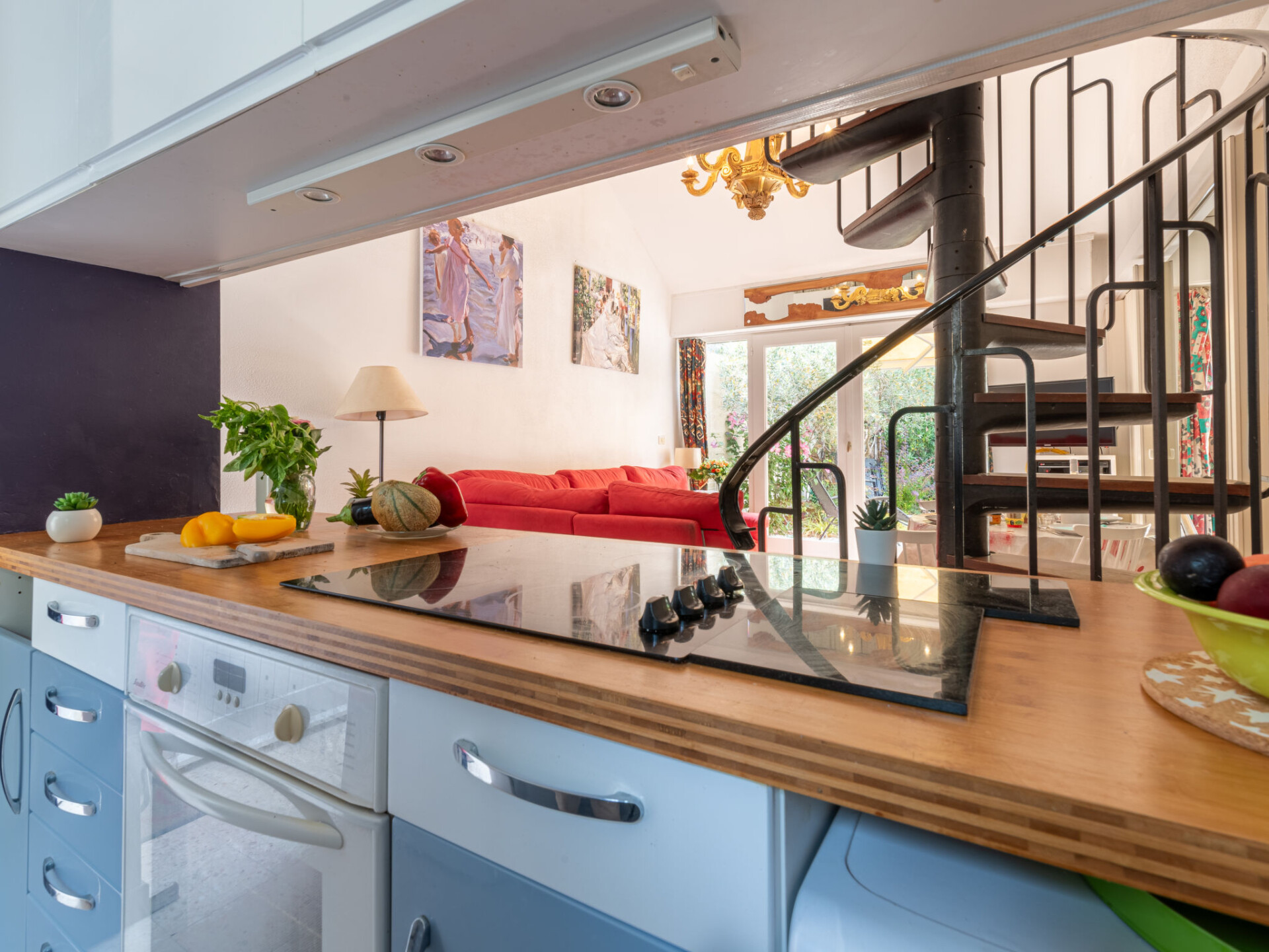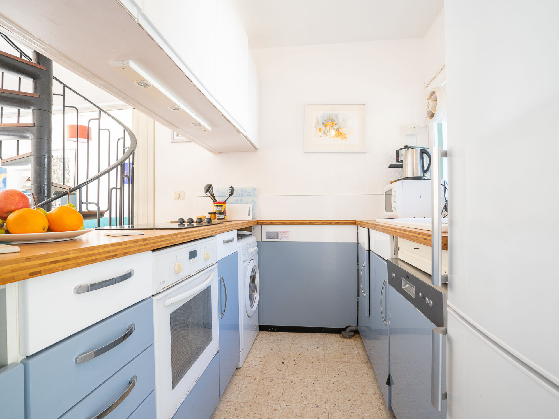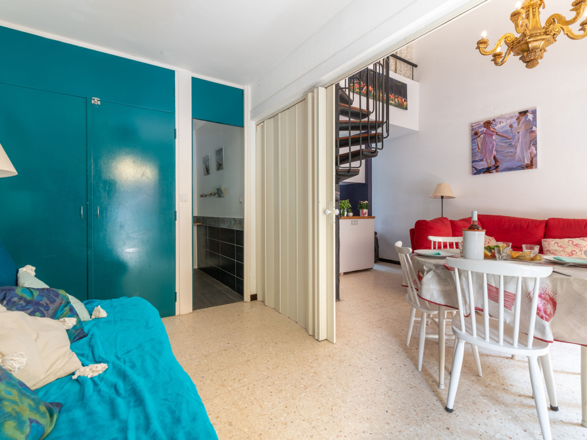 Huis in een rij 3-kamers 55 m2 op 2 verdiepingen. Comfortabel ingericht: woon-/eetkamer met TV (Flatscreen TV). Uitgang naar het terras. 1 kamer met schuifdeur met 1 2-pers divanbed (140 cm, lengte 190 cm). Open keuken (oven, afwasmachine, 4 keramische glas kookplaten, broodrooster, waterkoker, magnetron, elektrische koffiemachine). Douche/WC. Bovenverdieping: (wenteltrap) galerij met 1 2-pers bed (140 cm, lengte 190 cm), air-conditioning. 1 kinderkamer met afgeschuinde daken met 2 bedden (90 cm, lengte 190 cm). Aparte WC. Terras 35 m2, op het zuidwesten gelegen. Terrasmeubelen. Ter beschikking: wasmachine. Internet (WiFi, gratis). Parkeerplaats bij het huis. Maximaal 1 huisdier/hond toegestaan. Rookmelders. In plaats van een afgesloten slaapkamer bevinden sommige slaapgedeeltes zich in een open ruimte (galerij, nis, etc.). 30 37 769 097 314