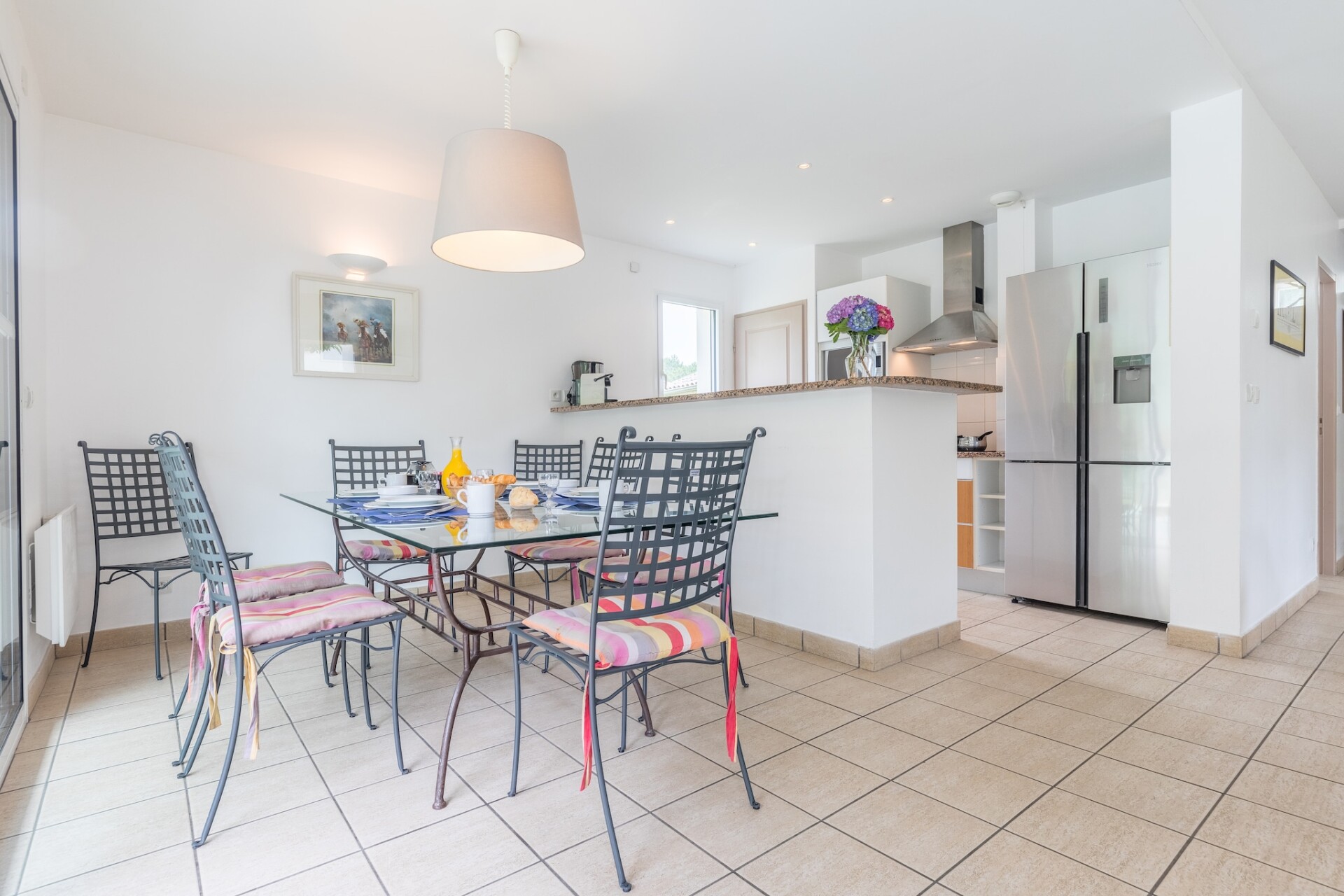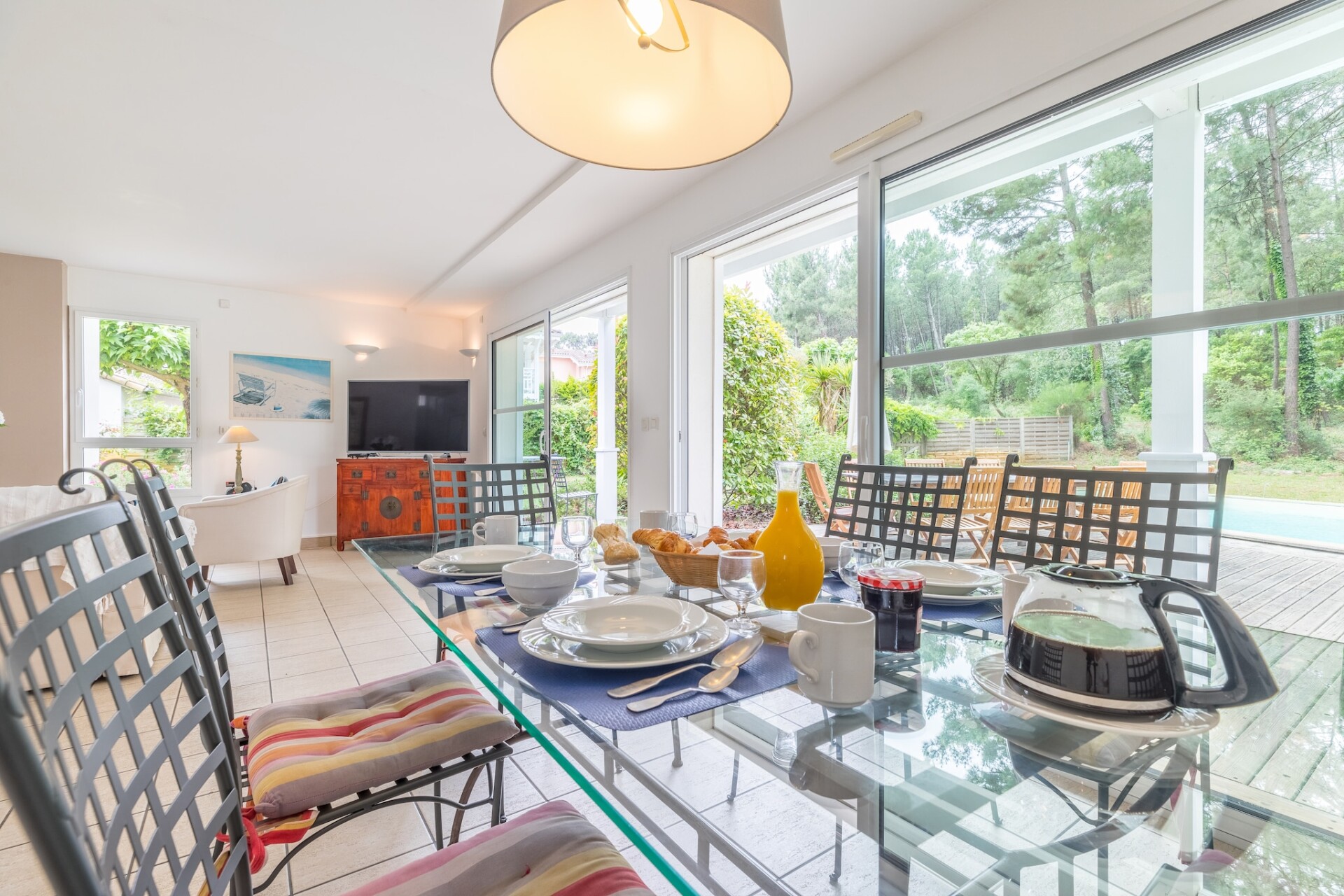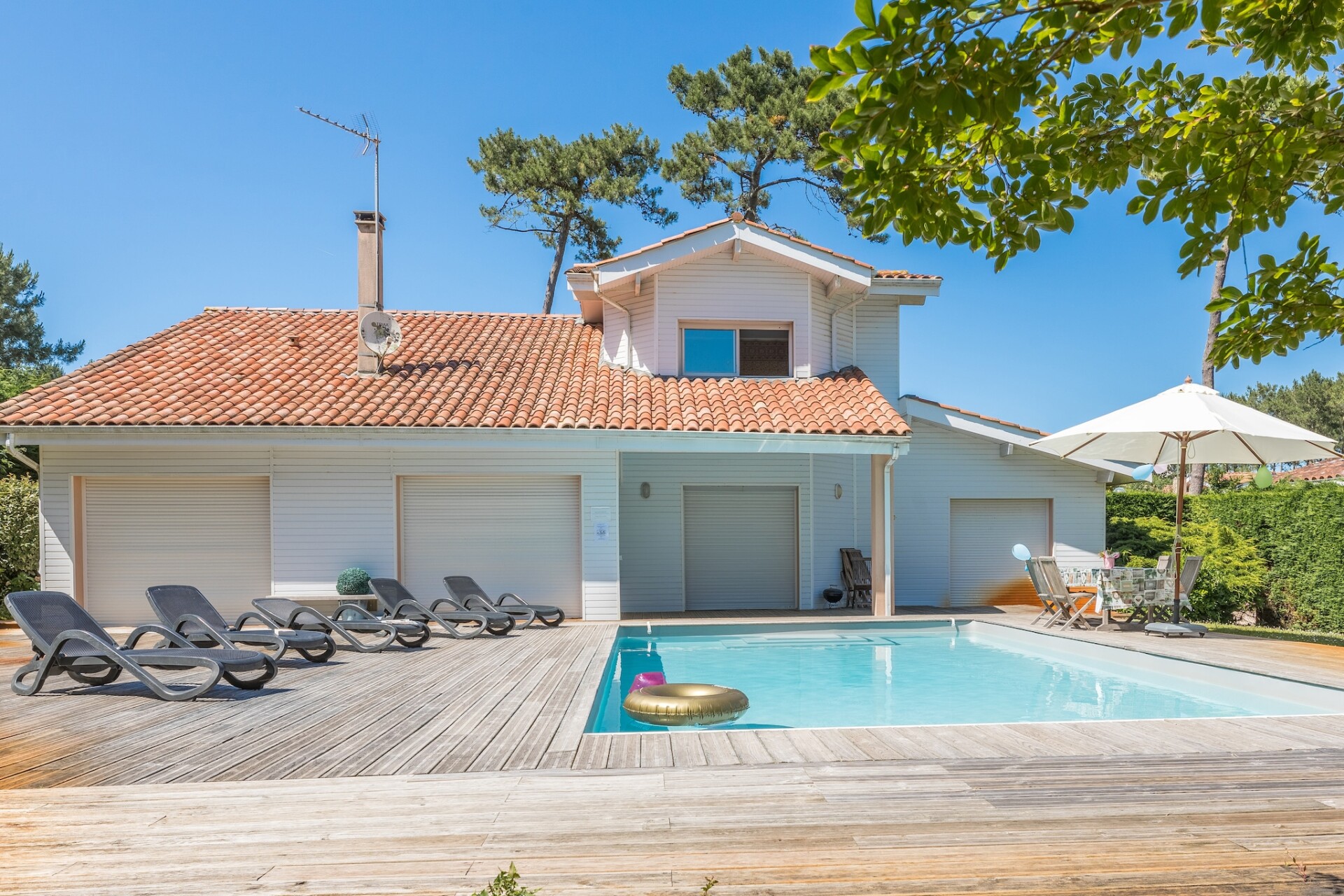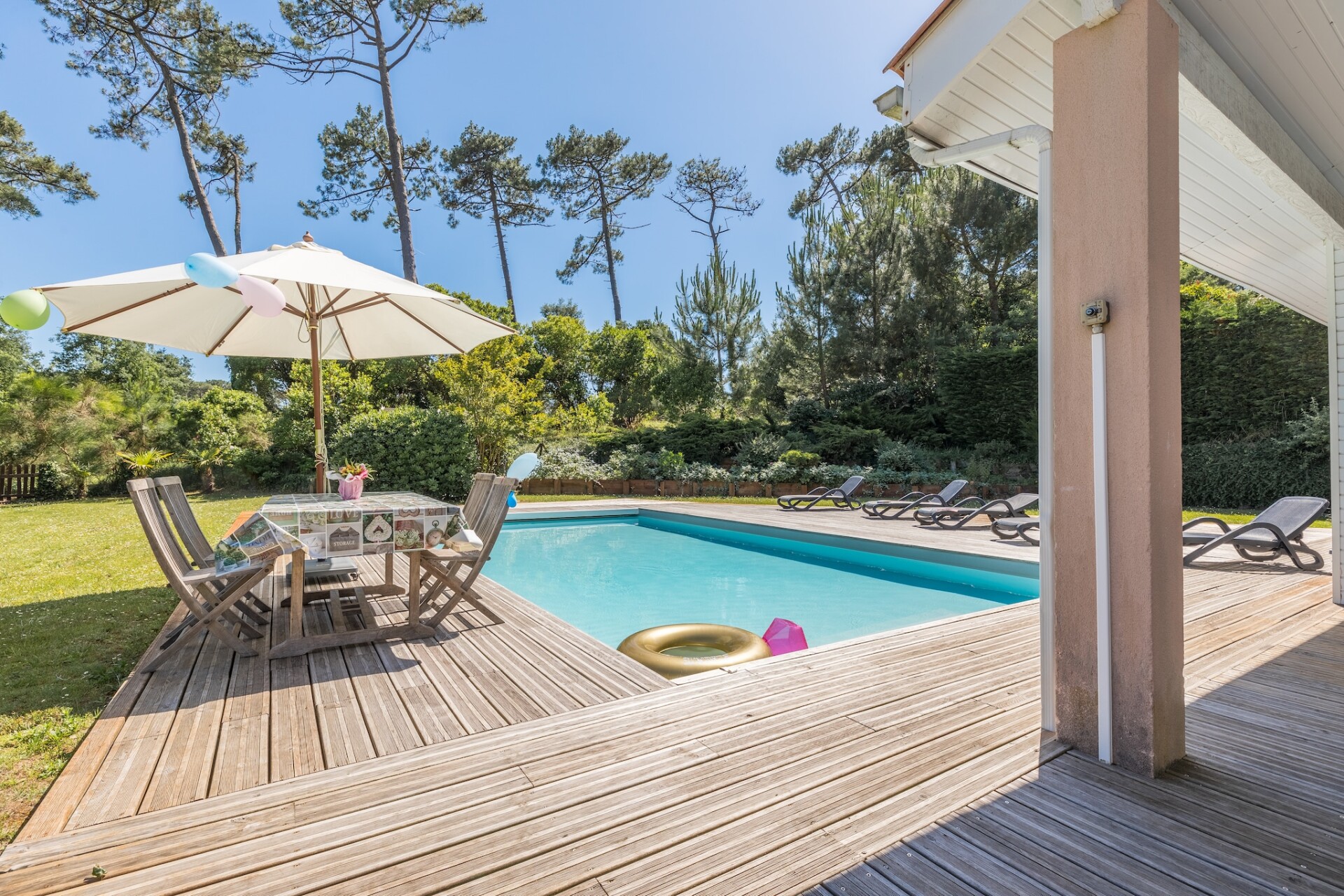 Ontsnap naar deze zonovergoten villa met 5 slaapkamers, gelegen in de dennenbossen van Moliets, op slechts een steenworp afstand van de Atlantische kust. Deze woning van 135-150 m², ontworpen in klassieke Landes-stijl, combineert rustieke charme met modern comfort. Geniet van maaltijden bereid in een volledig uitgeruste open keuken, ontspan bij de open haard of kom tot rust op het terras met uitzicht op uw privézwembad van 10 x 5 m en de weelderige tuin. Met ruimte voor maximaal 12 gasten is deze villa perfect voor familiereünies of groepsretraites. Let op: de inrichting kan enigszins variëren, maar comfort is altijd gegarandeerd.