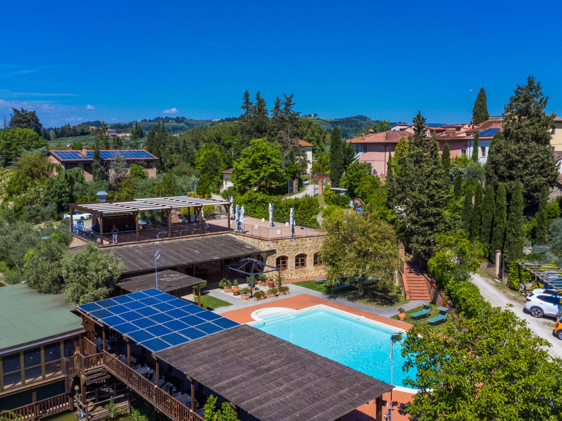 Landbouwbedrijfje "Cameli", van 3 verdiepingen, omgeven door velden en wijngaarden. 6 appartementen in de woning. 5 km van het centrum van Certaldo, 35 km van het centrum van Firenze, 13 km van het centrum van S. Gimignano, zonnige ligging tegen een helling. Voor medegebruik: terrein 150.000 m2 met bomen, boomgaard, vijver, openluchtzwembad (14 x 8 m, 110 - 250 cm diepte, seizoensgebonden beschikbaarheid: 11.Apr. - 31.Okt.). Prieel, tuinmeubelen, barbecue. In het huis: restaurant, ontbijtruimte. Ontbijt op verzoek (extra). 600 m lange rommelige toegangsweg. Parkeerplaats op het terrein. Supermarkt 5 km, bushalte 600 m. Baby uitrusting (incl.). Geschikt voor evenementen. Lokale verkoop van streekproducten. De eigenaar woont op hetzelfde terrein. De woningen kunnen onderling van inrichting verschillen.