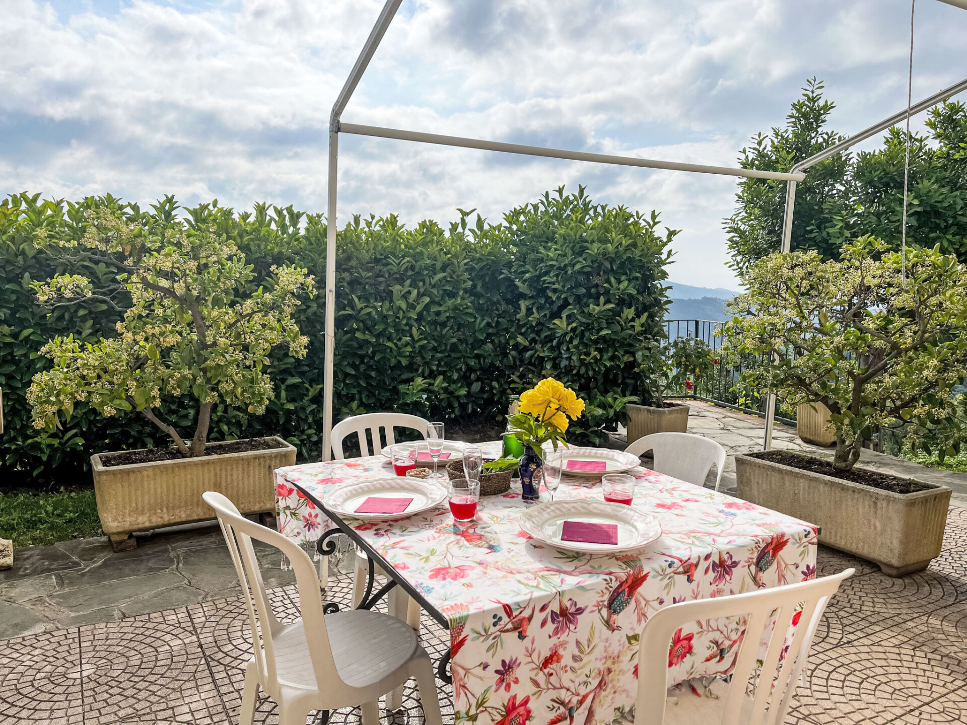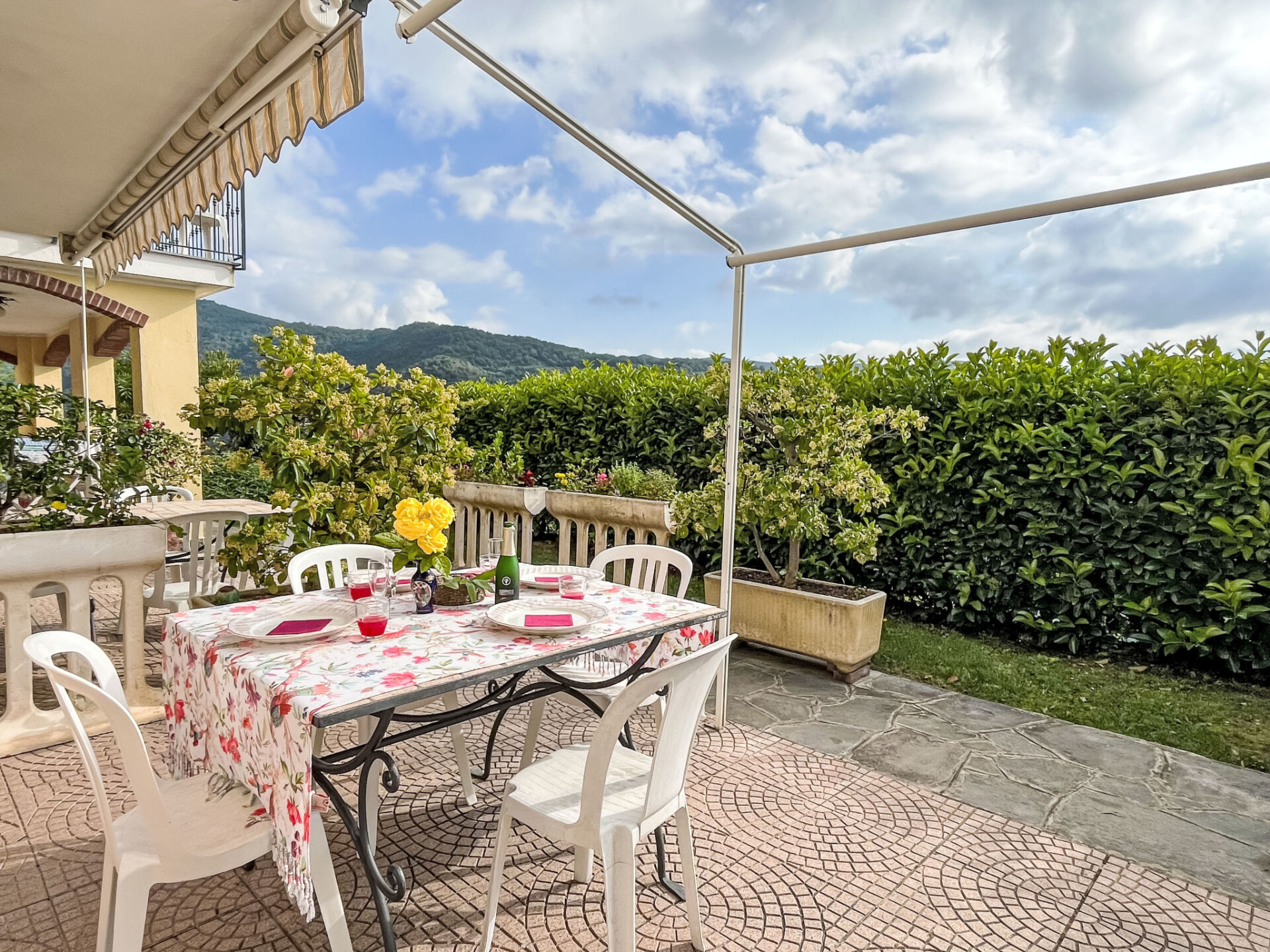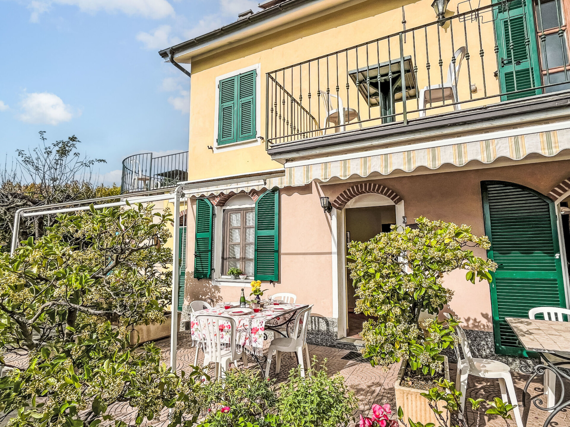 Mooi, gezellig agriturismo "San Giuseppe", 400 m boven zeeniveau, van 2 verdiepingen, vrijstaand, omgeven door bomen en weiden. 7 appartementen in de woning. Boven Valloria, 100 m van het centrum van Valloria, 14 km van het centrum van Imperia, 5 km van het centrum van Dolcedo, geïsoleerde, zonnige, verhoogde ligging op een heuvel, 14 km van zee, 4 km van het meer, te midden van groen. Voor medegebruik: terrein 1.000 m2, groot, verzorgde tuin op verschillende niveaus (niet omheind) met bloemen en bomen, ligweide, openluchtzwembad (6 x 5 m, seizoensgebonden beschikbaarheid: 01.Apr. - 26.Nov.) met trap. Buitendouche, hot tub, poolhouse met fornuis, tennisbaan, verlichte tennisbaan, tafeltennis, patio, terras, tuinmeubelen, barbecue, stookplaats, aangelegde binnentuin onderhoud zwembad door de eigenaar/tuinman. In het complex: restaurant, ontbijtruimte, salon, Internet (WiFi), massage, hot tub (extra). Tafeltennis (alles incl.), tafelvoetbal, winkel, bergruimte voor fietsen, zonneterras, wasmachine, fietsverhuur. Beschikbaar: fietsen (4), kinderfietsen (1). Broodjesservice, drankjesservice, ontbijt en half pension op verzoek (extra). Boodschappenpakket mogelijk bij aankomst. Berging beschikbaar. Luchthaventransfer (extra). 2.5 km lange zeer rommelige, smalle toegangsweg tot aan het huis. 100 m trappenweg (64 treden) naar het huis. Parkeerplaats, openbare parkeerplaatsen 100 m. Winkel 4 km, levensmiddelenwinkel 4 km, supermarkt 14 km, winkelcentrum 14 km, restaurant, bar 200 m, bakkerij 4 km, internet cafe, fietsverhuur, bushalte 200 m, treinstation "Imperia Oneglia" 19 km, zandstrand "Imperia/Porto Maurizio" 14 km, meer (zwemmen) "Laghetti di Lecchiore" 2 km. Jachthaven 19 km, tennis 200 m, manege 7 km, wandelroutes 10 m vanaf het huis, kinderspeelplaats 4 km. Attracties in de buurt: E-Mountain-bikes 100 m, 160 bemalte Türen im Dorf 100 m, Bussana Vecchio Erdbebendorf 25 km, Triora Hexendorf 40 km, Finale Ligure Mountainbike Paradies 60 km. Wandelgebied Monte Faudo 10 km, Laghetti di Lecchiore (Wanderweg) 4 km. Auto noodzakelijk. Baby uitrusting (incl.). Groepen jongeren uitsluitend op aanvraag. Geschikt voor evenementen. Het is mogelijk een kookcursus te boeken. Op aanvraag kan een transfer vanaf de luchthaven naar de vakantiewoning geregeld worden. Lokale verkoop van streekproducten. Laden en lossen van de baggage is mogelijk bij het huis.