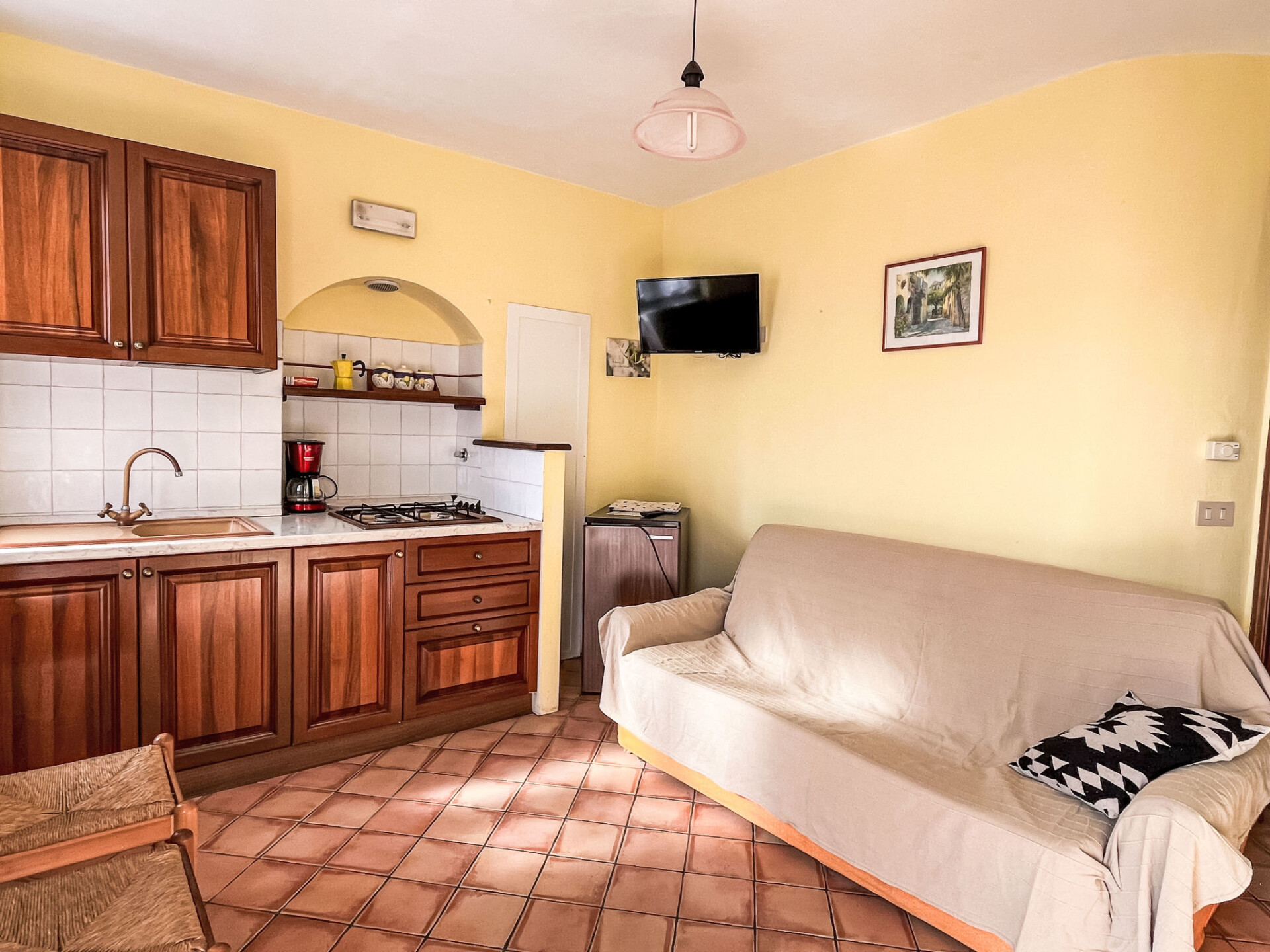 "Viola (VLO203)", appartement 2-kamers 30 m2, op de begane grond. Doelmatig ingericht: kleine woon-/slaapkamer met 1 2-pers divanbed (160 cm), eettafel en Sat-TV. Uitgang naar het terras. 1 kamer met 1 2-pers bed (160 cm), douche/WC. Open keuken (4 kookpitten (vlammen), broodrooster, waterkoker, elektrische koffiemachine). Gas-verwarming. Terras 15 m2, op het zuiden gelegen. Terrasmeubelen. Mooi panoramazicht op zee, de bergen en het dal. Ter beschikking: klamboe, kinderstoel, kinderbed, haardroger. Internet (Internet (WiFi), gratis). Privé ingang. IT008047B5OELRTOWQ