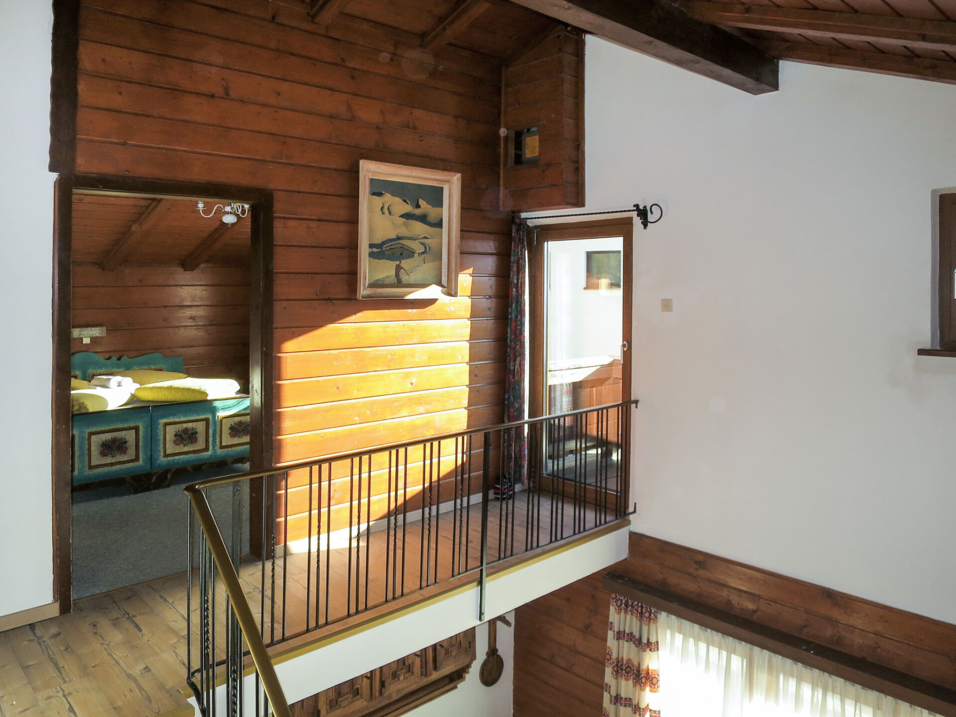 "Waldruh", huis 4-kamers 120 m2 op 2 verdiepingen. Smaakvol en met veel hout ingericht: woon-/eetkamer met eettafel en Sat-TV. 1 2-pers. kamer. Open keuken (oven, afwasmachine, 4 keramische glas kookplaten, broodrooster, waterkoker, magnetron, elektrische koffiemachine). Bad/WC, Sauna. Elektrische verwarming. Bovenverdieping: 1 2-pers. kamer. 1 kamer met 1 2-pers bed. Open galerij met 1 divanbed. Uitgang naar het balkon. Douche/WC. Olie-verwarming. Vloerbedekking. Groot balkon, terras overdekt. Terrasmeubelen, barbecue (verrijdbaar), ligstoelen (2). Ter beschikking: kinderstoel, kinderbed. Internet (WiFi, gratis). Rookvrij huis. Maximaal 2 huisdieren/honden toegestaan. In plaats van een afgesloten slaapkamer bevinden sommige slaapgedeeltes zich in een open ruimte (galerij, nis, etc.).