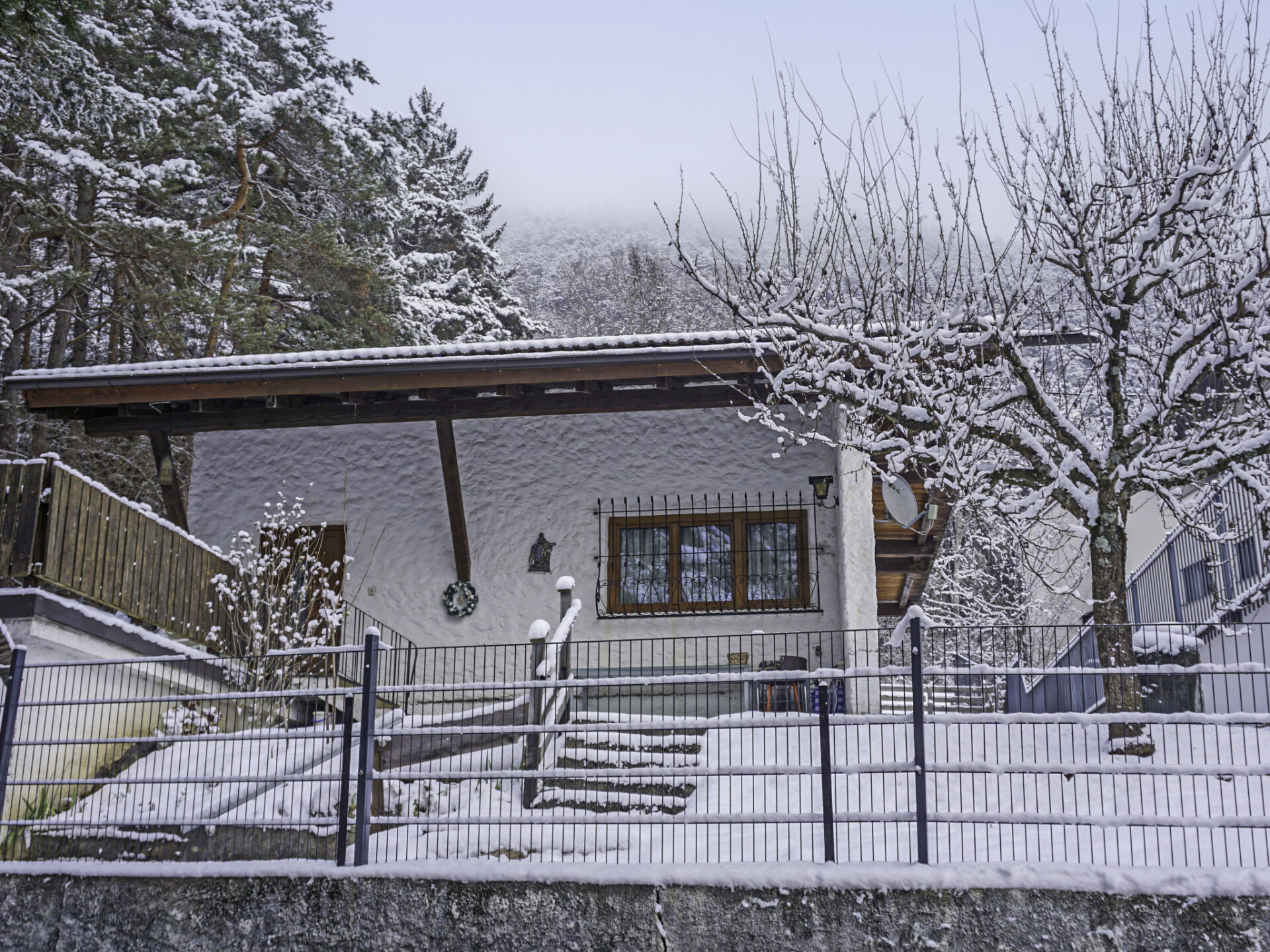 Huis "Waldruh". In de wijk Bairbach, 5 km van het centrum van Telfs, 8.5 km van het centrum van Seefeld in Tirol, tegen een helling, direct aan de bosrand, aan een doodlopende weg. Voor alleengebruik: terrein 350 m2 met weide. 450 m lange smalle toegangsweg. In de winter sneeuwkettingen aanbevolen. Trappenweg (14 treden) naar het huis. Parkeerplaats op 20 m eigen garage. Supermarkt 3 km, restaurant 600 m, bushalte "Bairbach" 500 m, treinstation "Telfs-Pfaffenhofen" 7.5 km. Golfterrein (18 holes) 6 km, skilift 5.5 km, skibushalte 500 m, langlaufloipe 5.5 km. Attracties in de buurt: Innsbruck 33 km, Garmisch-Partenkirchen 45 km. Bekende skigebieden kunnen gemakkelijk worden bereikt: Seefeld/Gschwandkopf 6 km. Wandelgebied Seefelder Plateau 6 km. Gratis skibus. Gratis skibus naar het skigebied Seefeld.