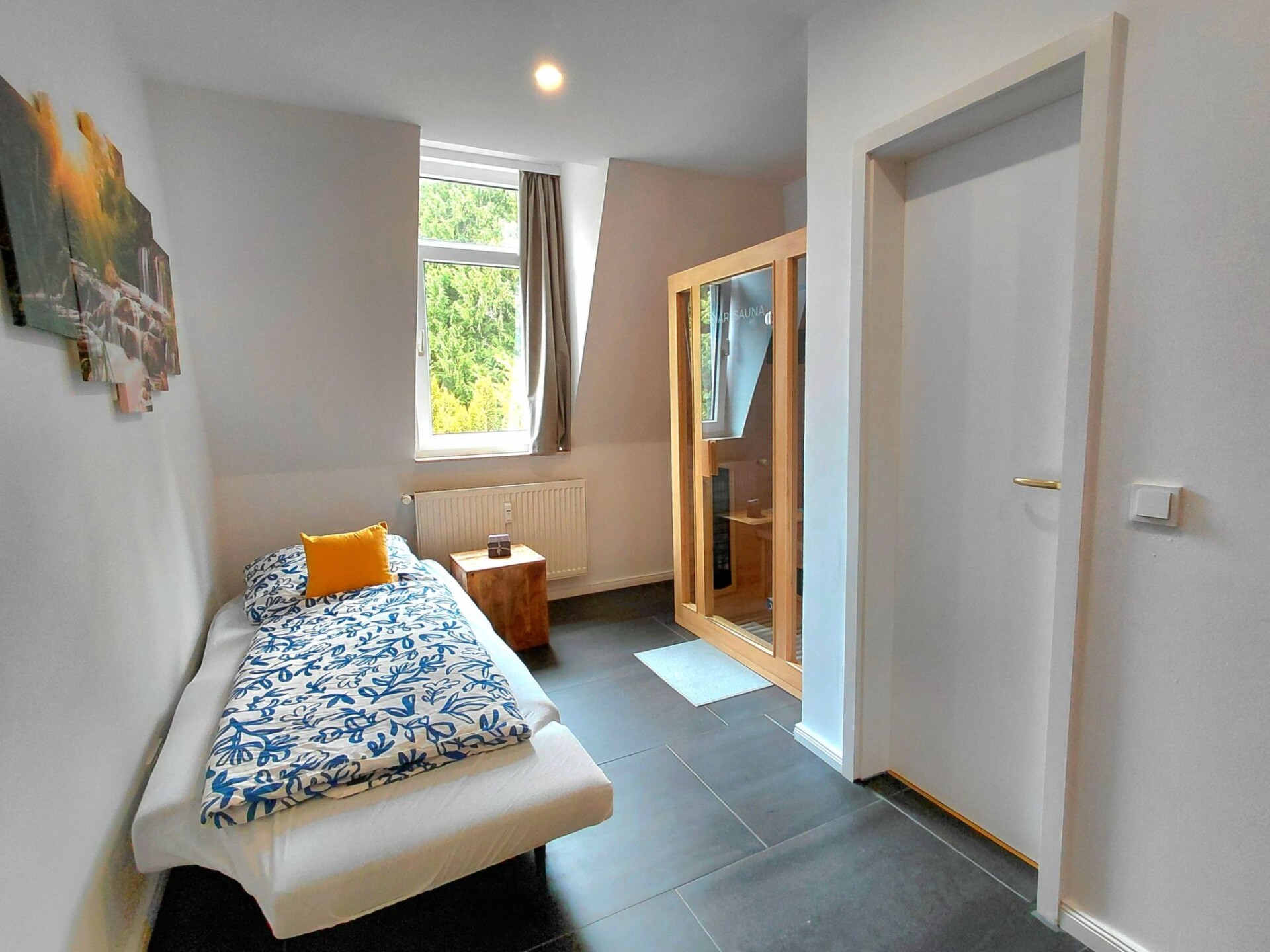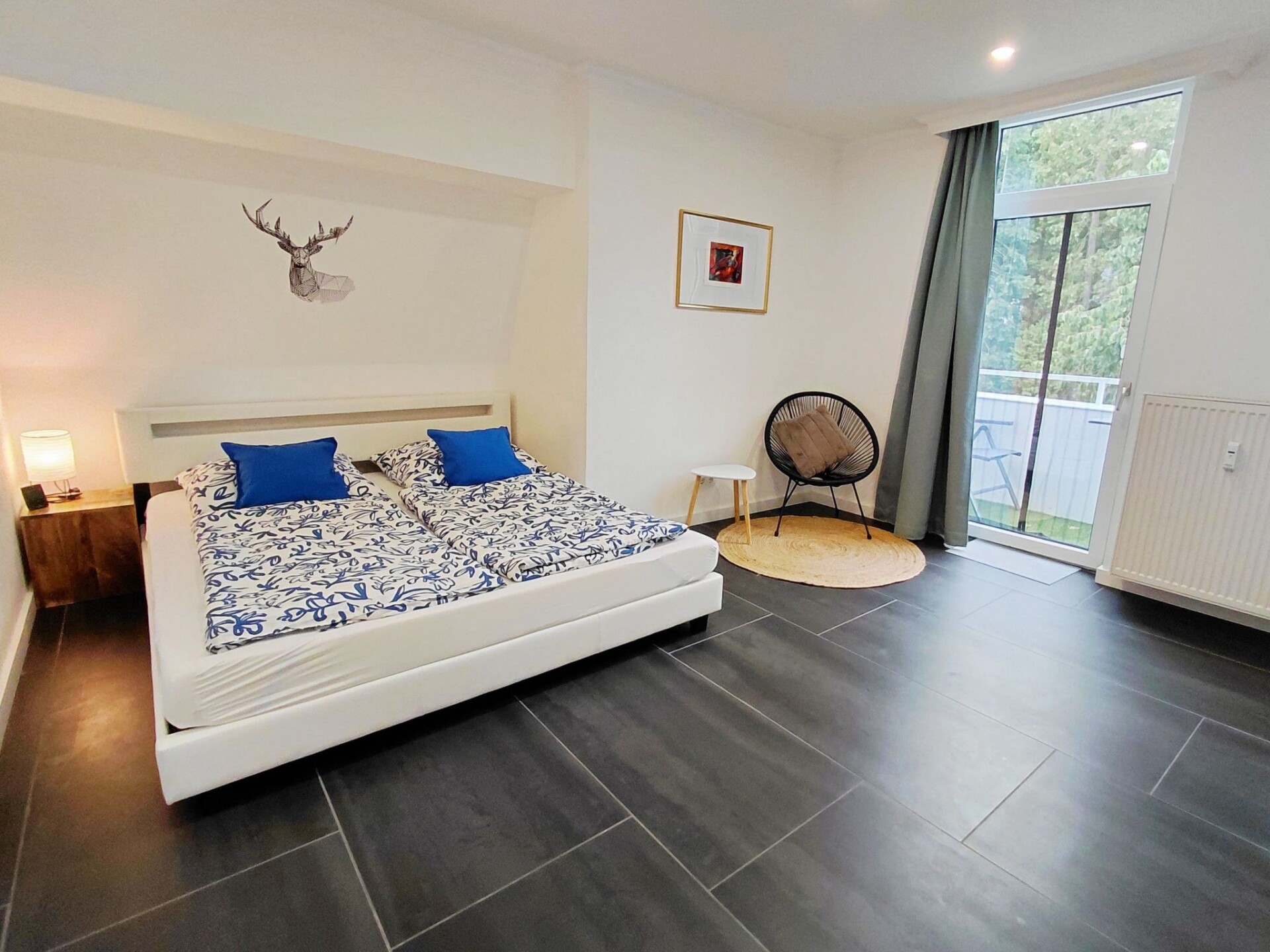 Discover the idyllic tranquillity and unique charm of the Harz Mountains with our gem in Bad Harzburg. Our holiday flat, steeped in history and comfortably accommodating up to 4 people, proves to be your perfect getaway. Whether you're looking for an active adventure or simply want to relax surrounded by nature, this place guarantees unforgettable days in one of Germany's most charming regions. Inside, the flat boasts two cosy bedrooms, each with its own bathroom, making it ideal for families or small groups. Complete blackout facilities ensure a restful night's sleep. A special feature is the additional room with infrared sauna and armchairs that can be converted into a sofa bed, including the third bathroom with bathtub. The light-flooded rooms open out onto two balconies, from which you can enjoy a magnificent view over Bad Harzburg. Further facilities include a traditional and capsule coffee machine as well as a washing machine and tumble dryer. Outside, two inviting balconies invite you to linger, whether to start the day with a morning coffee or end it with a glass of wine. These areas offer you an excellent opportunity to enjoy the fresh mountain air and the tranquillity of the surroundings to the full. The holiday flat is situated on the first floor of a picturesque historic building and promises a great base for exploring the mountain landscape of the Harz. A starting point for mountain or cable car rides just 500 metres away promises fun for all ages. The proximity to the centre of Bad Harzburg (700 metres) and a grocery store 950 metres away offer convenient access to local amenities and are ideal for self-catering guests. Spend your holiday in our holiday flat in Bad Harzburg and find the perfect blend of historical flair and the unspoilt nature of the Harz Mountains. Enjoy the proximity to exciting activities and the tranquillity that offers relaxation, so you can organise your stay as you wish. Experience how easy it can be to get away from it all and fall in love with the beauty and diversity of this region. Basic information - Pets allowed: none - Type of property: holiday apartment - is located in: Residence - type of building: Multiple-family dwelling - Floor on which the object can be found: 2. floor - Total number of floors in the building above the ground floor: 3 - Year of the last complete renovation : 2022 - not observable from the street - no group bookings - no youth groups - non-smoking - Number of bedrooms: 2 - Number of bathrooms: 3 Top features - WiFi - air conditioning: no - heating: Everywhere - underfloor heating: no - balcony - Total of private car parking spaces: None - distance to free communal parking spaces: 1 m Sleeping Bedroom 1 Double bed (1.80 m wide) Child/Baby bed bedroom is dimmable Bedroom 2 Double bed (1.60 m wide) bedroom is dimmable Bathrooms Bathroom 1 Shower Washbasin Toilet Heated towel rail Hairdryer Bathroom 2 Shower Washbasin Toilet Heated towel rail Hairdryer Bathroom 3 Bathtub Washbasin Toilet Heated towel rail Wellness - sauna - ㄴ for sole use - infrafred sauna - ㄴ for sole use Cooking/Living - coffee machine: coffee machine, capsule coffee machine - fridge/freezer: deep freezer, fridge - stove: ceramic hob - oven - toaster - microwave - electric kettle - dishtowels - size of kitchen: 10 m² - number of dining tables: 1 - number of seats: 6 - number of living rooms: 1 Entertainment - TV: TV - smart tv - radio - party games for adults For children - high chair Utility - washing machine: For sole use in the object - Clothes dryer: For sole use in the object - clothes drying rack - iron - vaccum cleaner - cleaning products - fire extinguisher - smoke alarm Accessibility - bathtub with grab rails Sustainability - Waste recycling - Bio garbage available - paper recycling available - plastic recycling available - Water saving appliances - water-saving shower - LED lighting (everywhere) Outside area - outdoor furniture - grilling not allowed Surroundings - view: mountain - directly at the edge of the wood - Nearest town centre: 700 m - Grocery store: 950 m - going out: 600 m - restaurant: 700 m - train station: 1,6 km - airport: 88,0 km - motorway: 7,0 km - distance public transport: 350 m - playground: 200 m - public swimming pool: 400 m - golf course: 750 m - bicycle hire: 3,0 km - cycle path (tourist): 10 m - hiking trail: 500 m - mountain rail: 500 m Distinctive features - Heritage-protected - historical building.