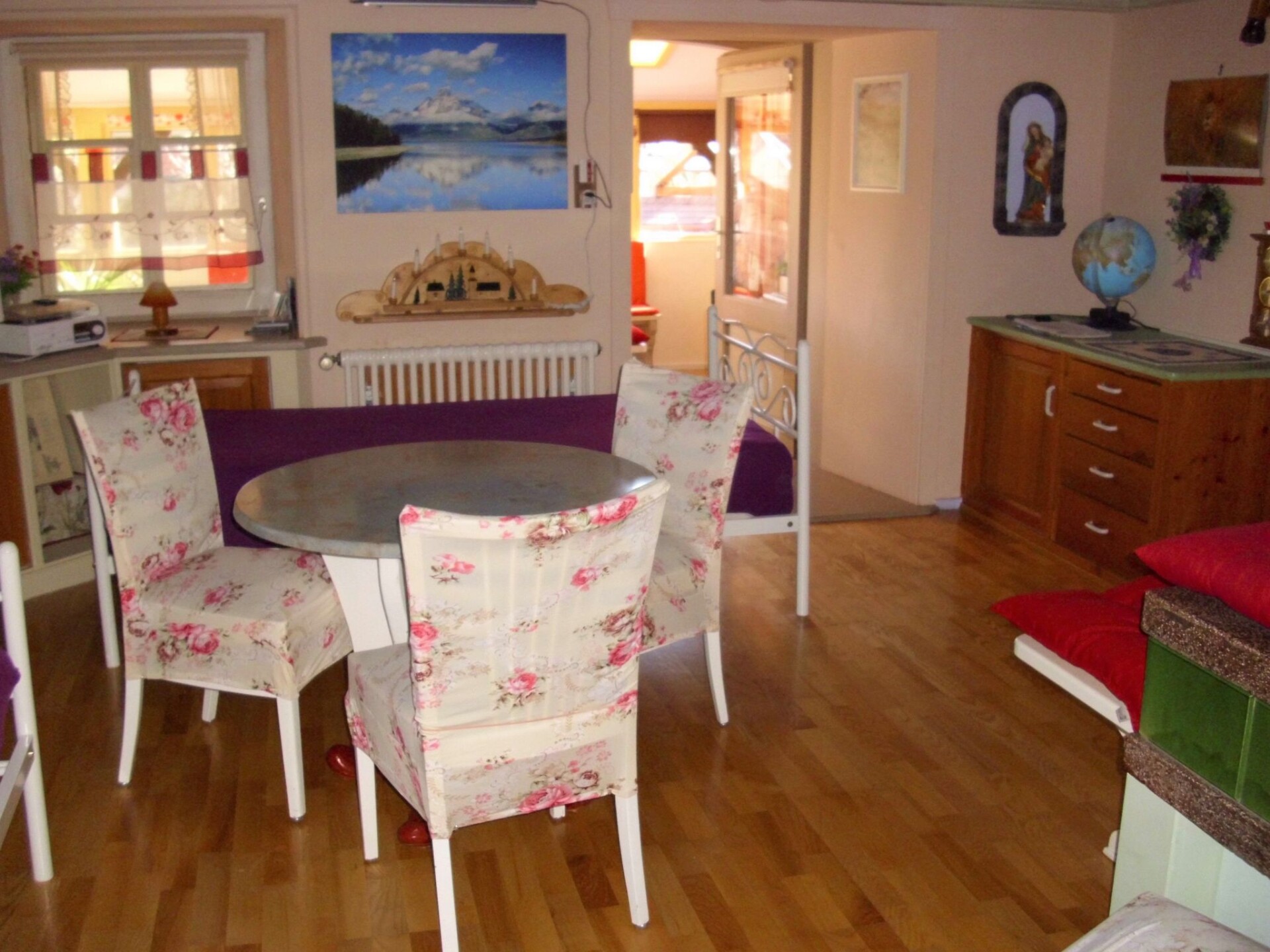 Discover the romance and charm of our holiday flat, which is conveniently located on the ground floor/parterre and is fully accessible at ground level. This idyllic accommodation is the perfect retreat for those seeking peace and quiet without missing out on the comfort of a lovingly furnished home.Inside, you will find a cosy bedroom with a double bed, while the heated conservatory has two additional single beds. The spacious kitchen is equipped with a gas hob, electric oven, toaster, kettle, fridge and a small freezer. A tiled stove provides additional cosiness - particularly popular in the cooler months. In the living room you will find another tiled stove, a comfortable couch, satellite TV, hi-fi system, DVD and VHS recorder as well as a record player, complemented by a selection of records, books, MCs, CDs and DVDs on the 1st floor.The outside area has direct access to a spacious garden, where there is also a heated garden shed with two additional beds, satellite TV and DVD on request. Enjoy the peace and privacy with your own entrance, while the landlord lives discreetly in the property.The surrounding area invites you to enjoy nature and the peace and quiet outside the city. Whether you want to relax in the garden or explore the local area, this is the ideal base for your endeavours.Let yourself be enchanted by this exquisite holiday flat, which not only impresses with its facilities and location, but also with its unique feeling of warmth and security. Perfect for anyone who wants to get away from it all and relax in picturesque surroundings.