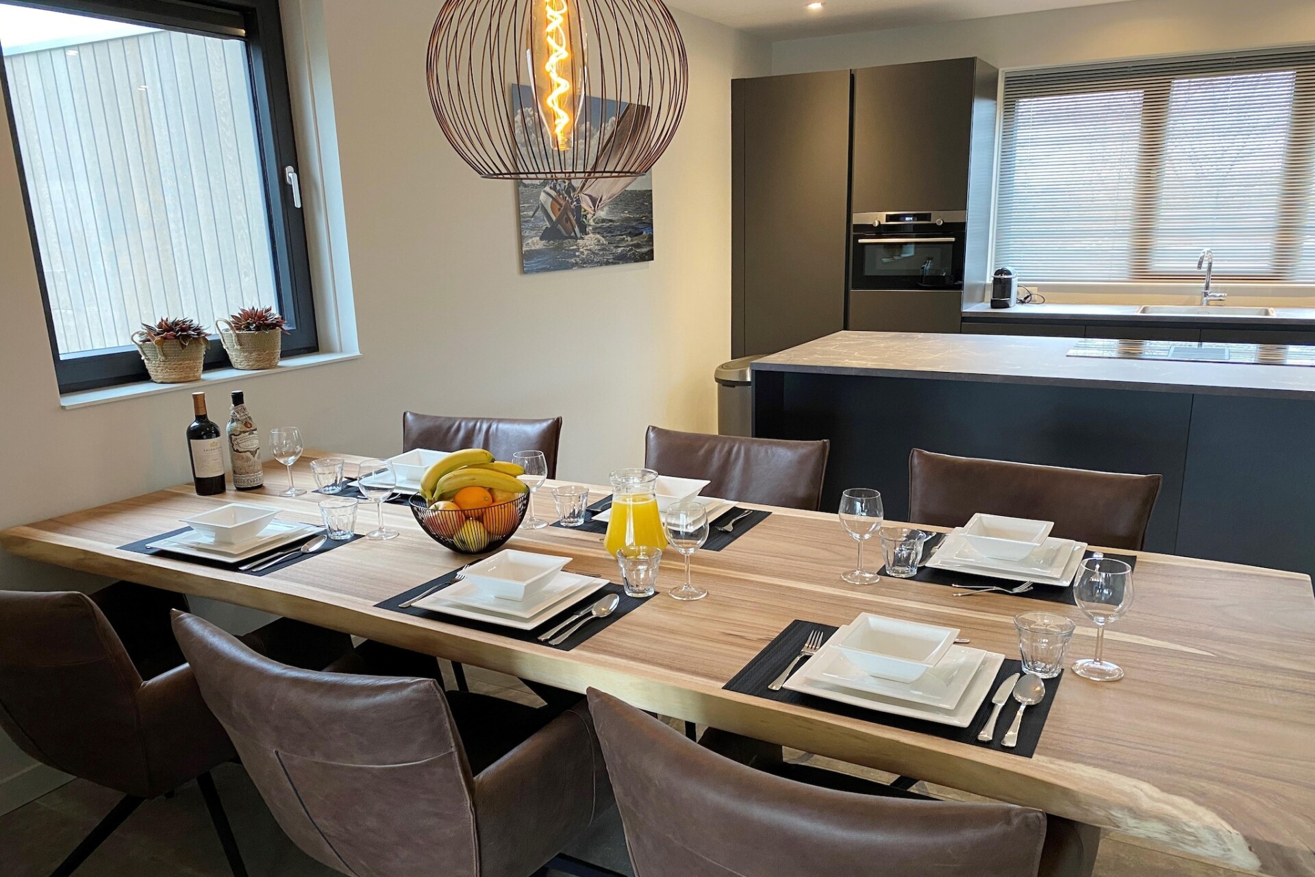 Stap in de rust van deze luxe vrijstaande watervilla, ontworpen voor ontspanning en stijl. Perfect voor 4 volwassenen en 2 kinderen. De villa beschikt over een ruime woonkamer met gezellige zithoek, een smart-tv en een grote eettafel – ideaal om samen te eten en herinneringen te delen. De strakke, open keuken is volledig uitgerust met hoogwaardige apparatuur, waaronder een Nespresso-apparaat, oven en inductiekookplaat. Ramen van vloer tot plafond vullen de ruimte met licht en bieden directe toegang tot uw privéterras en tuin met uitzicht op het water – perfect voor zonovergoten ochtenden of wijnrijke avonden.