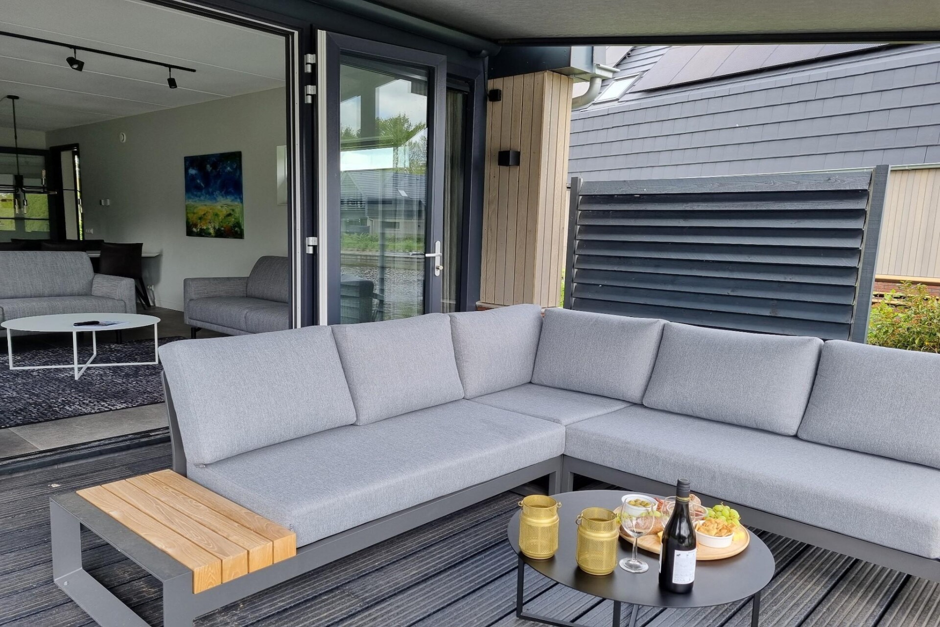 Trakteer uzelf op een onvergetelijk verblijf in deze prachtige vrijstaande watervilla, ideaal voor 6 volwassenen en 2 kinderen. Gelegen op een kleinschalig, exclusief villapark, biedt deze ruime retraite een stijlvolle woonkamer met luxe stoelen, een smart-tv en een grote eettafel, perfect voor gezamenlijke maaltijden en een gezellige avond. De open keuken is volledig uitgerust met luxe apparatuur, waaronder een inductiekookplaat, een Nespresso-apparaat en een vaatwasser, waardoor het bereiden van maaltijden een plezier wordt. Brede glazen deuren verbinden de woonkamer met het terras, waar het water glinstert op slechts een steenworp afstand van uw privésteiger.