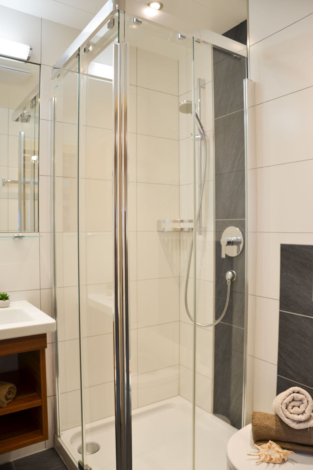"Wechner", appartement 3-kamers 50 m2, op de begane grond. Zeer smaakvol en gezellig ingericht: doorgangskamer met 1 2-pers bed. 1 2-pers. kamer met douche/WC. Woonkeuken (oven, afwasmachine, 4 keramische glas kookplaten, broodrooster, waterkoker, magnetron, elektrische koffiemachine, pads voor de koffiemachine (Nespresso) extra) met eettafel, Sat-TV. Douche/WC. Terras, kleine tuin. Ter beschikking: Internet (Internet (WiFi), gratis). Eén tweepersoonskamer is buiten het appartement. Niet rokers woning. Rookmelders, brandblusser.