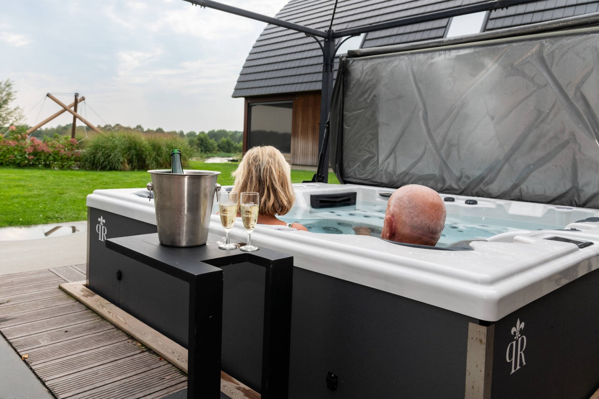 De indeling is perfect afgestemd op een romantisch uitje, met een lichte, luchtige woonkamer met smart-tv en een open designkeuken uitgerust met een Quooker, stoomoven en inductiekookplaat. De slaapruimte op de mezzanine, met een open indeling, biedt een dromerig panoramisch uitzicht op het natuurlandschap, perfect om in alle rust wakker te worden. Gasten kunnen genieten van rustige ochtenden op het overdekte terras of zich laten verwennen met persoonlijke services zoals bezorgde regionale diners, uitgebreide ontbijten of holistische massages, waardoor elk aspect van uw verblijf moeiteloos en ontspannend is.