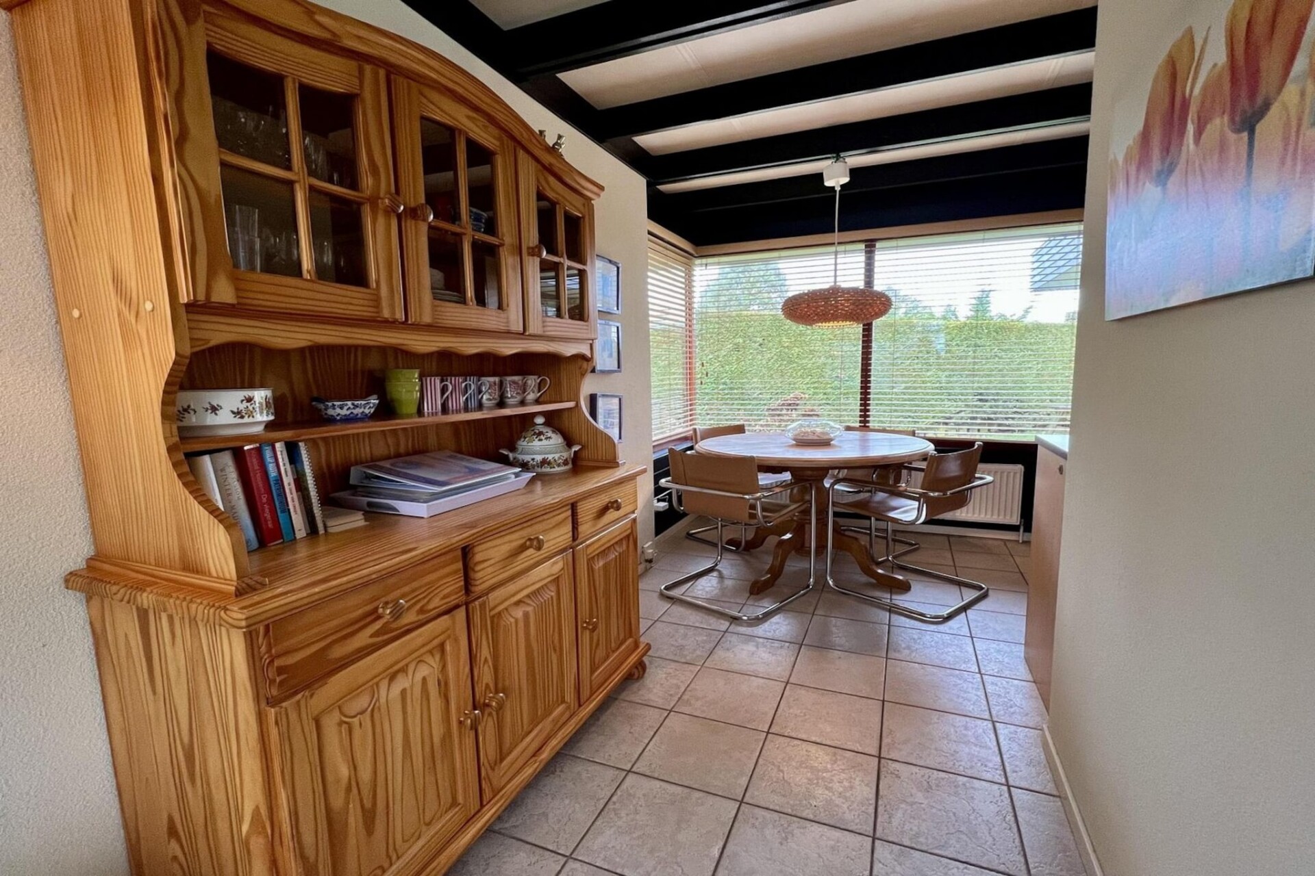 Een open keuken met eethoek, vaatwasser, koelkast met vriesvak, fornuis met afzuigkap en 4-pits inductiekookplaat, elektrische oven en koffiezetapparaat zijn aanwezig. Sanitair Badkamer met douchecabine, wastafel en spiegelkast met stopcontact voor scheerapparaat. Het toilet is apart. Slaapkamers Er zijn 3 slaapkamers. Een ouderslaapkamer met 2 eenpersoonsbedden, kledingkast. Een slaapkamer met 2 eenpersoonsbedden en 1 kleine slaapkamer met een eenpersoonsbed. Tuin Omheinde tuin met terras op het zuid/oosten, tuinmeubilair inclusief een ligstoel is aanwezig. Afsluitbare berging aanwezig. Overige faciliteiten De gehele bungalow is betegeld.
