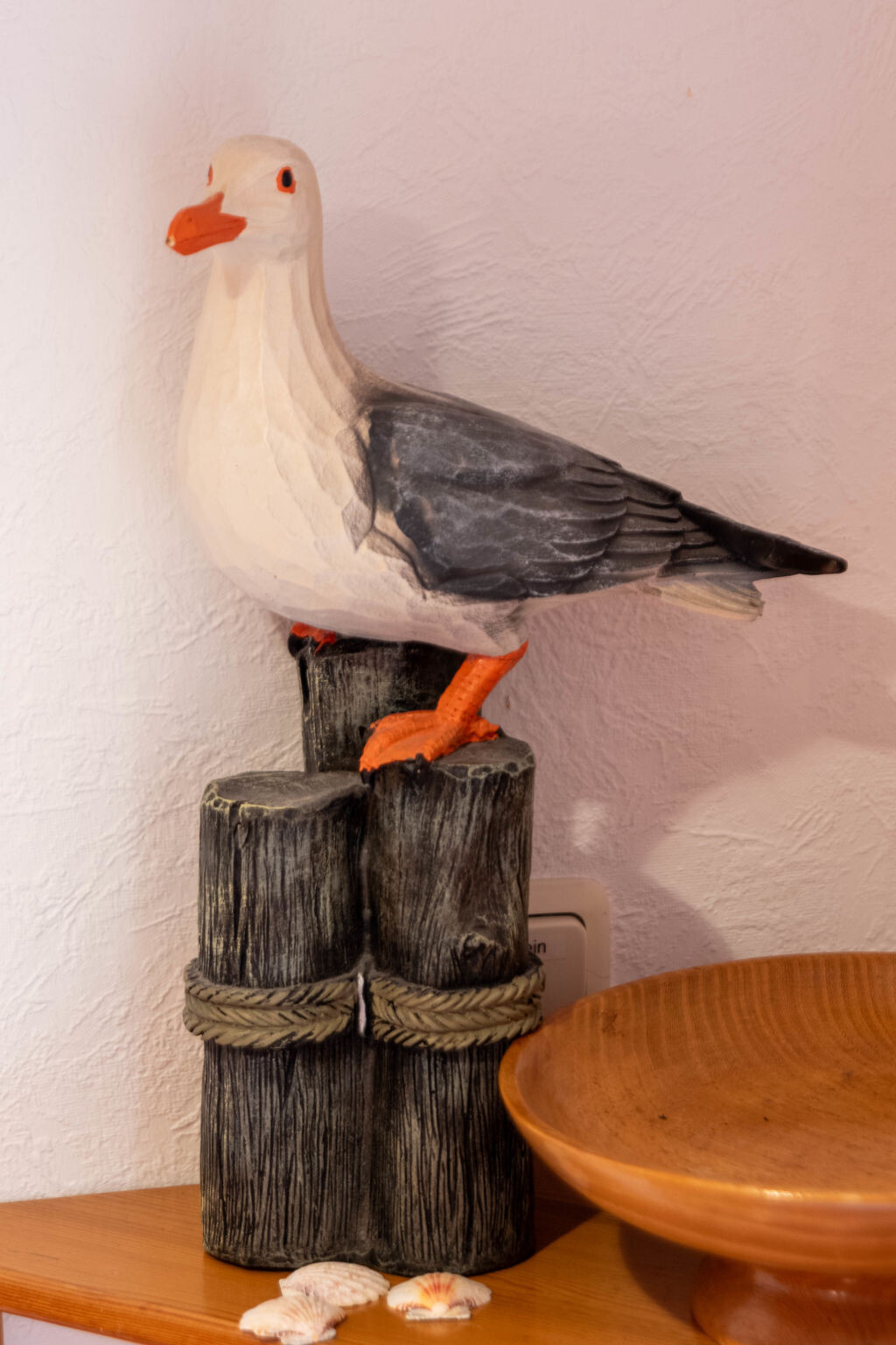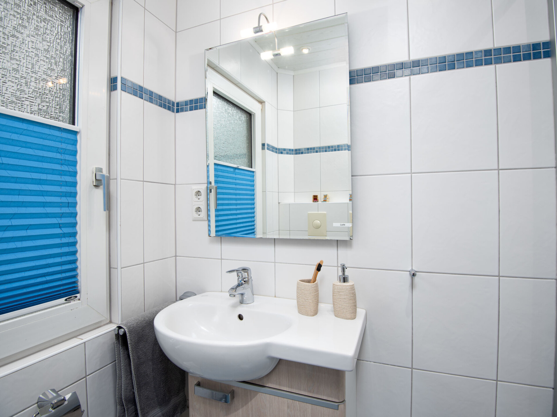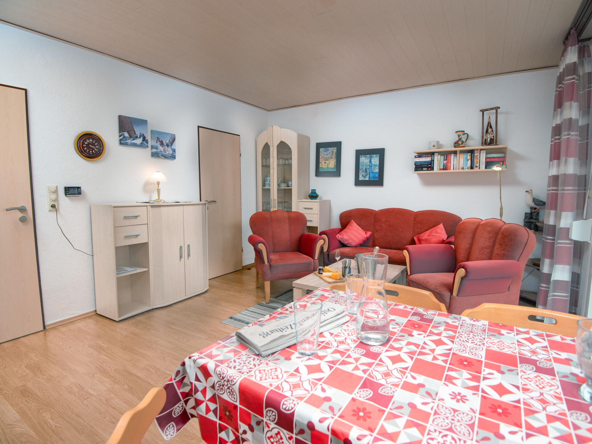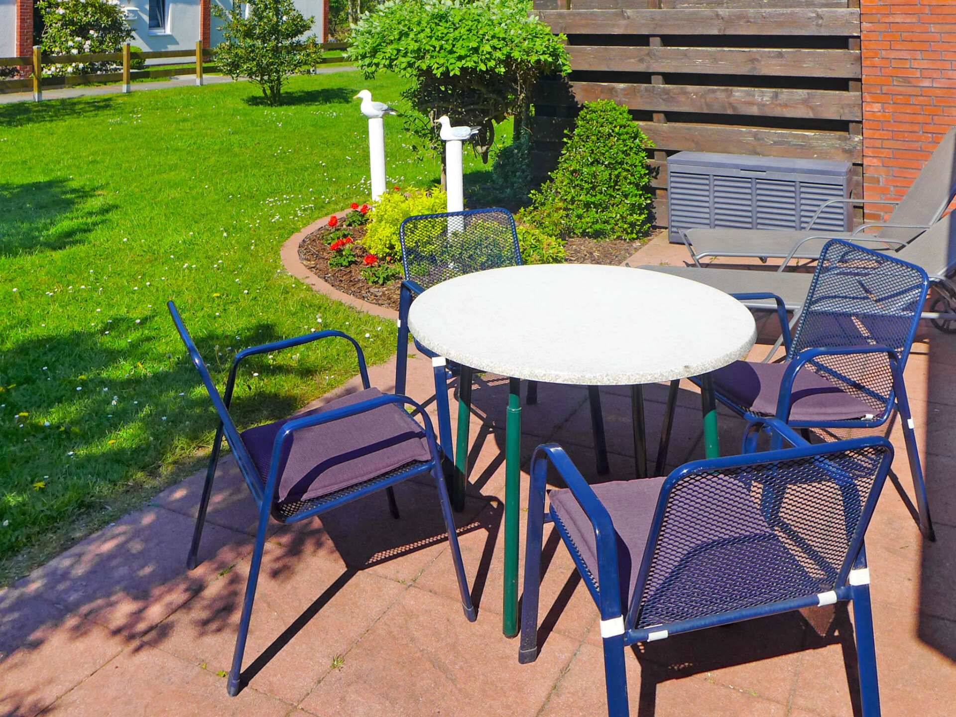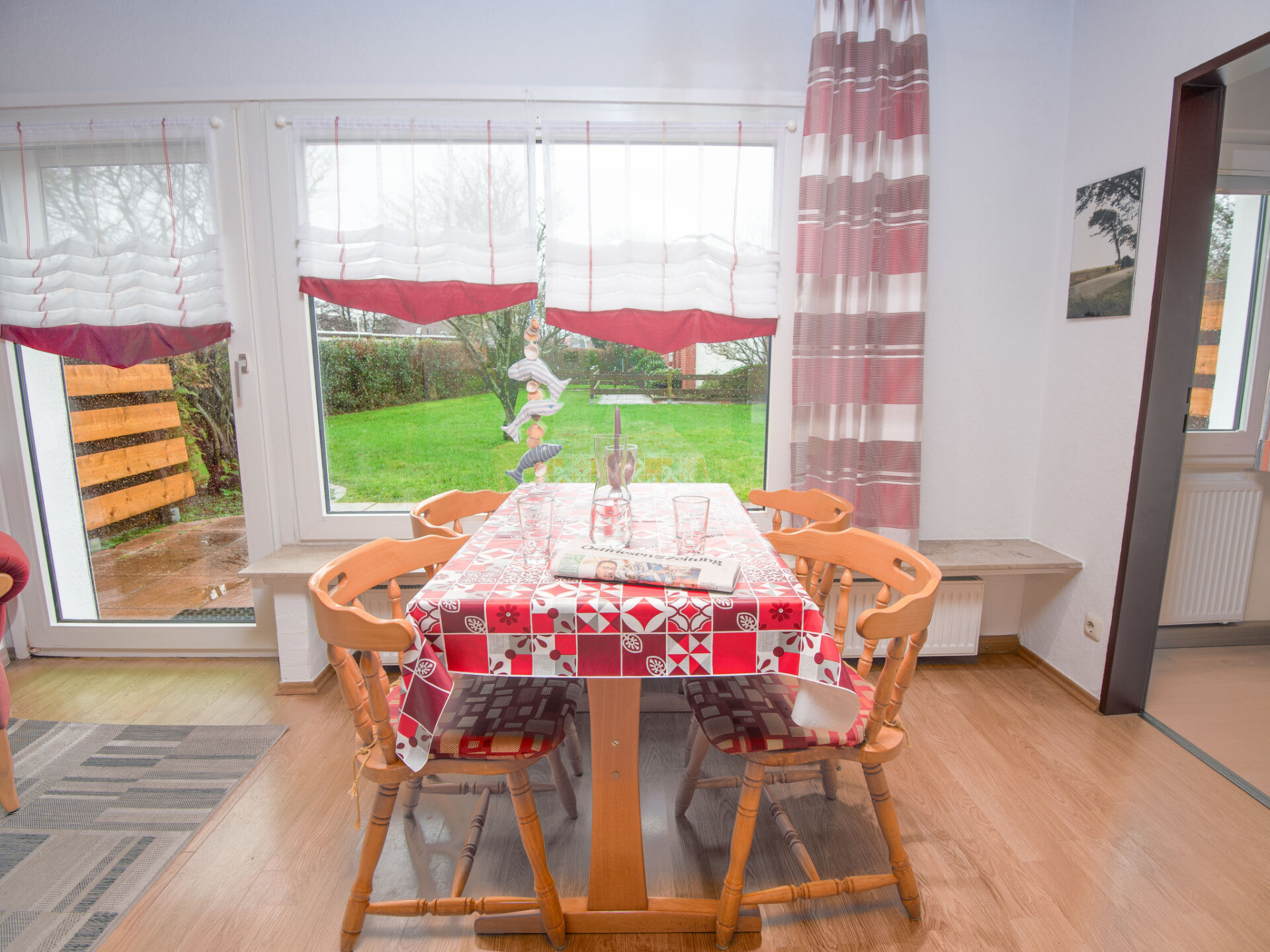 Rijtjeshuis. In de plaats, centrale ligging, 450 m van zee, 450 m van het strand, aan een doodlopende weg. Voor medegebruik: tuin met gazon. In het huis: bergruimte voor fietsen, centrale verwarming. Parkeerplaats bij het huis. Supermarkt 2.9 km, restaurant 130 m, bakkerij 100 m, café 100 m, bushalte 250 m, treinstation "Norddeich" 1.5 km, veerboot 1.5 km, zandstrand 500 m, openluchtzwembad 14 km, overdekt zwembad 450 m. Golfterrein (18 holes) 8 km, surfschool 550 m, tennis 2 km, midgetgolf 450 m.