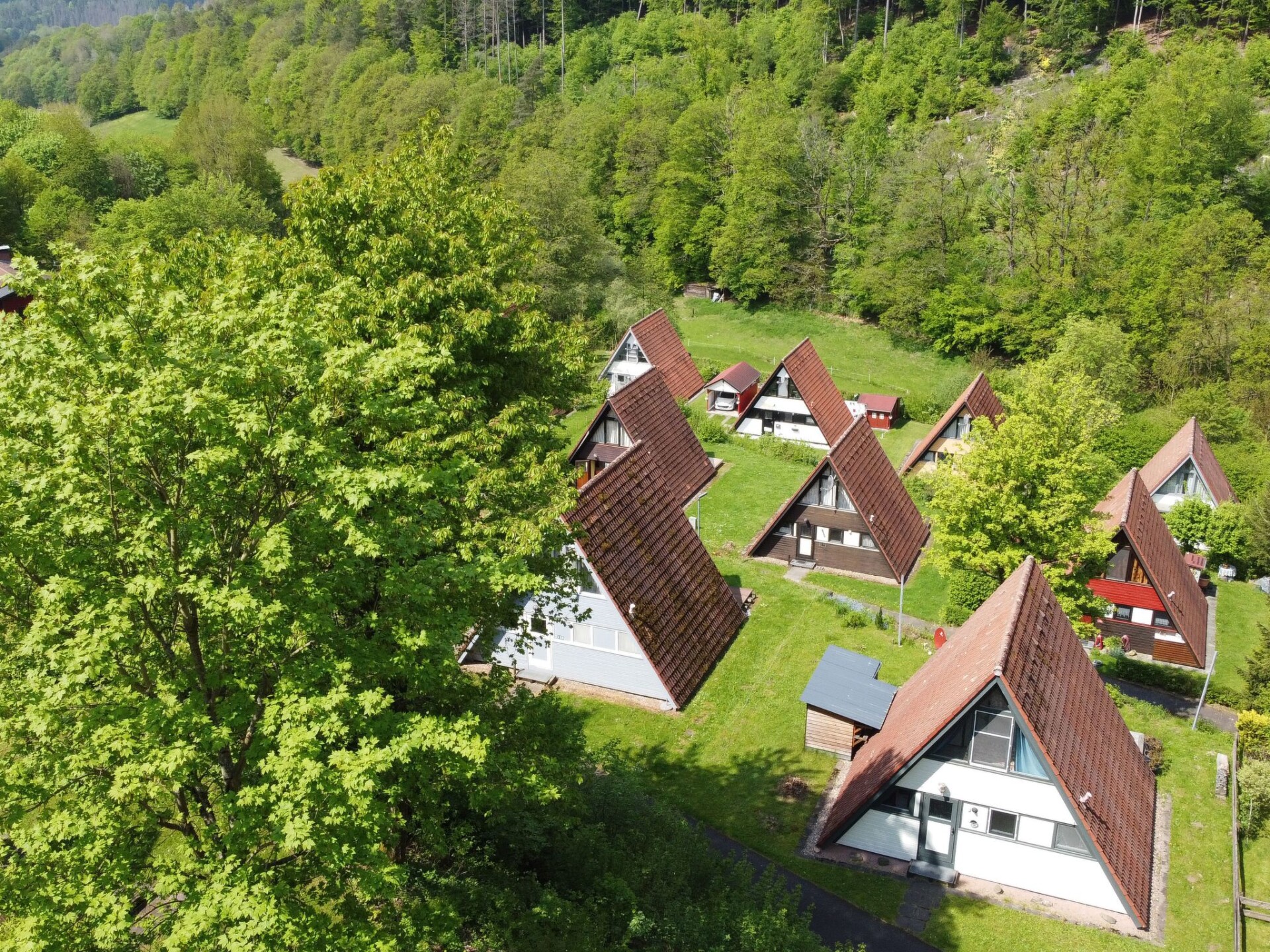 The Ronshausen holiday park, located in the heart of Germany... ...a leisure and hiking paradise for young and old in the Waldhessen holiday region. On the slope of the Steinkopf (417 m above sea level) in the resort of Machtlos lies the Ronshausen holiday park with its individually furnished holiday homes. An oasis of peace and relaxation in the state-recognised climatic health resort of Ronshausen. Take a deep breath - it's good for body and soul alike and makes you fit for everyday life again. Holiday fun for children and parents, active people and those looking to relax Our spacious, sunny complex with detached holiday homes in the middle of nature offers a wide range of games and sports as well as many leisure activities for families with children. Entertainment programmes such as table tennis, tennis, boccia, table football, football pitch, bike tours, Nordic walking, hikes - there's something to suit everyone's taste. Time for active people! Time for children! Time for two! Holidays with your dog, cat, mouse... with us a holiday with your "darling" is no problem.There is no wifi in the individual houses. Mobile phone network D1.We offer W-Lan free of charge in the administration, the password is available at the reception.Pictures are sample pictures Houses are individually furnished.Short descriptionOther : Non smoking houseShort description 1Number of kitchens : 1Other rooms : 2 bedrooms, bathroom, hallway, storeroomSports facilities in the neighbourhood : fishing, basketball, football pitch, canoeing, mountain biking, cycling, tennisSurroundings 1Excursions: festival town of Bad Hersfeld, Rotenburg an der Fulda, Eisenach, Melsungen, KasselOther sports and leisure activities: raft trips on the Fulda, indoor play parkGarden and outdoor facilitiesLeisure facilities at the property :Indoor pool for shared use for a fee of € 4.00 per person. sauna,Garden equipment : Garden furniture availableServices availableServices (may be subject to a charge) : Bread roll service