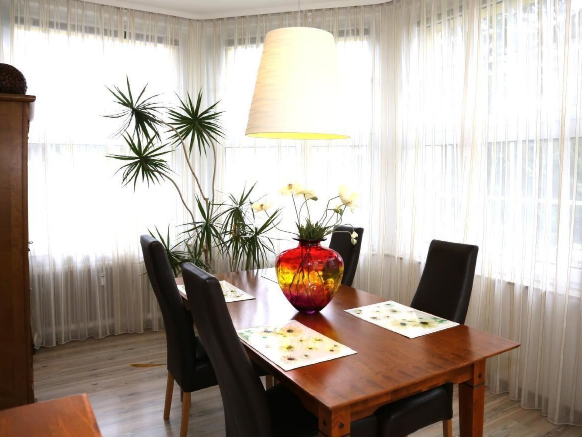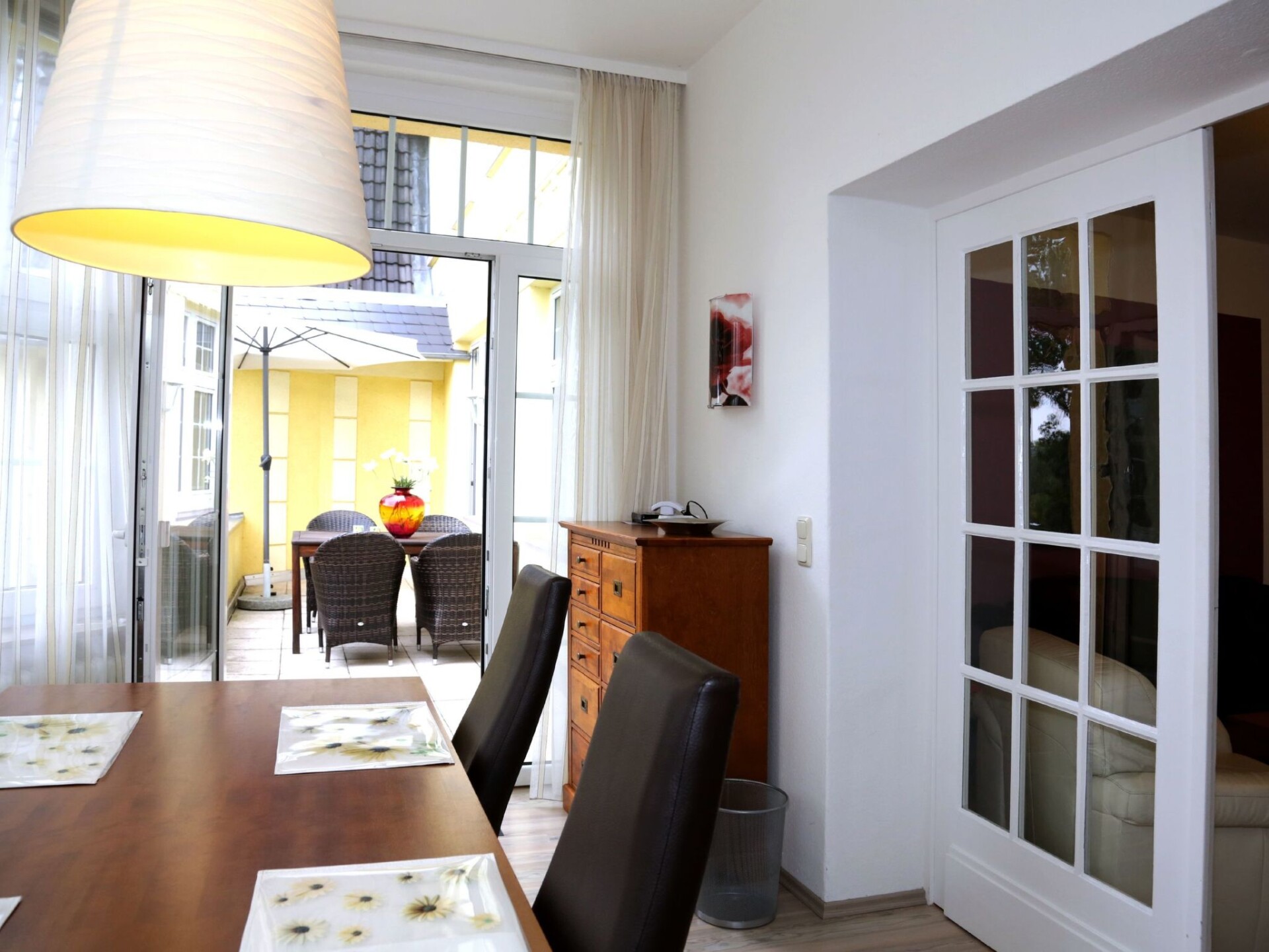 You'll never want to go on holiday anywhere else again. Just outside the renowned spa town of Bad Pyrmont lies the modern renovated holiday home Villa Rosenhof. The holiday flats are classified with 5 stars and are located 3 minutes by car from the centre. In the Villa Rosenhof we offer you very nice, spacious flats, from 80 m² to 90 m², with one or two bedrooms, large kitchen, dishwasher, living room, shower room / WC and WLAN. You can relax in the sun or in the shade of the lime trees on the outdoor terraces and balconies. Many excursion possibilities in the neighbourhood: Hufeland Therme - the spa and wellness bath with tradition, hiking and Nordic walking in the most beautiful surroundings, a charming landscape for cyclists, Bad Pyrmont, a golfer's paradise. The view is unobstructed with a view of the beautiful Weserbergland. Breakfast can be booked on request. Please let us know when you book! We provide a car park for each flat, garage for an extra charge. Washing machine and tumble dryer are available in a separate room for a fee. Bicycles for adults and children can be hired from the landlord. Public charging stations for electric cars are located about 500 metres away at the Huddelbusch petrol station. The satisfaction of our guests is our greatest concern.