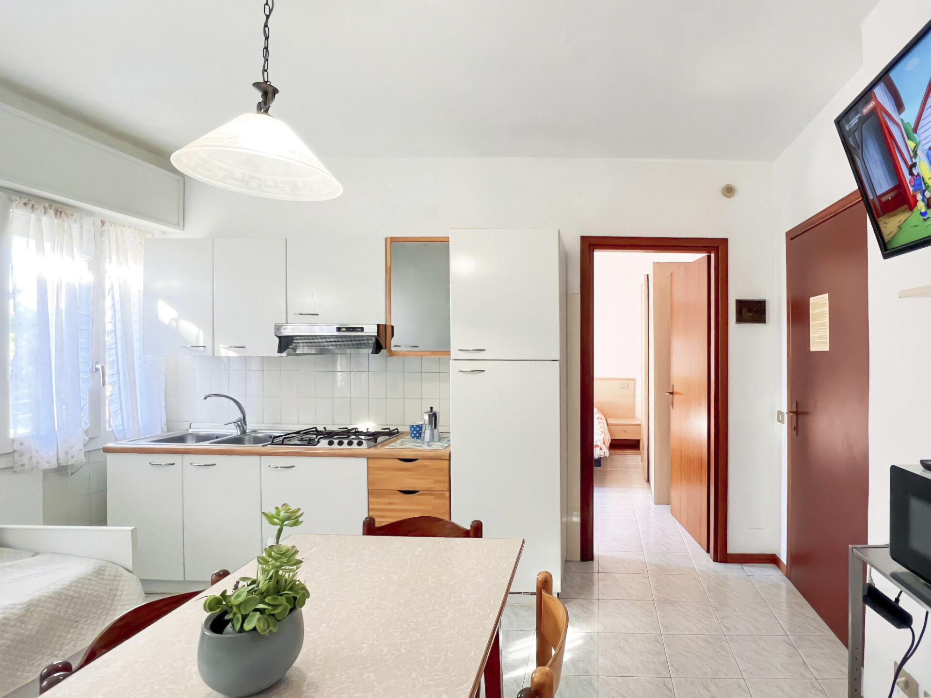 Discover the charm of Bibione Spiaggia by staying in this building, located in the heart of the area, less than 350 metres from the sea . Immersed in the pulsating centre of Bibione, you will find yourself within walking distance of restaurants and shops, making this location a'ottima scelta per chi desidera combinare la tranquillità della spiaggia con l'energy of the city centre.The other, more spacious'appartamento, situato al primo o al secondo piano con una gradevole esposizione a ovest, offre interni attentamente arredati per garantire un soggiorno confortevole. Gli ospiti possono godere di un soggiorno dotato di un pratico angolo cottura e un divano letto, ideale per rilassarsi dopo una giornata sotto il sole. La sistemazione include inoltre due camere da letto accoglienti, una con letto matrimoniale e l'with three singles, providing enough space for the whole family or a group of friends.All'esterno, la palazzina si distingue per i suoi 8 appartamenti, ciascuno con accesso a posti auto sotto un pergolato. La terrazza dell'flat, although long and narrow, is the ideal place to enjoy moments of pure relaxation and tranquillity, away from the hustle and bustle of everyday life.The privileged location of this accommodation not only allows one to easily reach the beach, but also to immerse oneself in local entertainment, with the Luna Park and the bazaar of the weekly market only 300 metres away. In addition, the proximity to the bus station offers convenient connections to further explore this lively tourist area. IT027034B4BZ8QGO9D