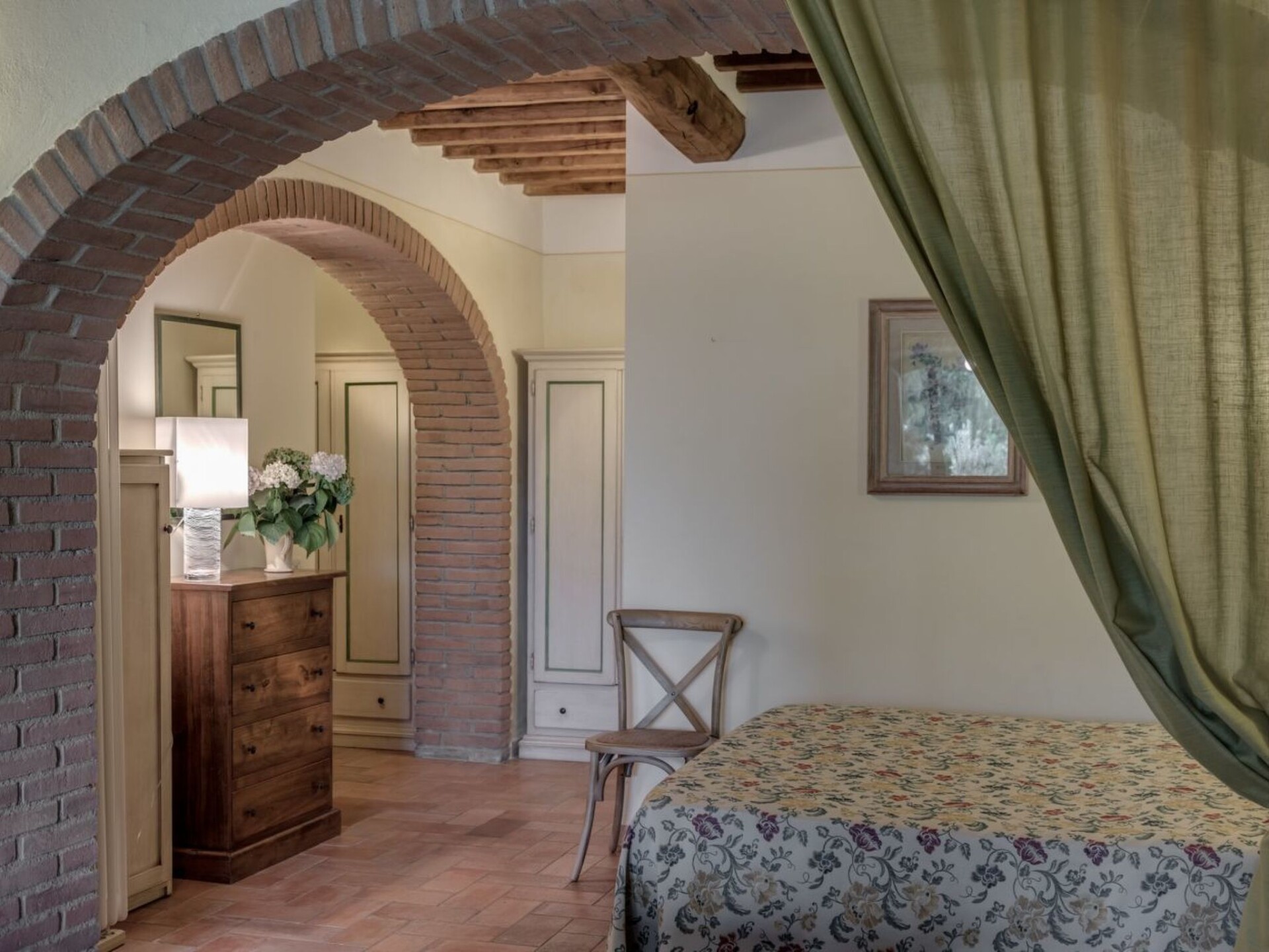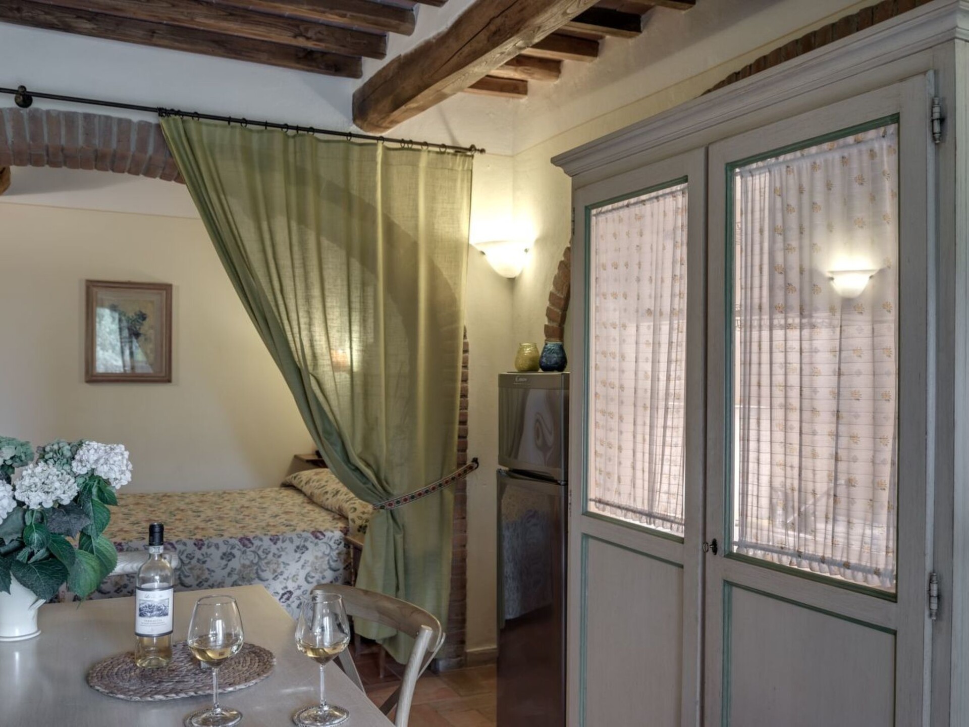 Maximaal 2 huisdieren/honden toegestaan. Discover the charm of an authentic stay in Tuscany with this charming flat in Casole d'Elsa, immersed in the serenity of the countryside yet still close to essential services. Ideal for a couple or a small family seeking relaxation and intimacy, this ground-floor flat offers comfort and tranquillity, ensuring an unforgettable holiday experience in one of Italy's most picturesque settings.Inside, the flat is equipped with an efficient air conditioning system in all rooms, ensuring a comfortable stay during hot summer days. Convenience is also ensured by the presence of a washing machine and dryer for exclusive use, which are particularly appreciated for longer stays. The flat has all the modern necessities including a gas cooker, electric coffee machine and water boiler, perfect for preparing small meals or relaxing with a hot drink.The exterior of the flat, accessible from the private patio, includes an inviting table and chairs for enjoying al fresco meals or simply relaxing under the Tuscan sky. Guests also have free access to the shared swimming pool, ideal for cooling off on hot days. Adding further convenience, an electric car charging station is available for those visitors who choose an eco-friendly travel option.The flat is conveniently located to easily explore the beauty and cultural offerings of Tuscany. With a grocery shop located only 3000 m away, guests can easily source fresh local produce for tasty home preparations. The surrounding area is full of opportunities for hiking, wine tasting and visits to picturesque historic villages, offering a wide range of activities to enrich your holiday experience.With its cosy, intimate and fully equipped atmosphere, this flat is the ideal base for exploring the wonders of Tuscany. Whether you wish to relax in the quiet of your private patio, enjoy a refreshing dip in the pool or discover the hidden treasures of the region, here you will find everything you need to create memories that will last a lifetime. IT052004B4TRMY4GAZ