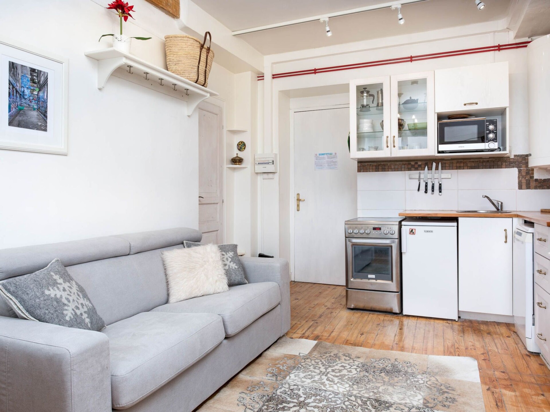 Mont Blanc 212 Apartment benefits from one of the best locations of our apartments in Chamonix. The Residence Mont Blanc, situated in the same building as the Alpine Museum, is in the centre of Chamonix's high street, with shops, bars and restaurants on your doorstep. The main train station, Chamonix SNCF, is just 200m away at the end of the street while the main Place du Mont Blanc bus stop is 300m around the corner to give you access throughout the valley.Mont Blanc 212 Apartment is a stylish 1 bedroom apartment which makes it the perfect apartment in Chamonix town centre for a couple which wishes to have everything on their doorstep. The Chamonix apartment is well-equipped for 2 people, with a dishwasher, oven and microwave in the kitchen, as well as a dining table and four chairs. The living area also has a TV / DVD player and wifi internet access. Mont Blanc 212 Apartment benefits from access to the residence's outdoor car park and ski locker downstairs, as well as bike storage for the summer. From the top floor of this historic Chamonix building, you have mountain views to enjoy which extend to the top of the valley. Key Features Sleeps 2 people 1 bedroom with double bed Bathroom with shower and WC Wif internet access TV & DVD player Well-equipped kitchen with oven, microwave and dishwasher Central heating Access to outdoor parking Ski locker & communal bike storage Mountain views