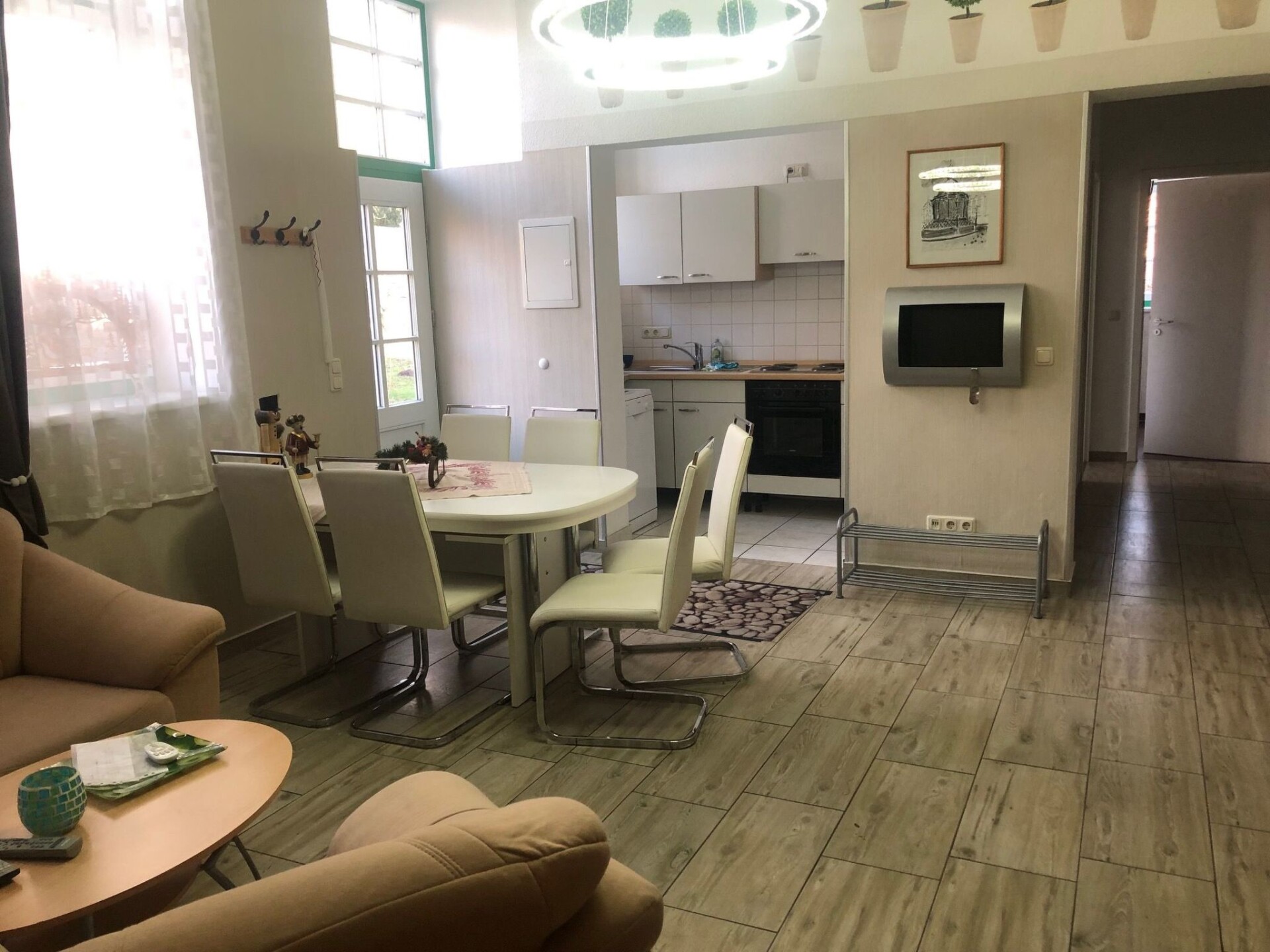 Maximaal 2 huisdieren/honden toegestaan. The holiday flat is located on the gable end of a former horse stable, which was converted into a residential building in 2005. The house is detached in a quiet location, not close to the road in Dreveskirchen. Dreveskirchen is located on the Salzhaff near Wismar and the island of Poel. There are cycle paths and many sandy paths in the surrounding area, which offer you many opportunities for walks and leisure activities.The landlord lives in the house on the other side.The holiday flat is particularly suitable for families with children and pets.The flat is on the ground floor and is approx. 67 m² in size. It consists of the following rooms: large living room with flatscreen TV, dining area and sofa bed, a bedroom with 2 single beds, a bedroom with double bed (1.60m x 2.00m), a fully equipped kitchen with cooker, microwave, dishwasher, coffee machine and a bathroom with shower and washing machine. Due to the ground floor location and the construction, the flat is also handicapped accessible.The flat is pleasantly cool in summer and offers a comfortable indoor climate even on hot days. It is heated by underfloor heating and can be used all year round.The terrace with barbecue and small garden has a hedge for privacy and plenty of distance from the neighbours. There is a parking space directly in front of the holiday flat.You can reach the holiday flat via a paved (not asphalted) path. Horses and ponies are kept on the farm.Dreveskirchen is approx. 10 km from the Hanseatic city of Wismar (World Heritage City) and the island of Poel (Baltic Sea resort). Activities such as deep-sea fishing, sailing or harbour tours can be arranged. For guests tired of the beach, Wismar offers a leisure pool, a zoo, a local history museum and guided tours of the old town. There are many seasonal activities on offer in the region, which can be enquired about at the tourist information centre in Wismar. Wide sandy paths also invite you to go hiking and cycling. Dreveskirchen is part of a network of cycle paths. We have many beautiful sandy paths that are particularly attractive for walks and hikes - even with dogs. The Salzhaff is a very popular spot for surfers and offers many opportunities. In the village (500 m) there is a shop, a hairdresser and a café.