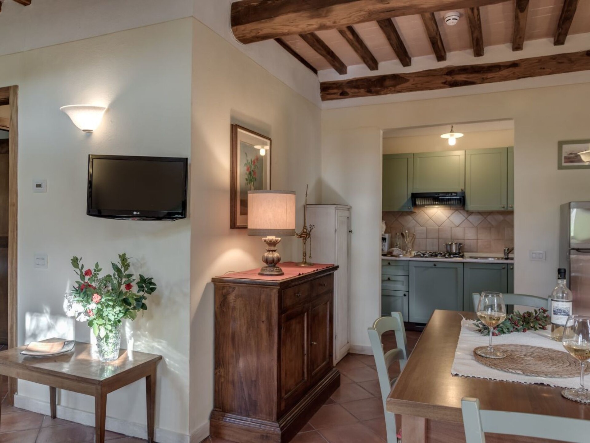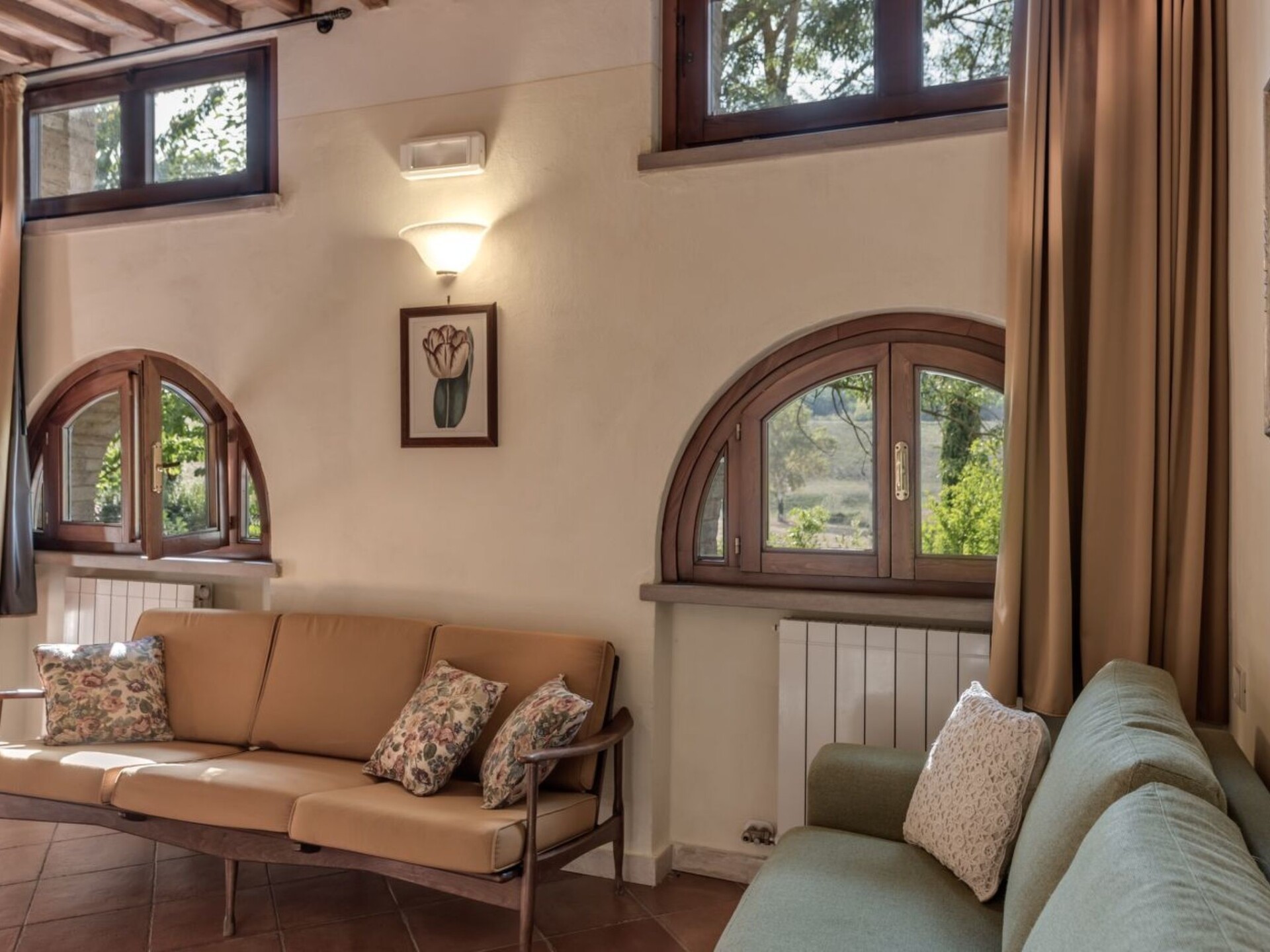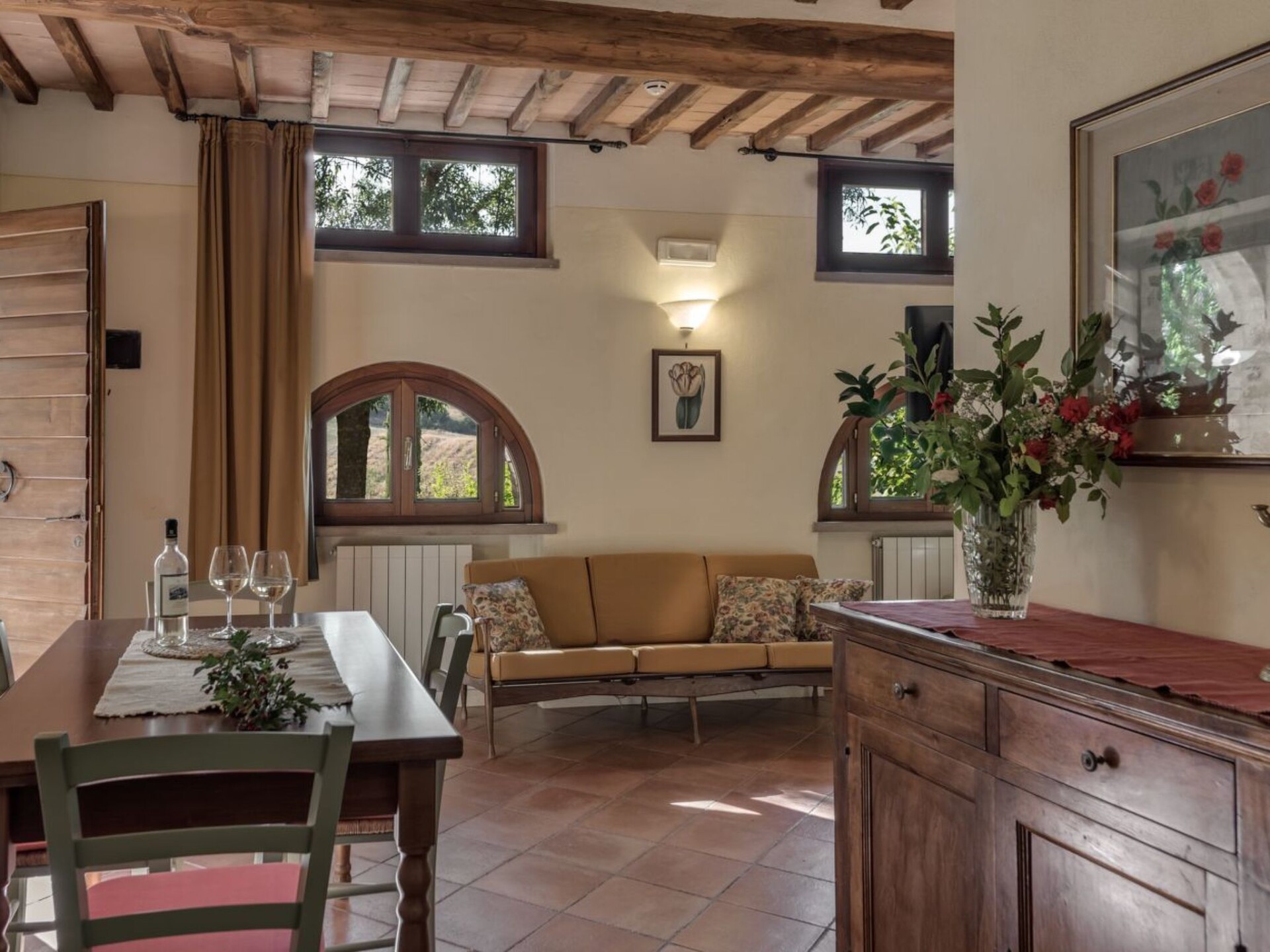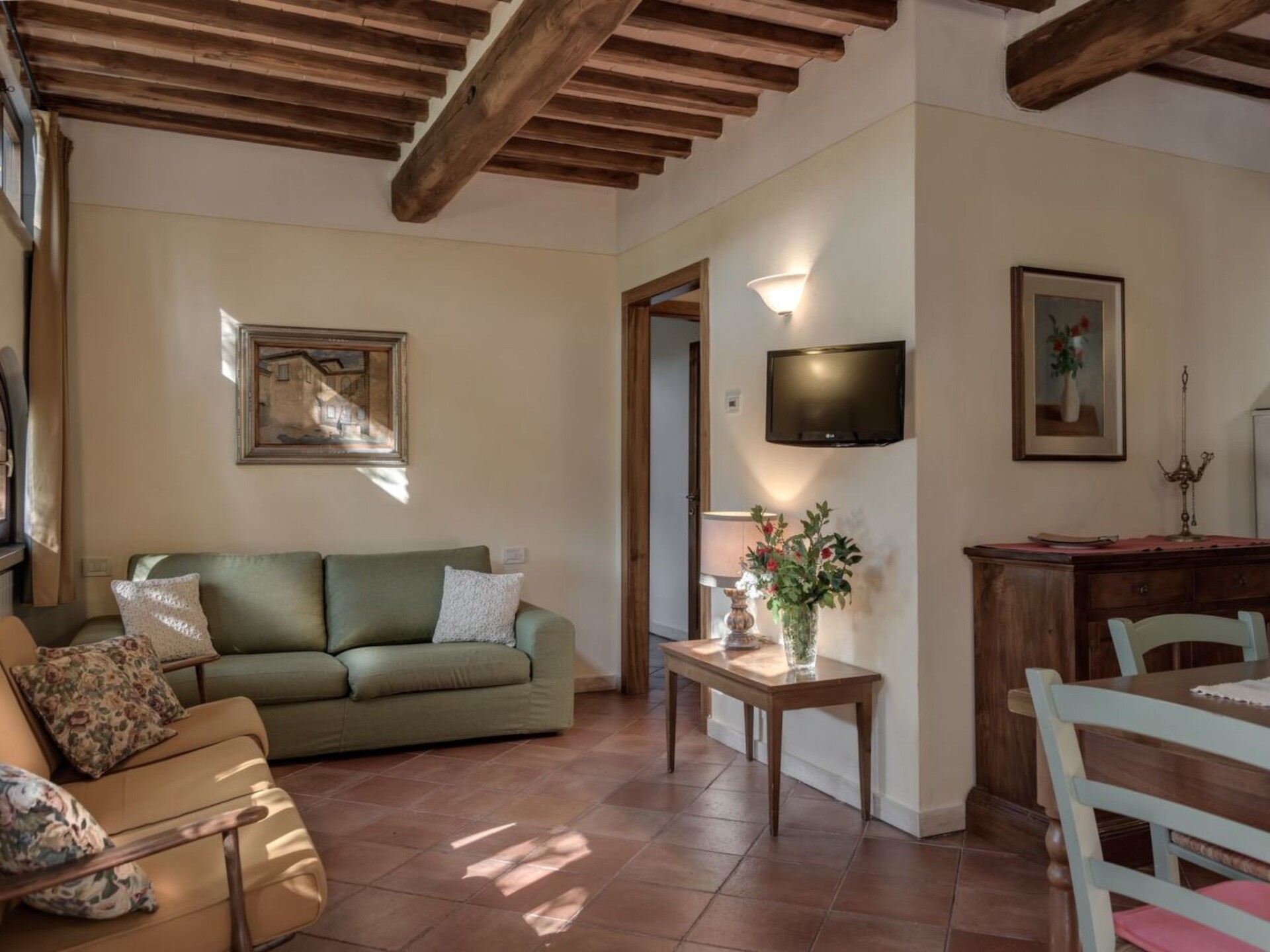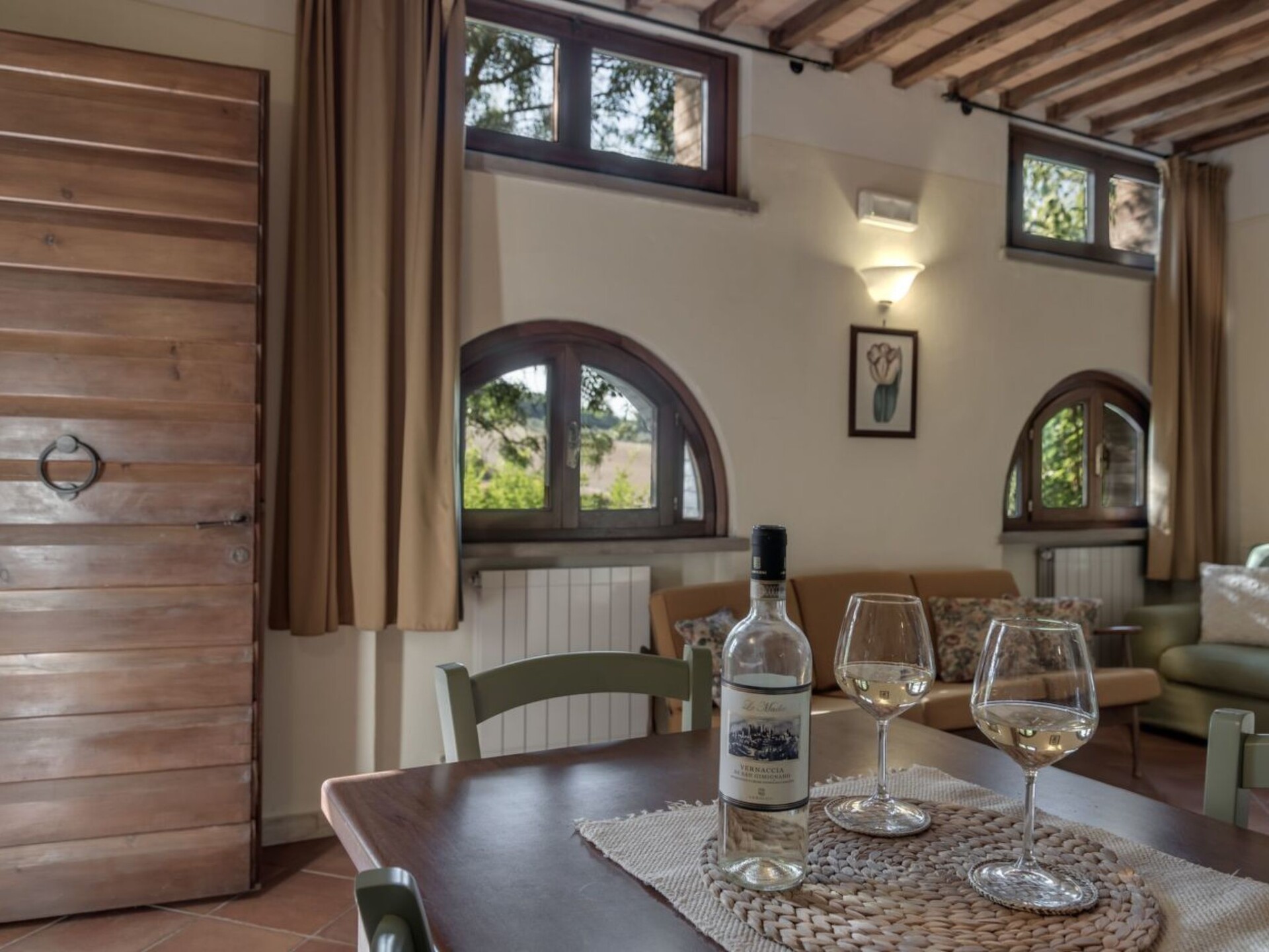 Maximaal 2 huisdieren/honden toegestaan. Discover the charm and comfort of our 'Lucca' flat located in Casole d'Elsa, in the heart of Tuscany, ideal for families or groups of up to 5 people. This cosy accommodation on the ground floor, with direct access from a charming garden via three stone steps, offers you a unique experience, immersed in the tranquillity and greenery of the Tuscan countryside. Perfect for those seeking an escape from the daily routine, without giving up the comforts of home.The interior is equipped with every comfort to ensure a pleasant and relaxing stay. In addition to the spacious living area with a well-equipped kitchen and double sofa bed, the flat has two comfortable bedrooms that guarantee the ideal rest after a day of exploring. With two bathrooms equipped with showers, the needs of all guests are easily met, ensuring privacy and comfort.Outside, the private furnished garden becomes the perfect place to enjoy moments of relaxation or meals al fresco, surrounded by lush nature. The communal swimming pool is ideal for cooling off on hot days, providing fun for young and old alike. In addition, the flat is equipped to accommodate up to two pets, allowing you to bring furry family members with you.The flat's location is strategic: situated only 3000 metres from the nearest town centre and grocery shops, it allows you to easily explore the surrounding area, rich in history, culture and natural beauty. Whether you want to stroll through the narrow streets of ancient villages or explore the Tuscan countryside, everything is at your fingertips. For eco-conscious guests, a charging station for electric cars is also available, making it easy to travel sustainably.The 'Lucca' flat is the ideal choice for those seeking a relaxing holiday, in contact with nature but without sacrificing comfort. Whether for a short break or a longer stay, here you will find everything you need to make your stay unforgettable. Choose to experience the magic of Tuscany in this enchanting flat, where every detail is designed for your well-being. IT052004B4TRMY4GAZ